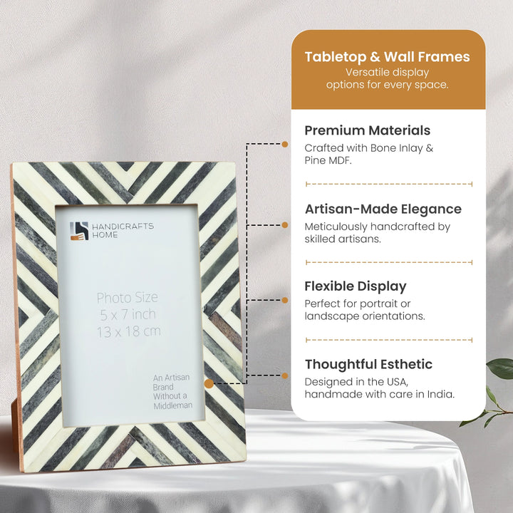 Picture Frame Chevron Collection Bone Inlay Grey 4x6 & 5x7