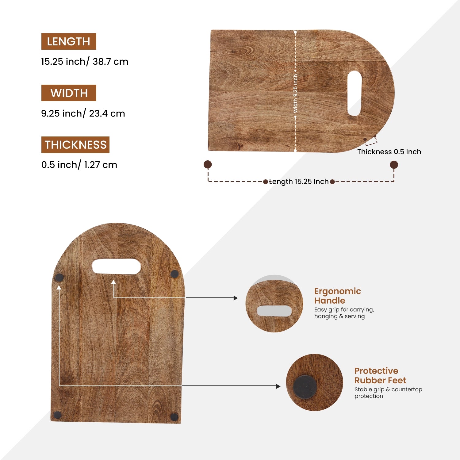 Chopping Board Semi-Circle Top - Wood, in 15.25x9.25"