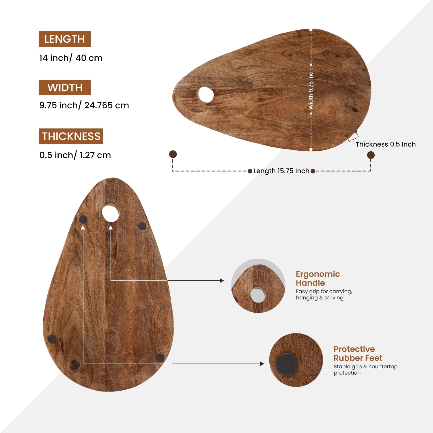 Chopping Board Teardrop Shape with Hanging Hole –Wood, in 15.75x9.75"