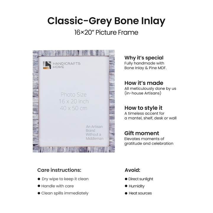 Picture Frames Classic Pattern Bone Inlay Collection in 27 Sizes, Grey