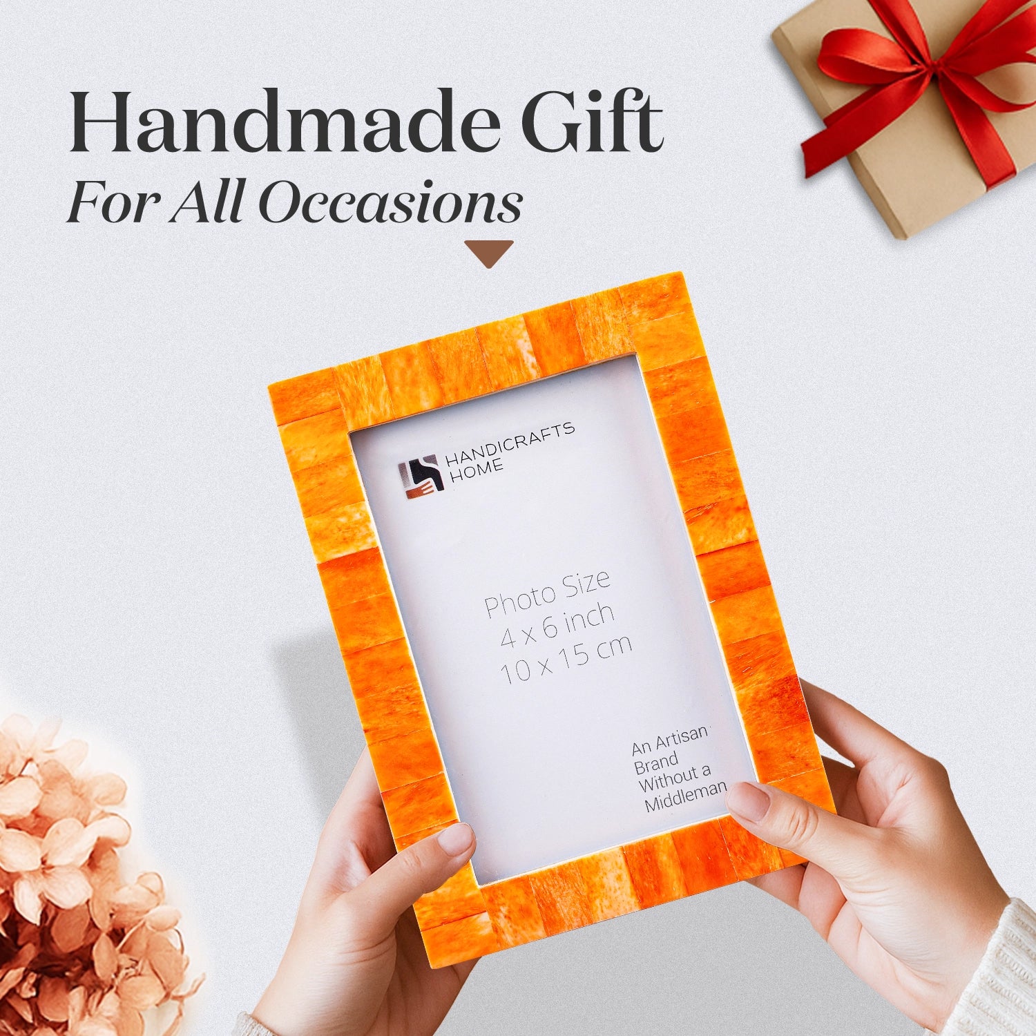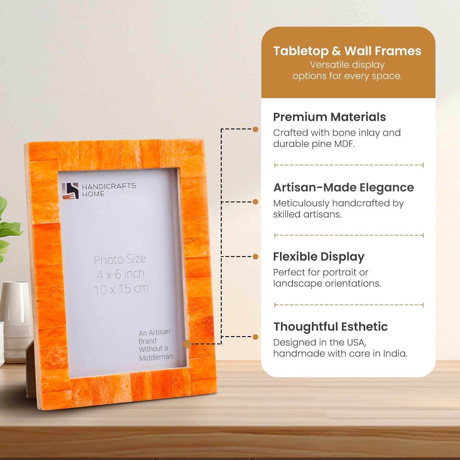 Picture Frame Classic Pattern Collection Bone Inlay Orange – 3 Sizes
