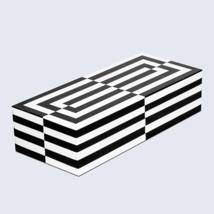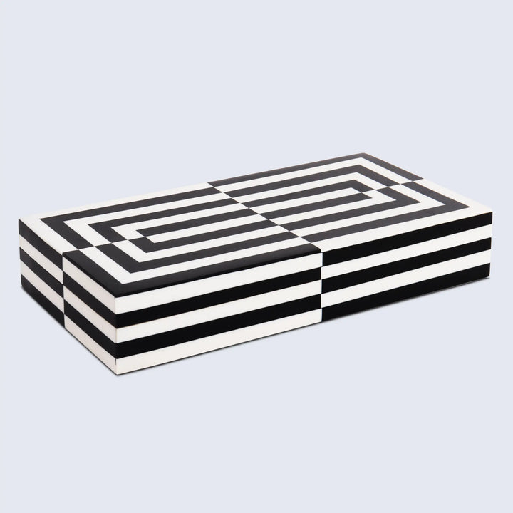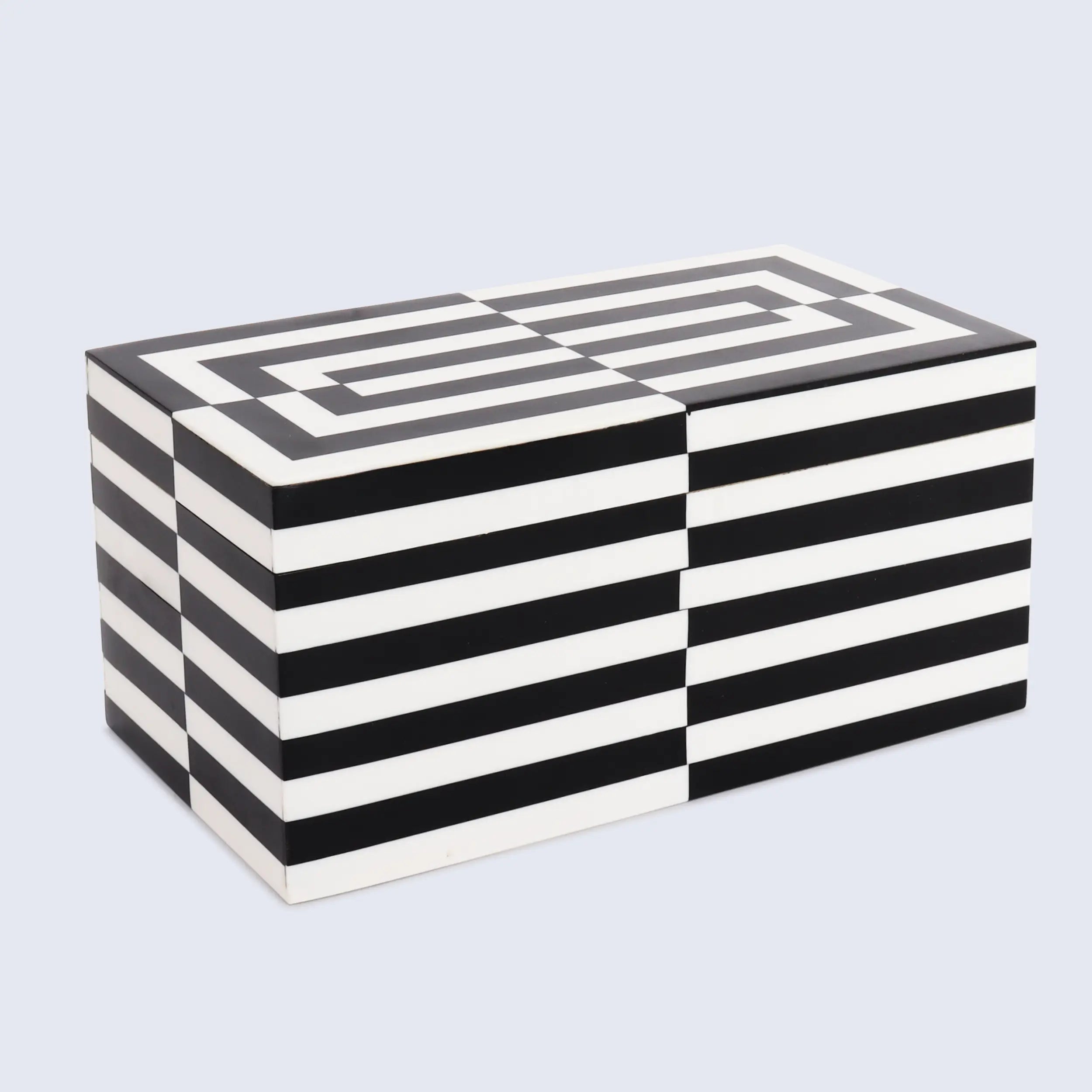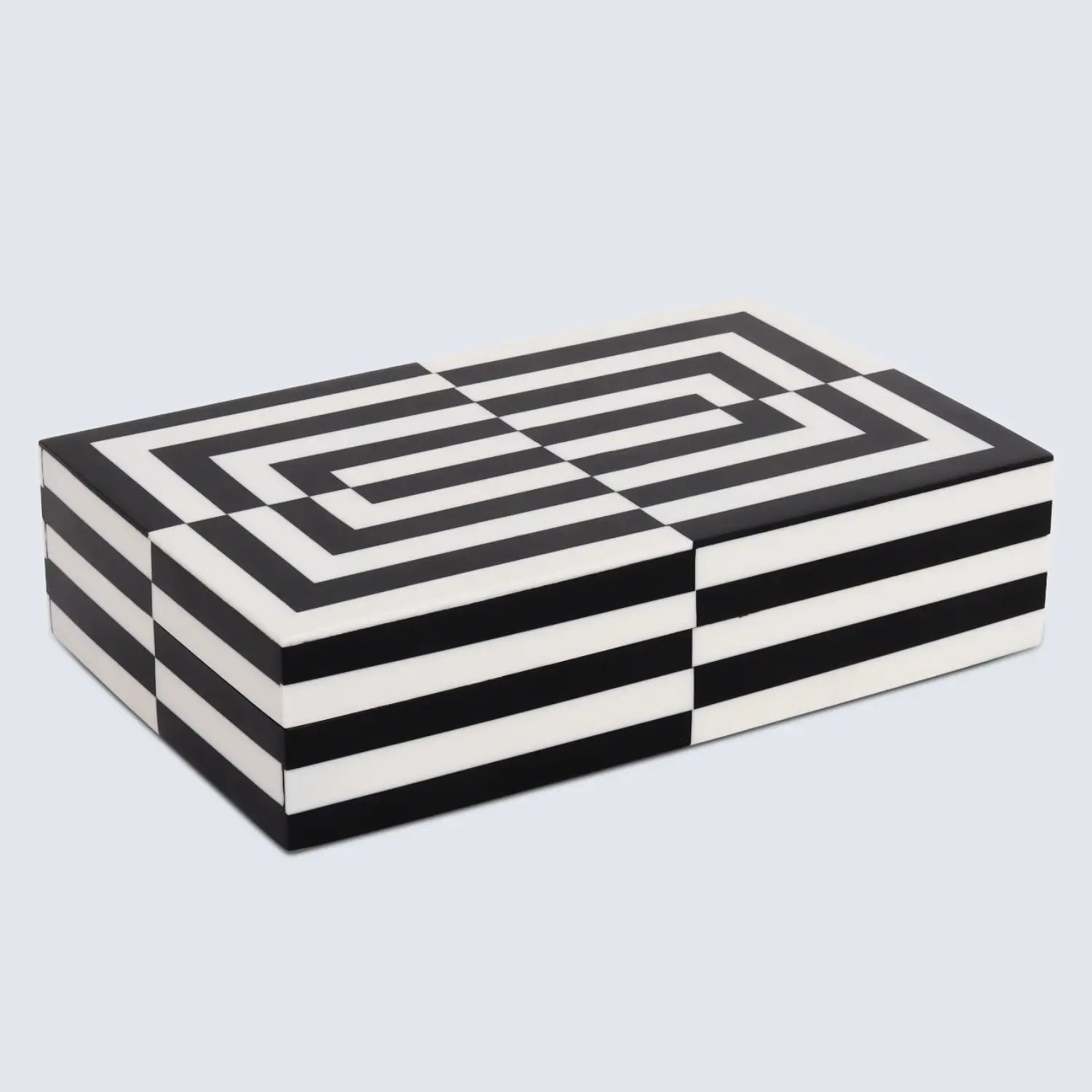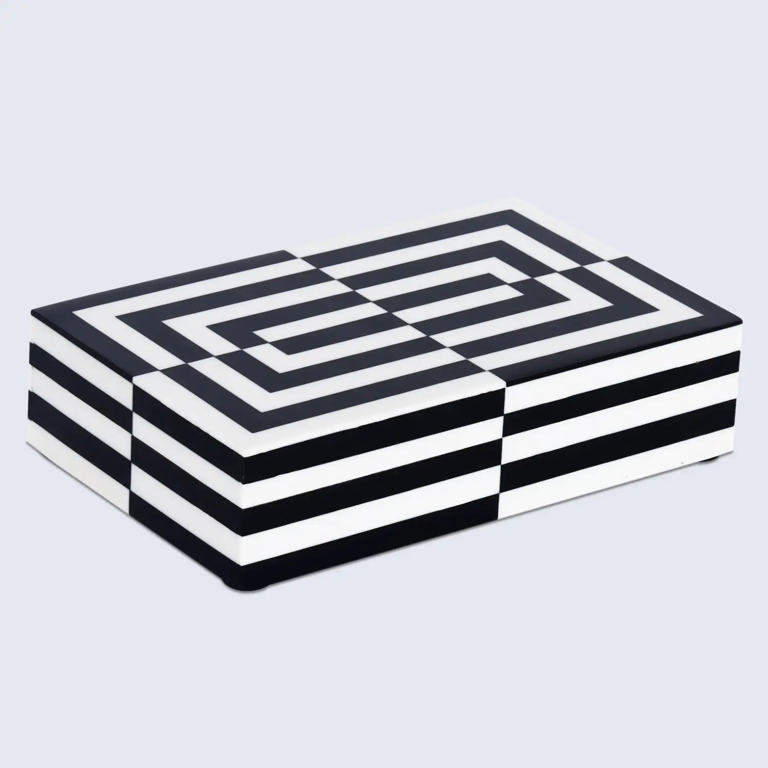 Decorative Storage Box Puzzle Slide Resin Inlay in 7 Sizes, Black & White
