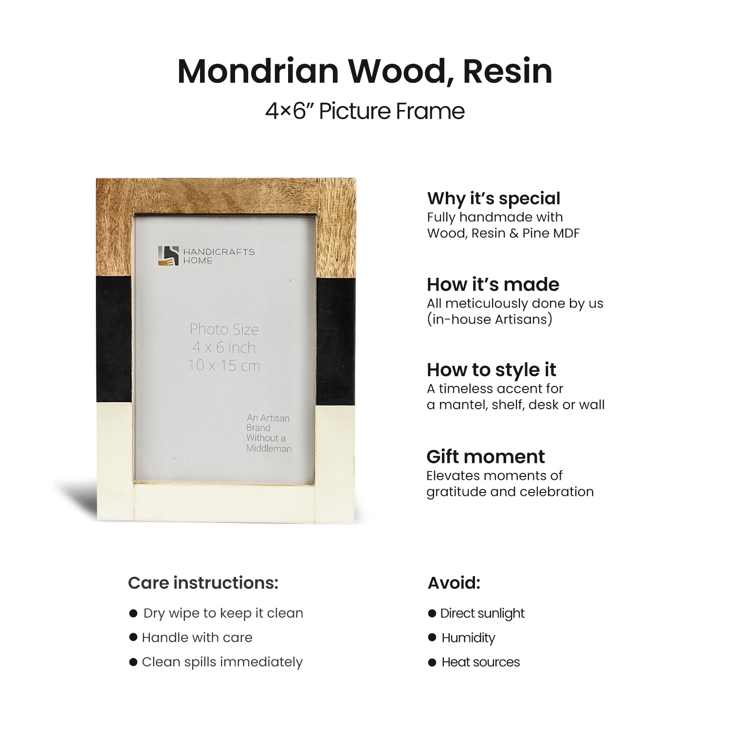 Picture Frames Mondrian Maple Pattern Resin Inlay Collection in 3 Sizes
