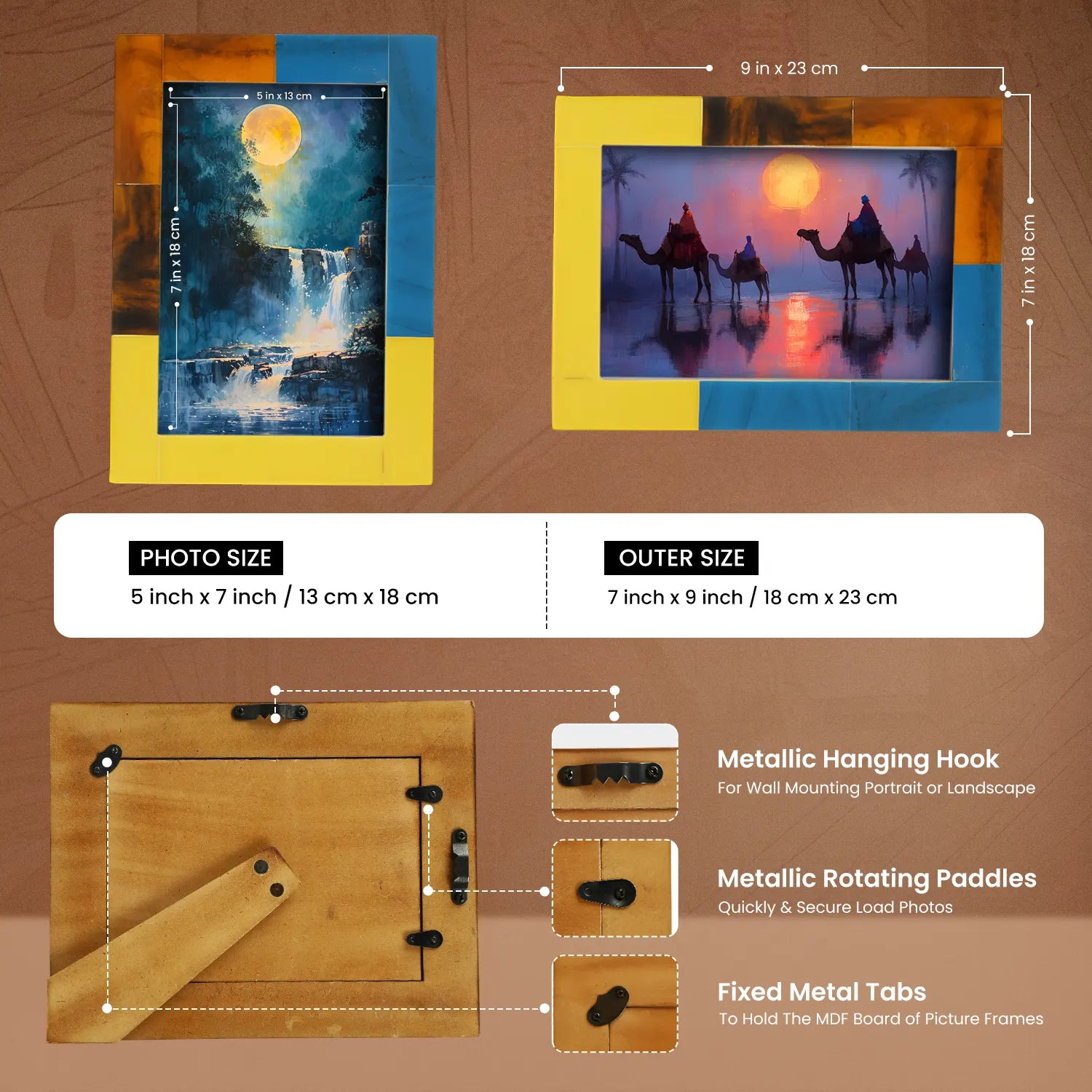 Picture Frame Mondrian Walnut Collection Resin Inlay Multi – 3 sizes (Pack of 2)
