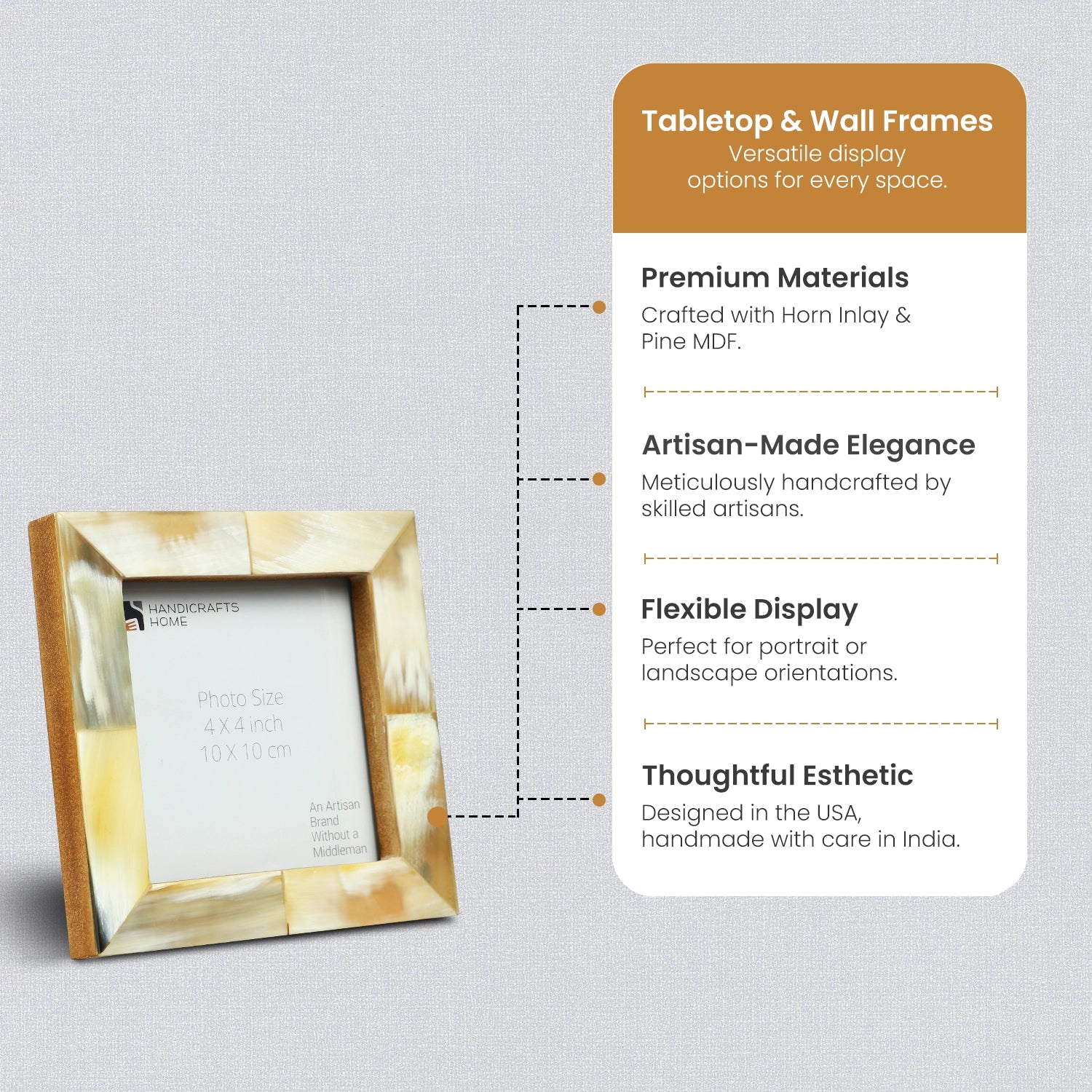 Picture Frames Essence Pattern Horn Inlay Collection in 4 Sizes, White
