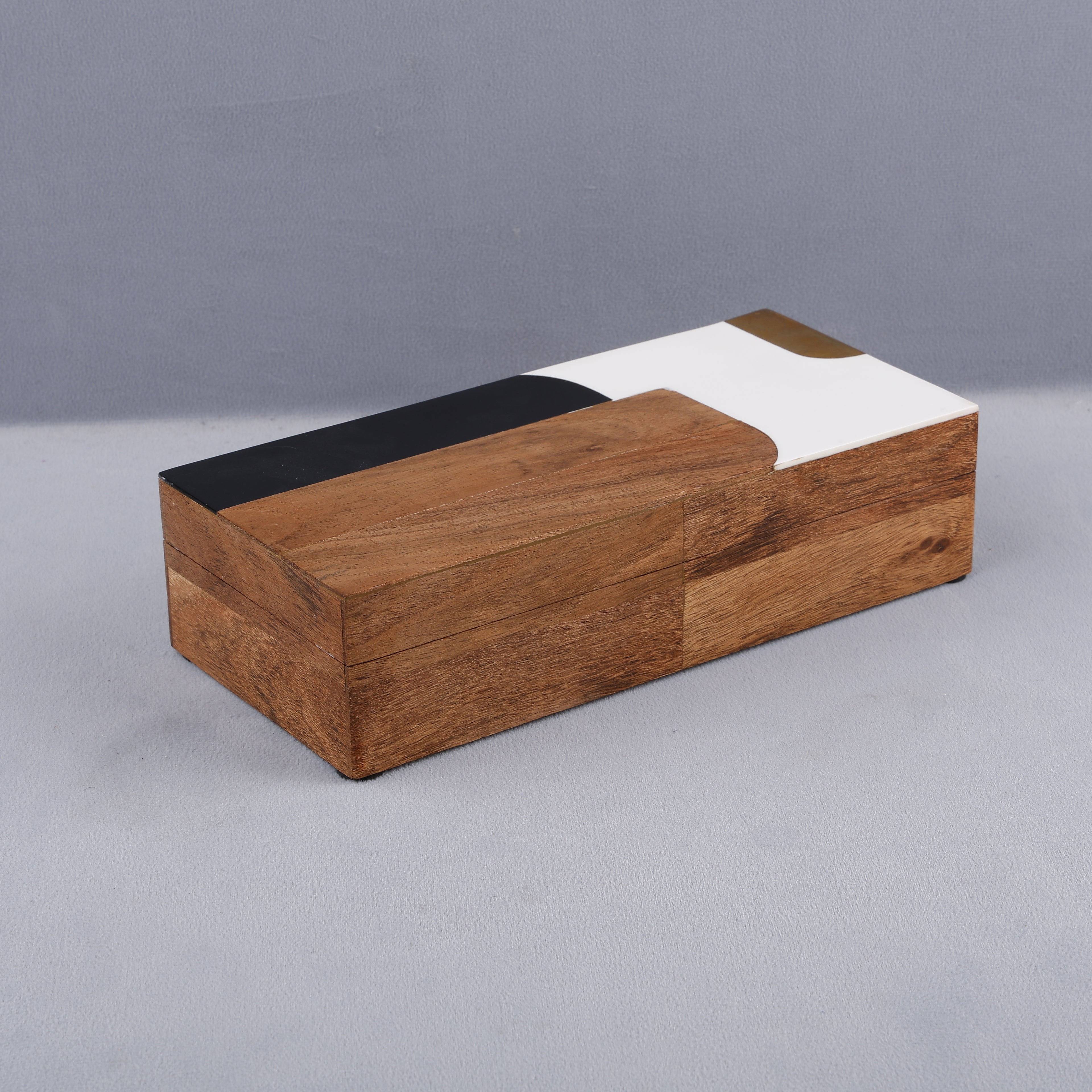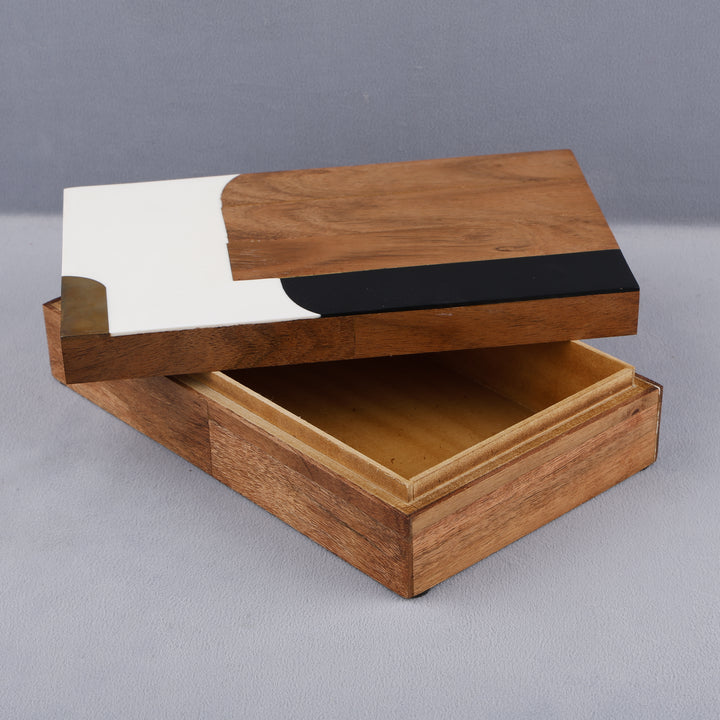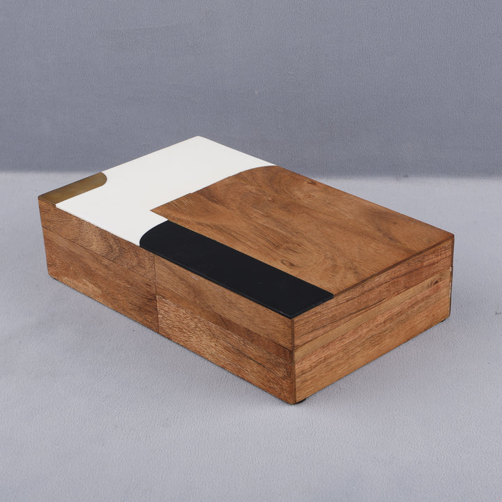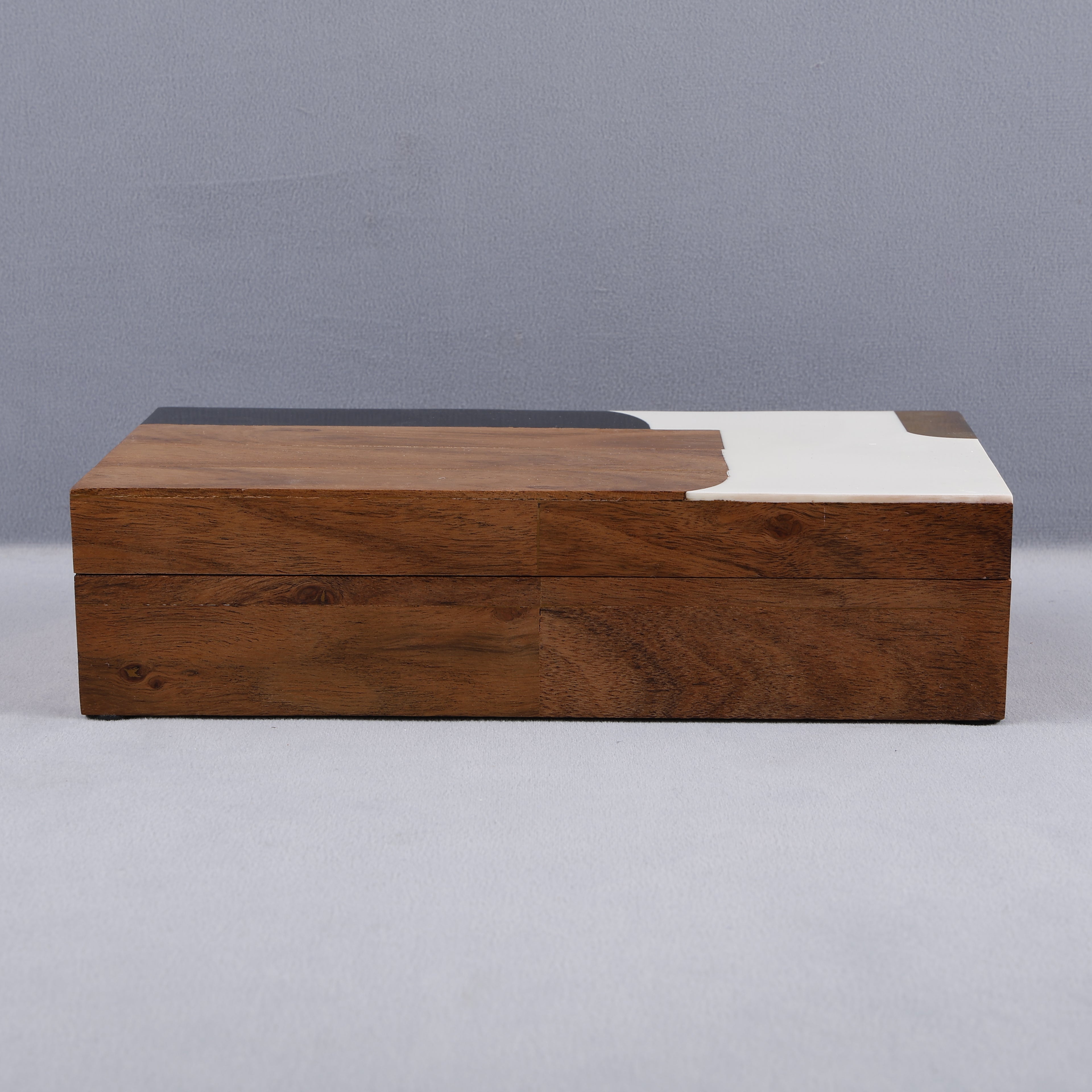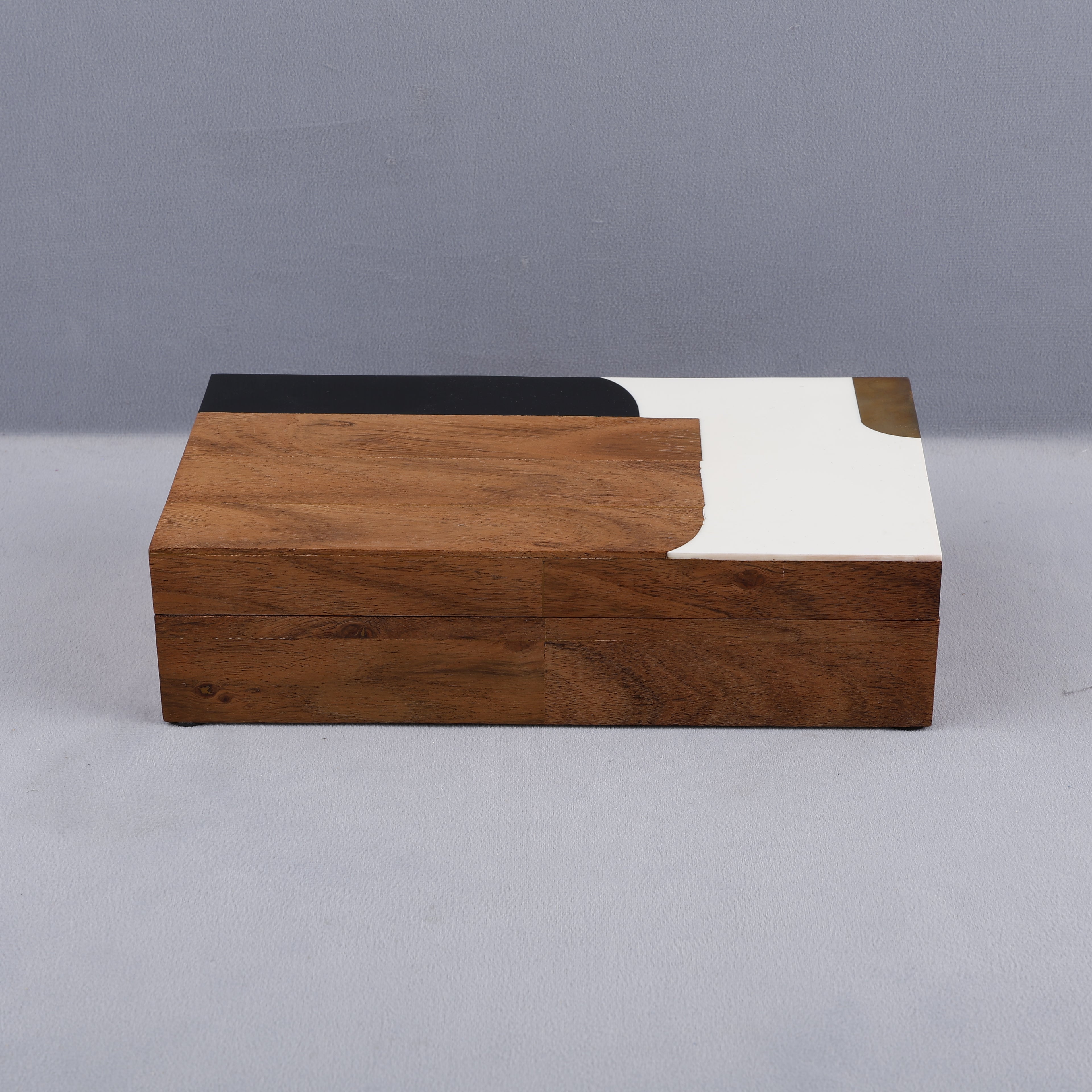 Abstract-Block Pattern Decorative Storage Box, Resin Inlay in 3 Sizes, Black-White