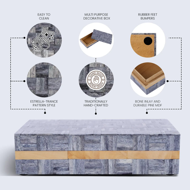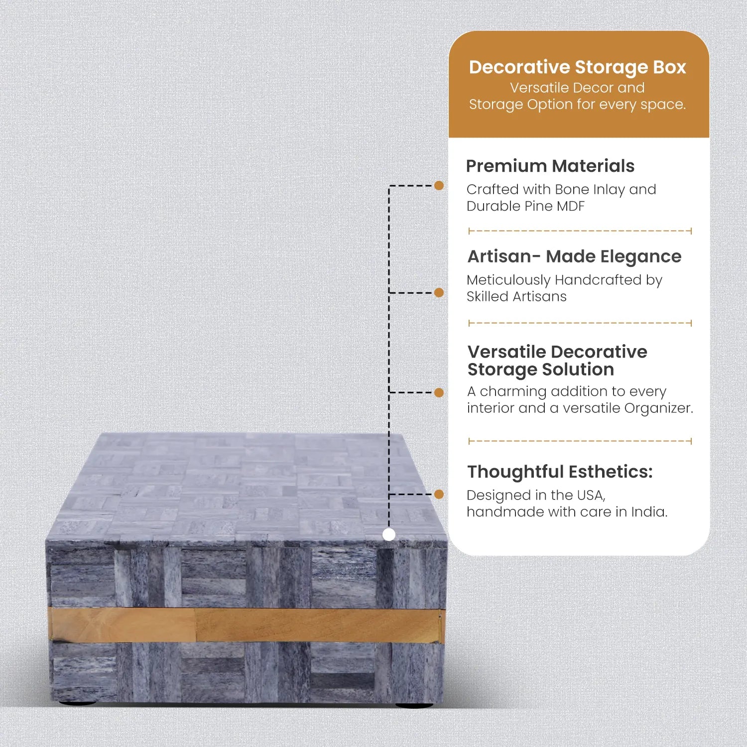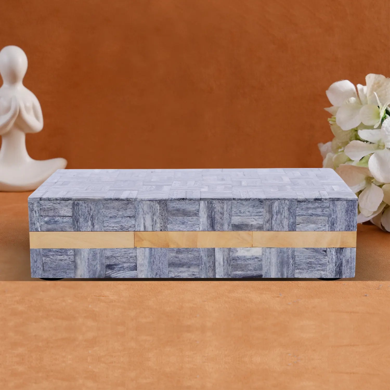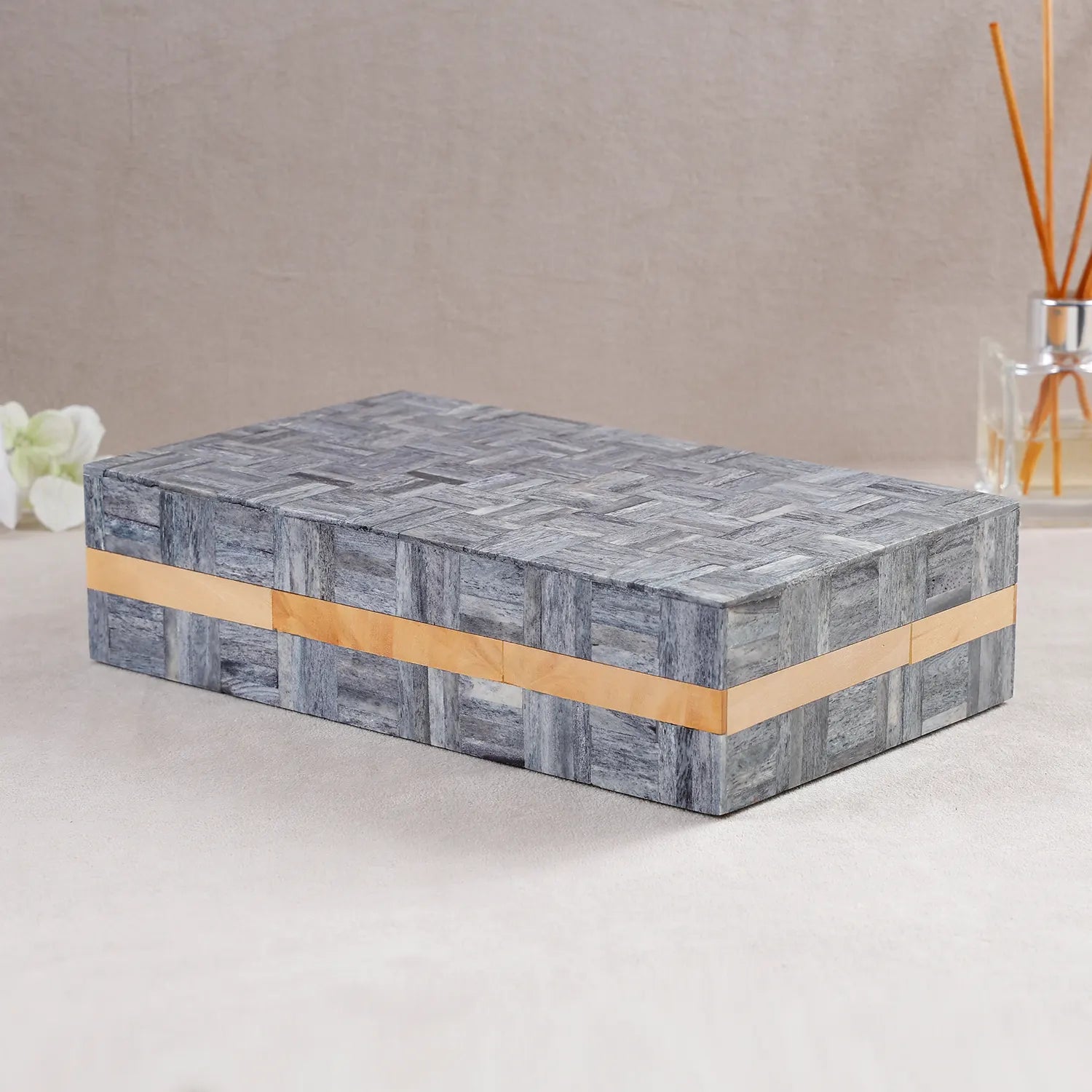 Brick Pattern Decorative Storage Box, Resin Inlay in 3 Sizes, Grey-Brown