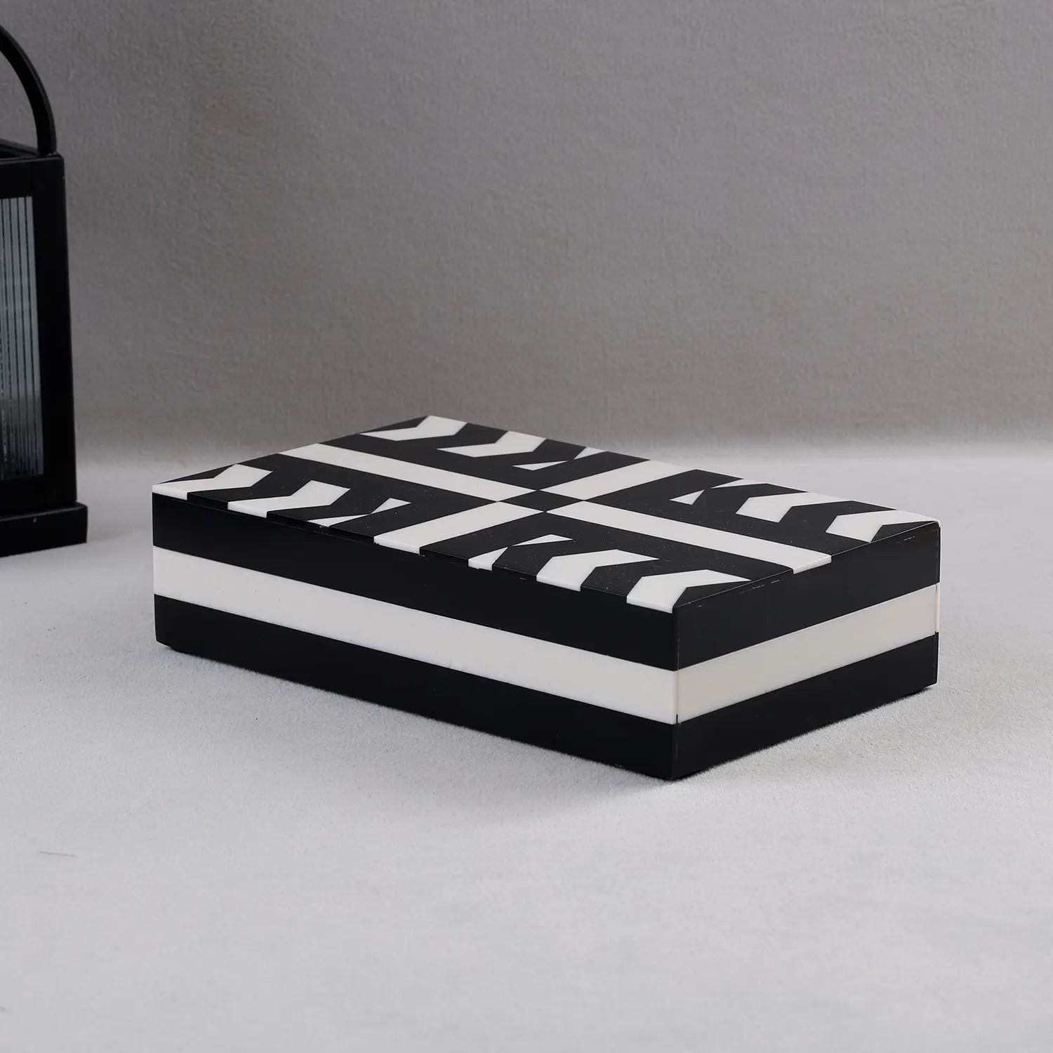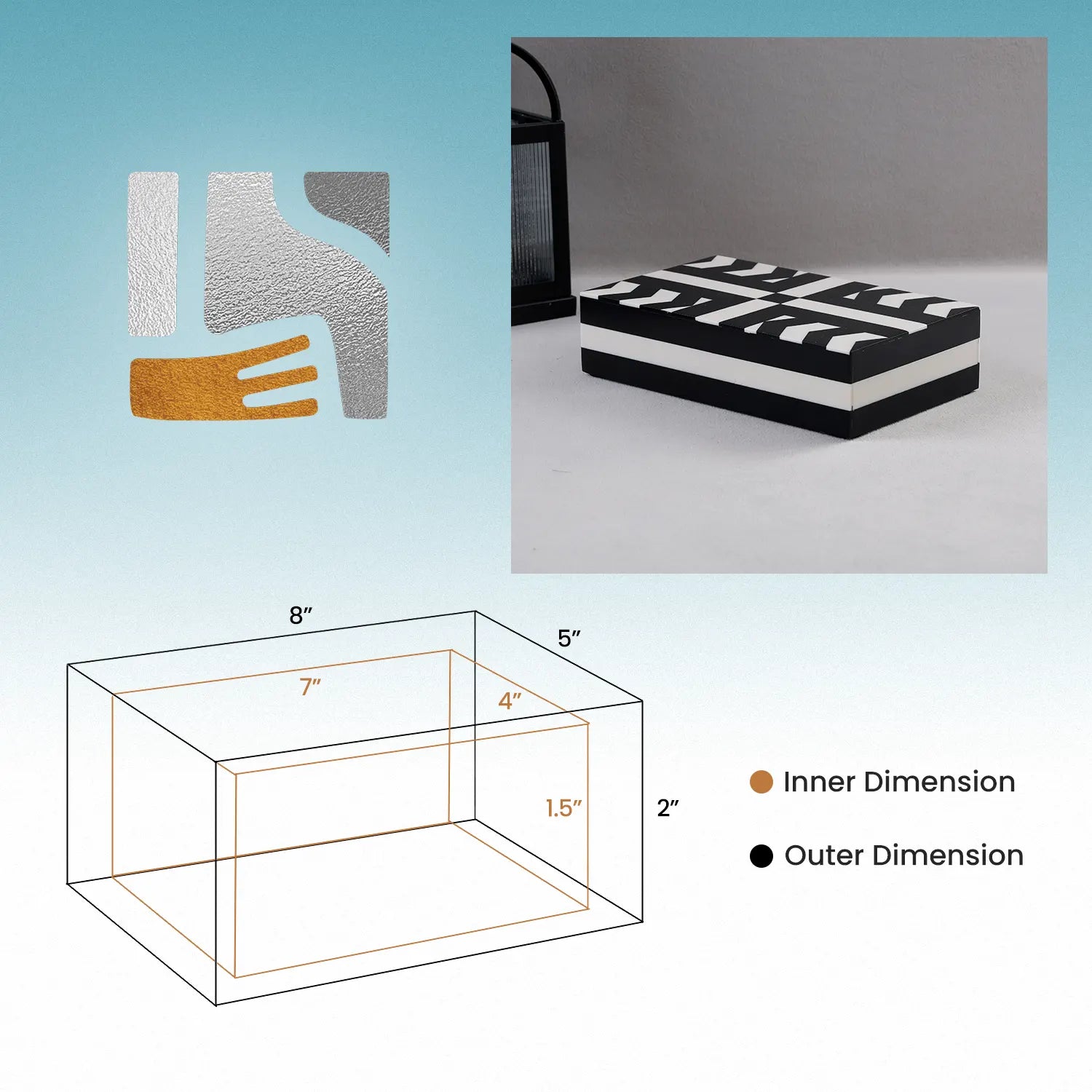 Handicrafts Home Patisserie Adorn Decorative Storage Box – Black & White Resin Inlay Organizer Box (8x5x2 inch)