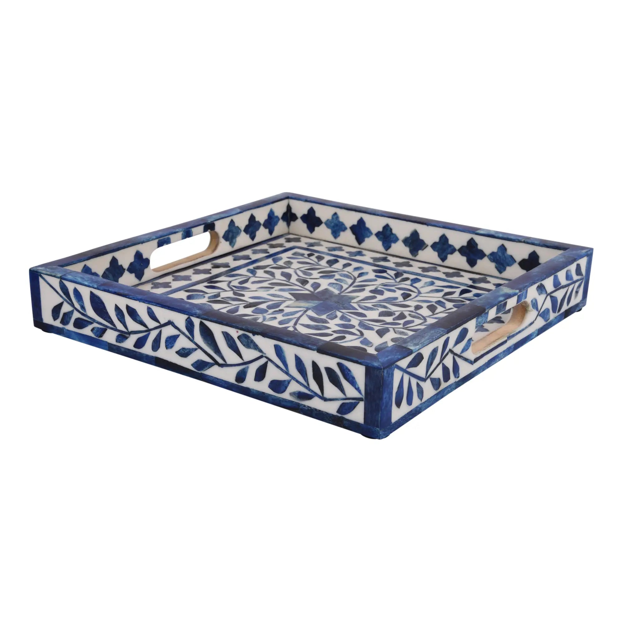 Decorative Tray Alhambra Azul Pattern Bone & Resin Inlay Collection in 2 Sizes