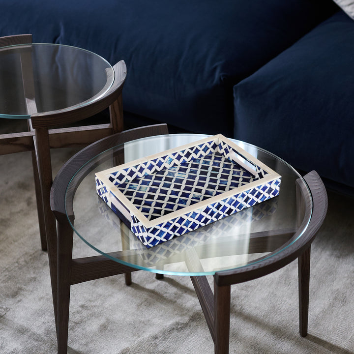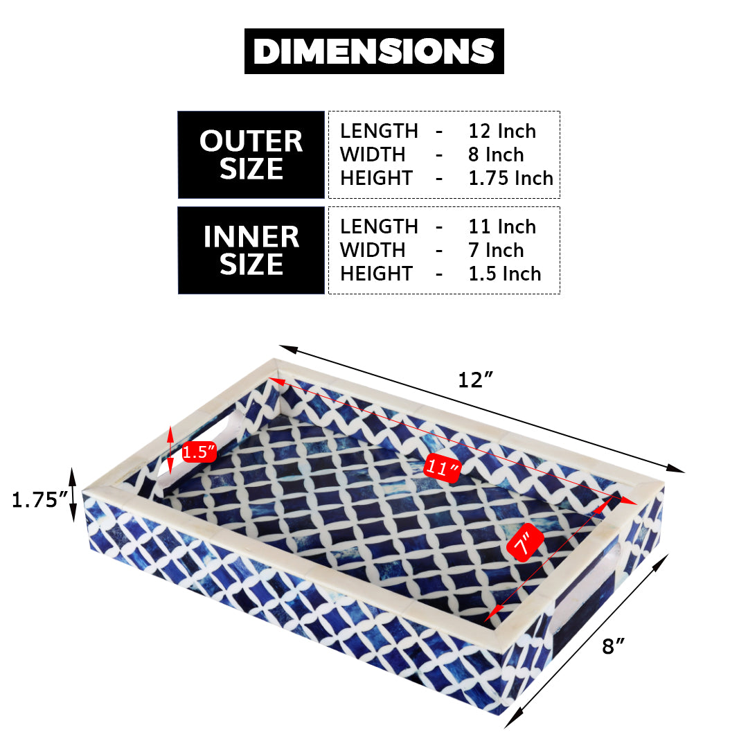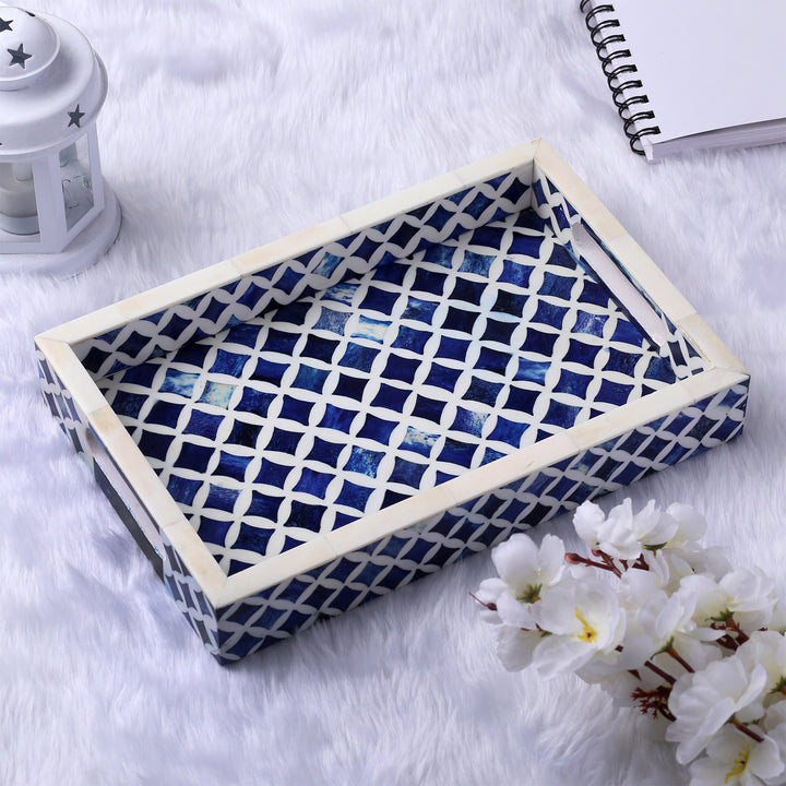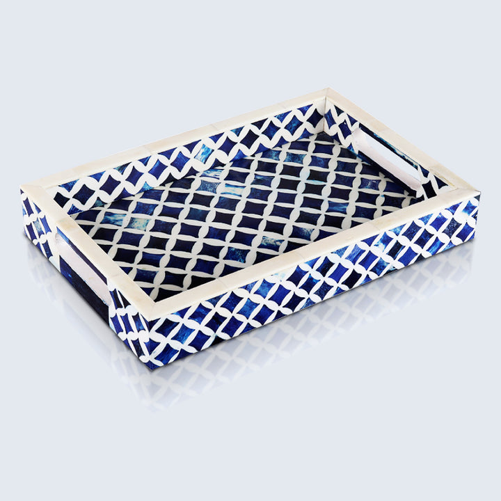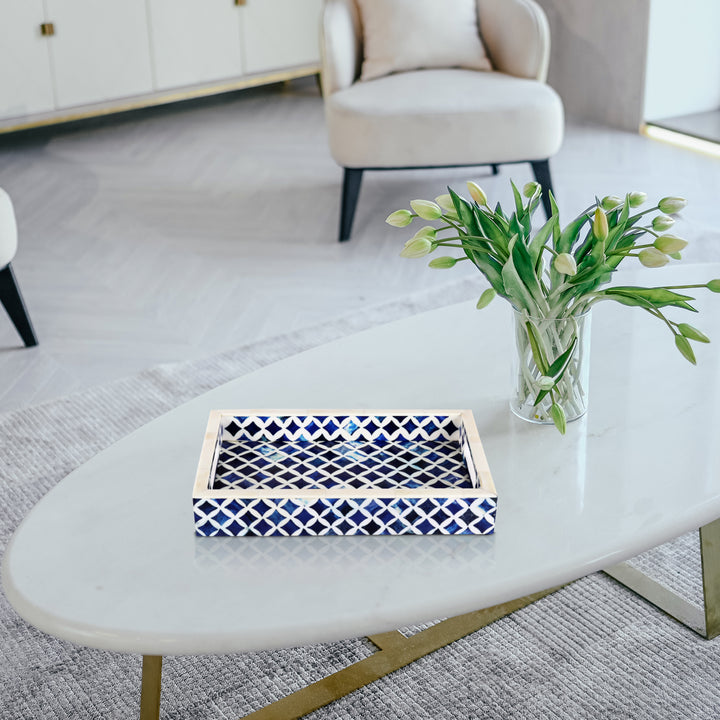 Decorative Tray Indigo Collection Bone & Resin Inlay, Blue & White, 12"x 8"
