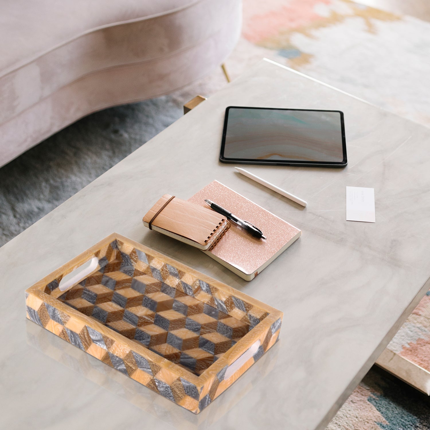 Decorative Tray Modern 3D Pattern Resin Inlay Vanity Organizer – 12" x 8"