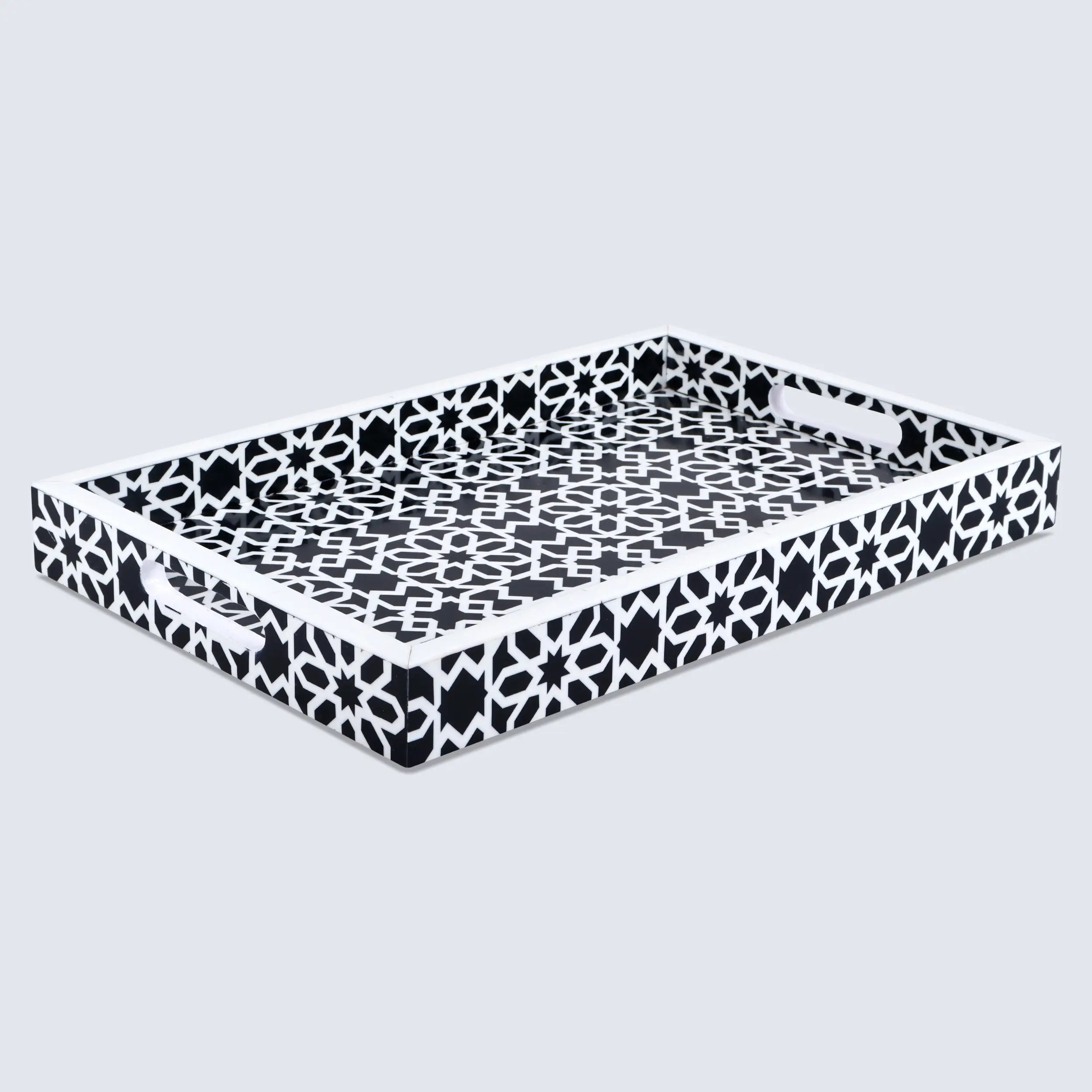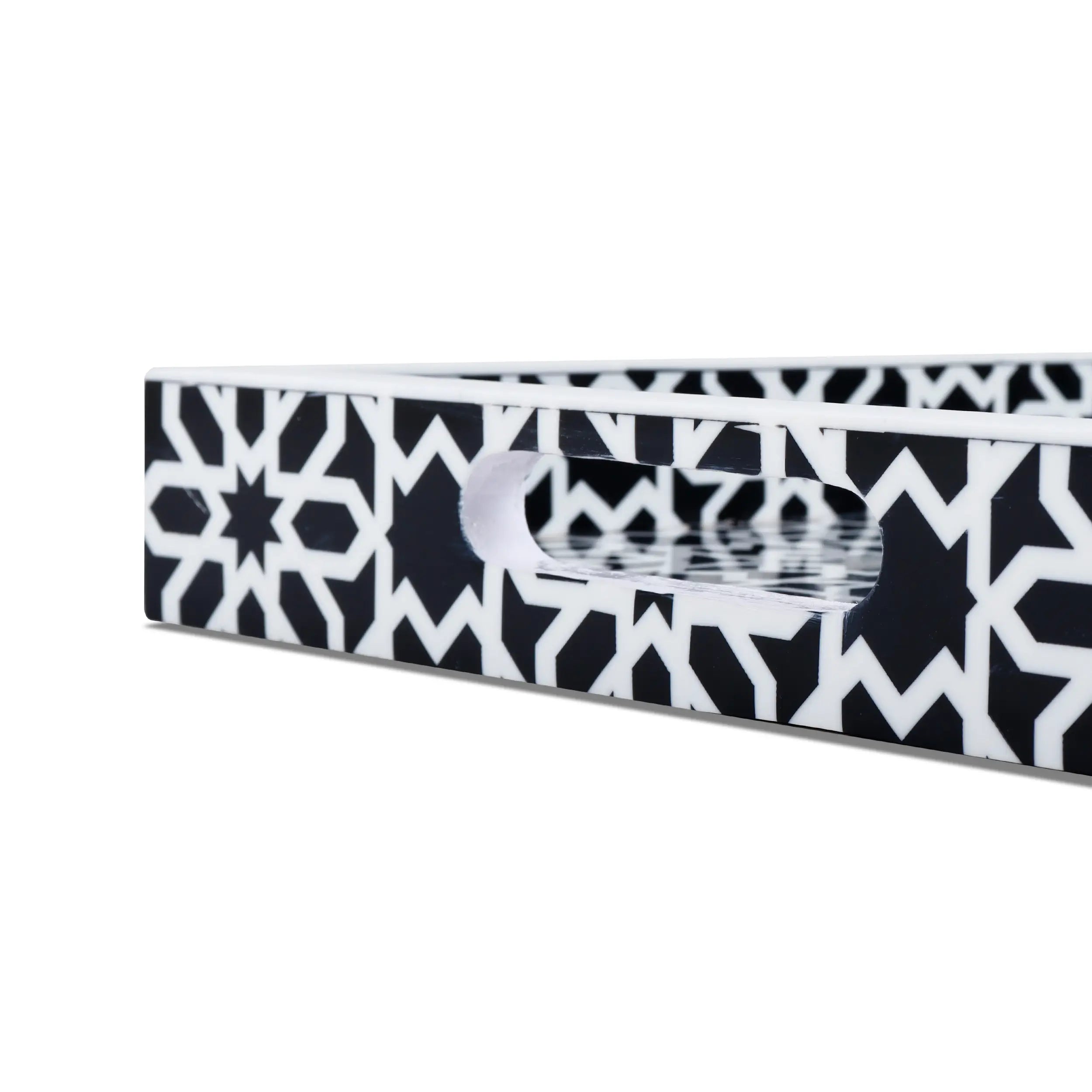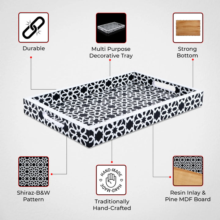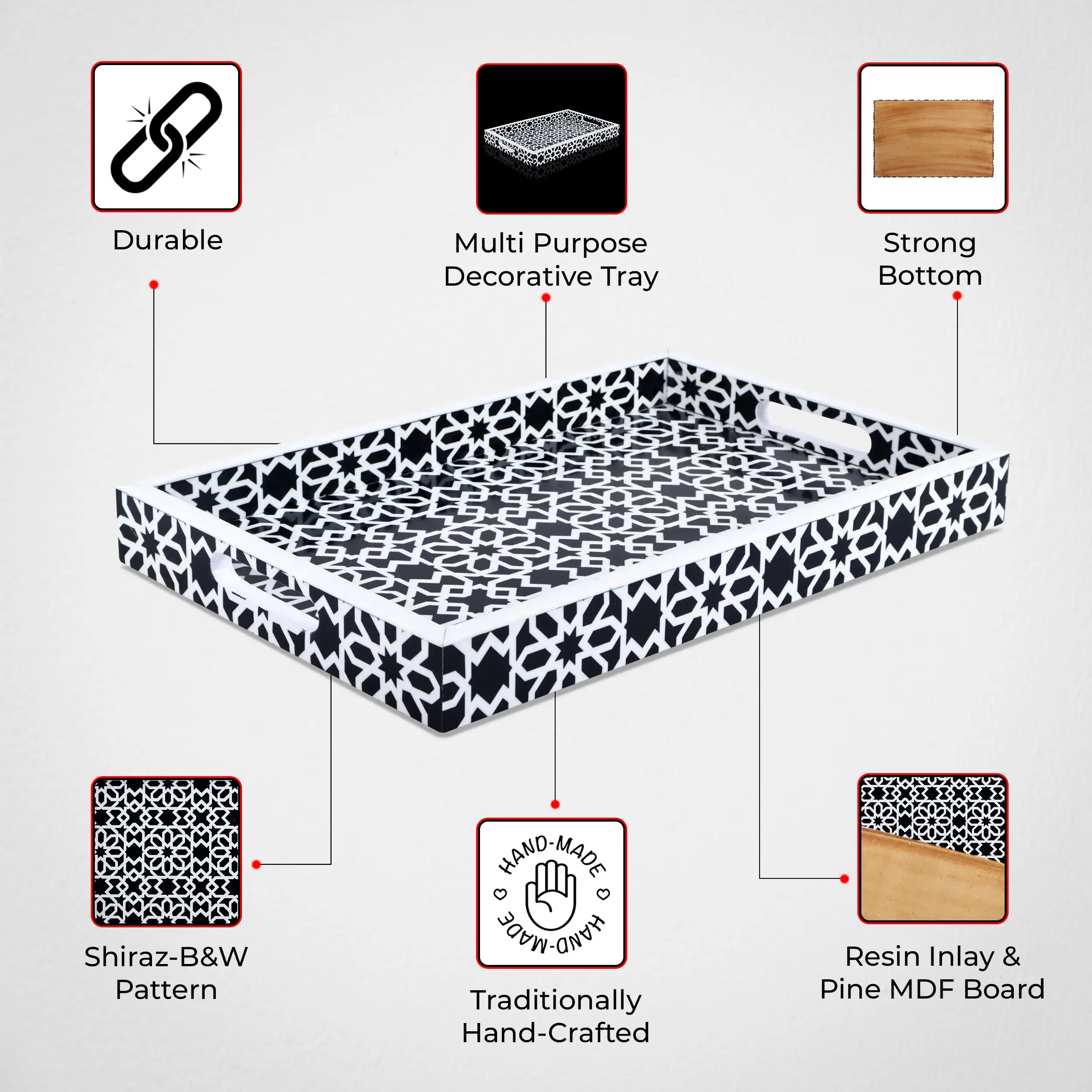 Decorative Tray Shiraj Pattern Resin Inlay Collection in 2 Sizes, Black & White