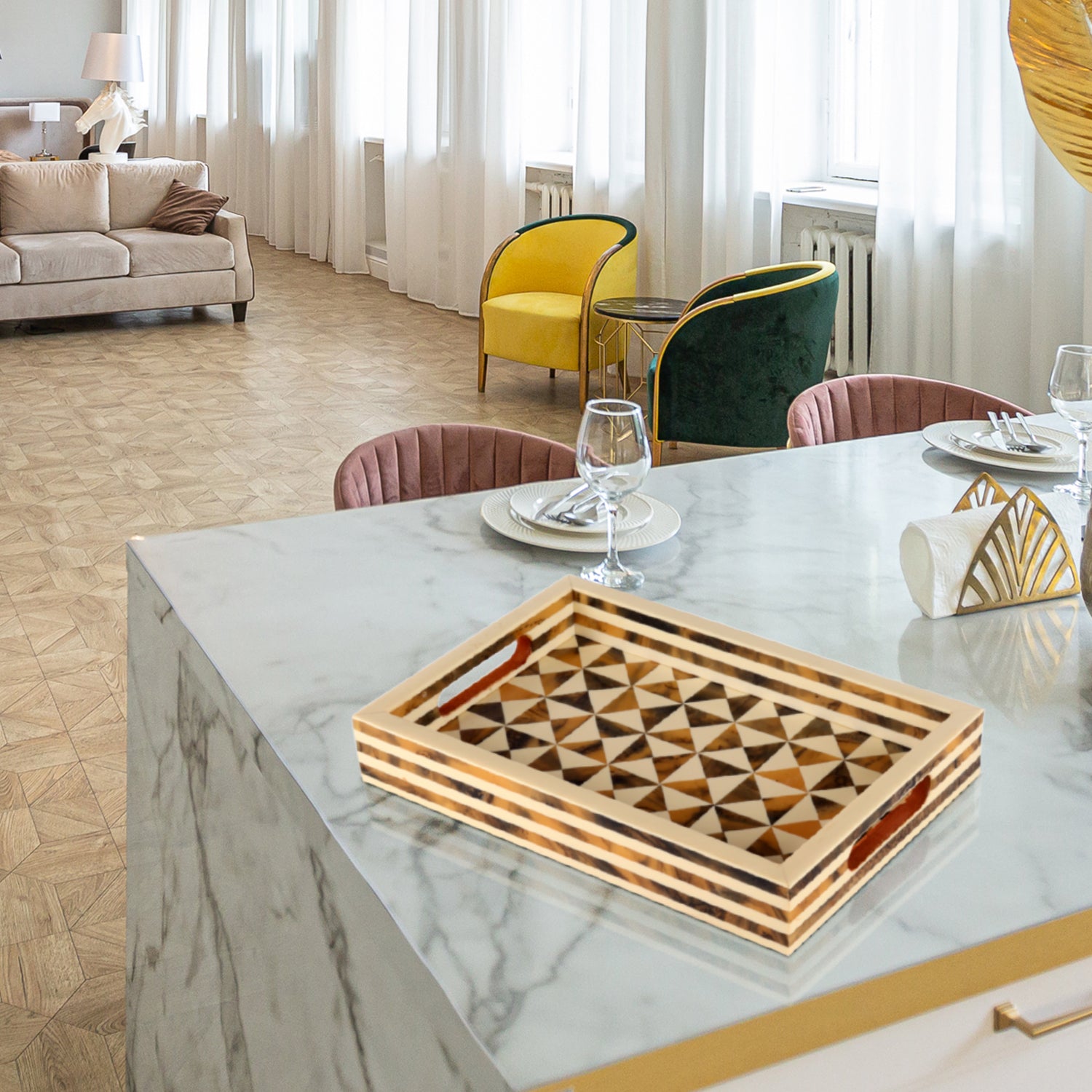 Decorative Tray Triangle Pattern Resin Inlay Collection in 12x8