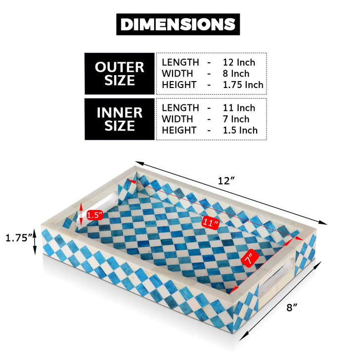 Decorative Tray Vintage Pattern Bone Inlay Collection in 12x8, Turquoise & White