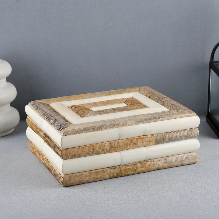 Transform your home with this artisan-crafted Drancy Ribbed pattern Bone Inlay & Wood Storage Box — a unique decorative storage solution blending modern elegance with traditional craftsmanship.