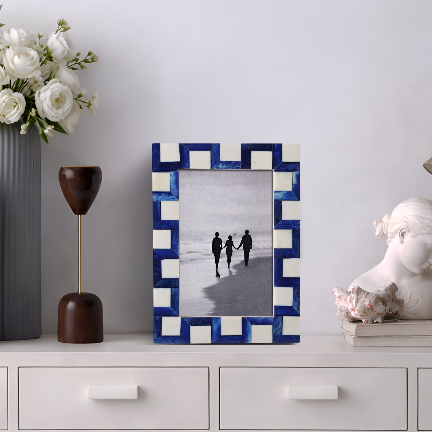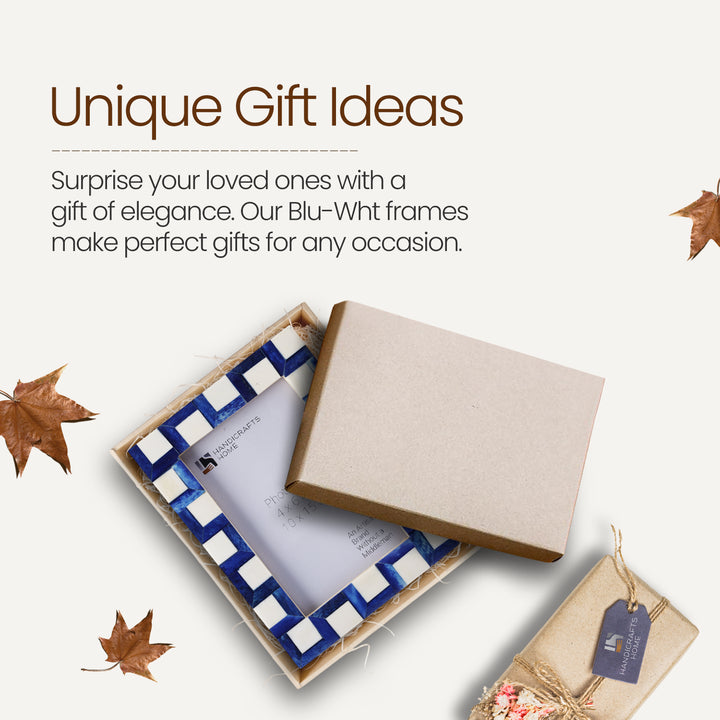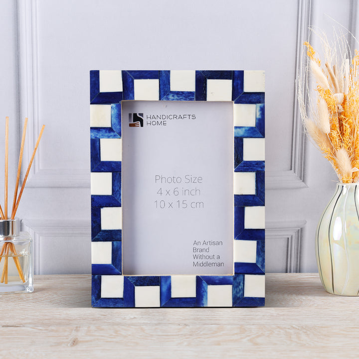 Picture Frames Esher Cube Bone Inlay Collection, Blue-White, 4x6, 5x7
