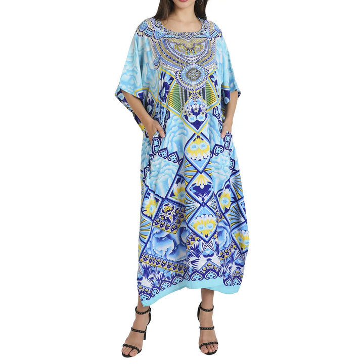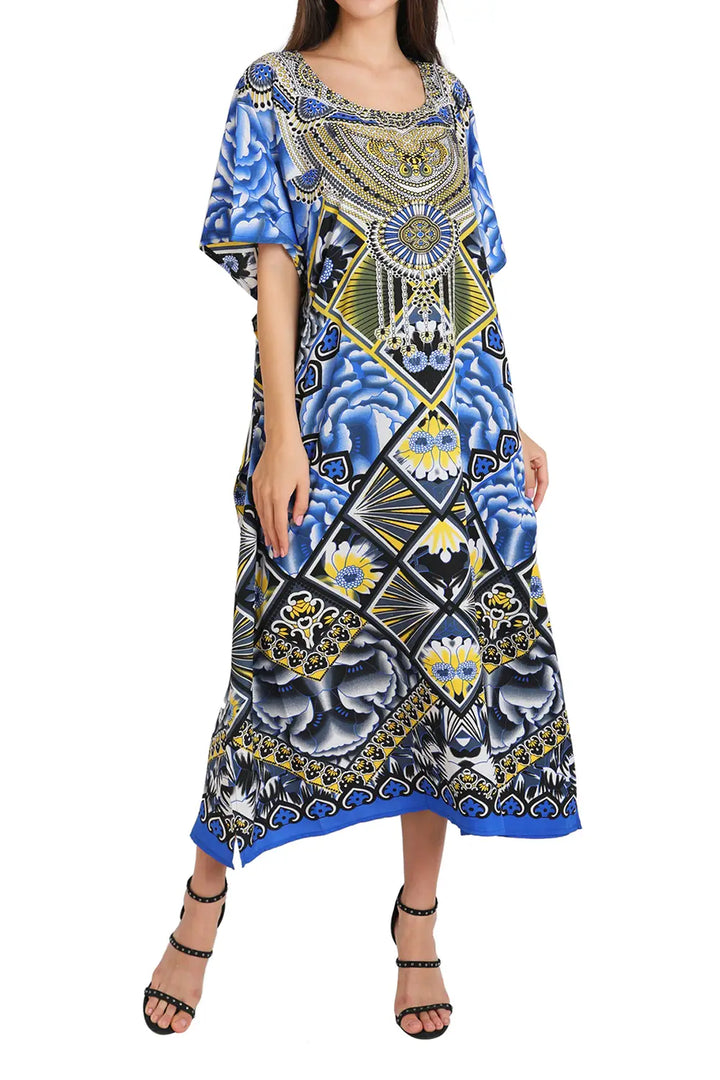 Women Long Kaftans Summer Holiday Caftan Dress 3 Colors S-3XL