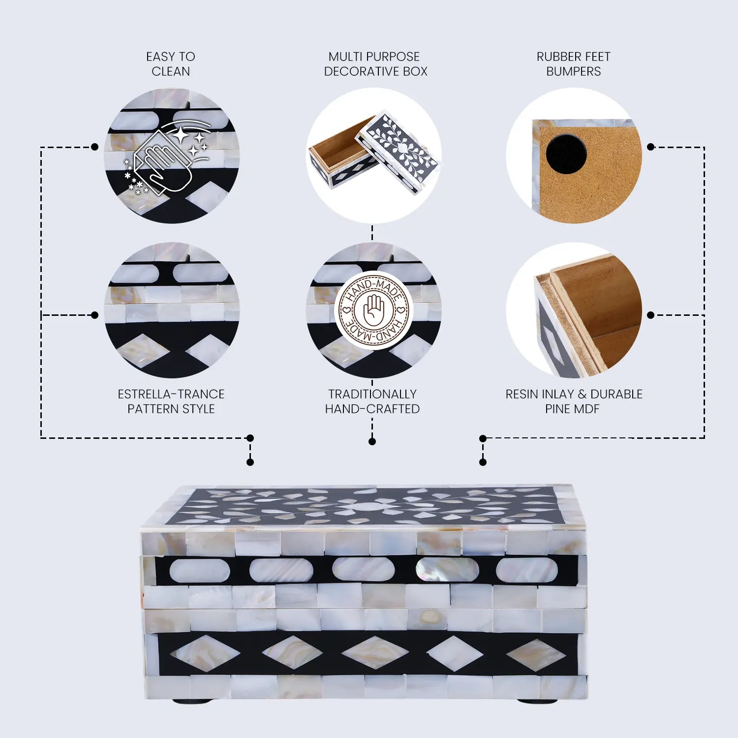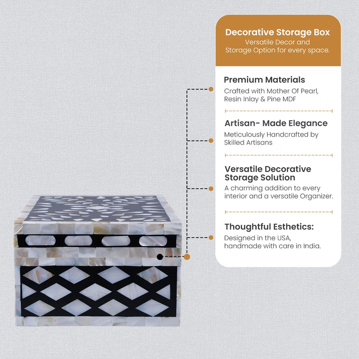 Premium Quality Handcrafted Detail: Handicrafts Home decorative box is uniquely handmade, showcasing beautiful craftsmanship and durable construction. Designed as a MOP, Bone Inlay & wood decorative box–inspired modern storage piece, it not only organizes your space but also elevates it with artistic elegance and sophistication.