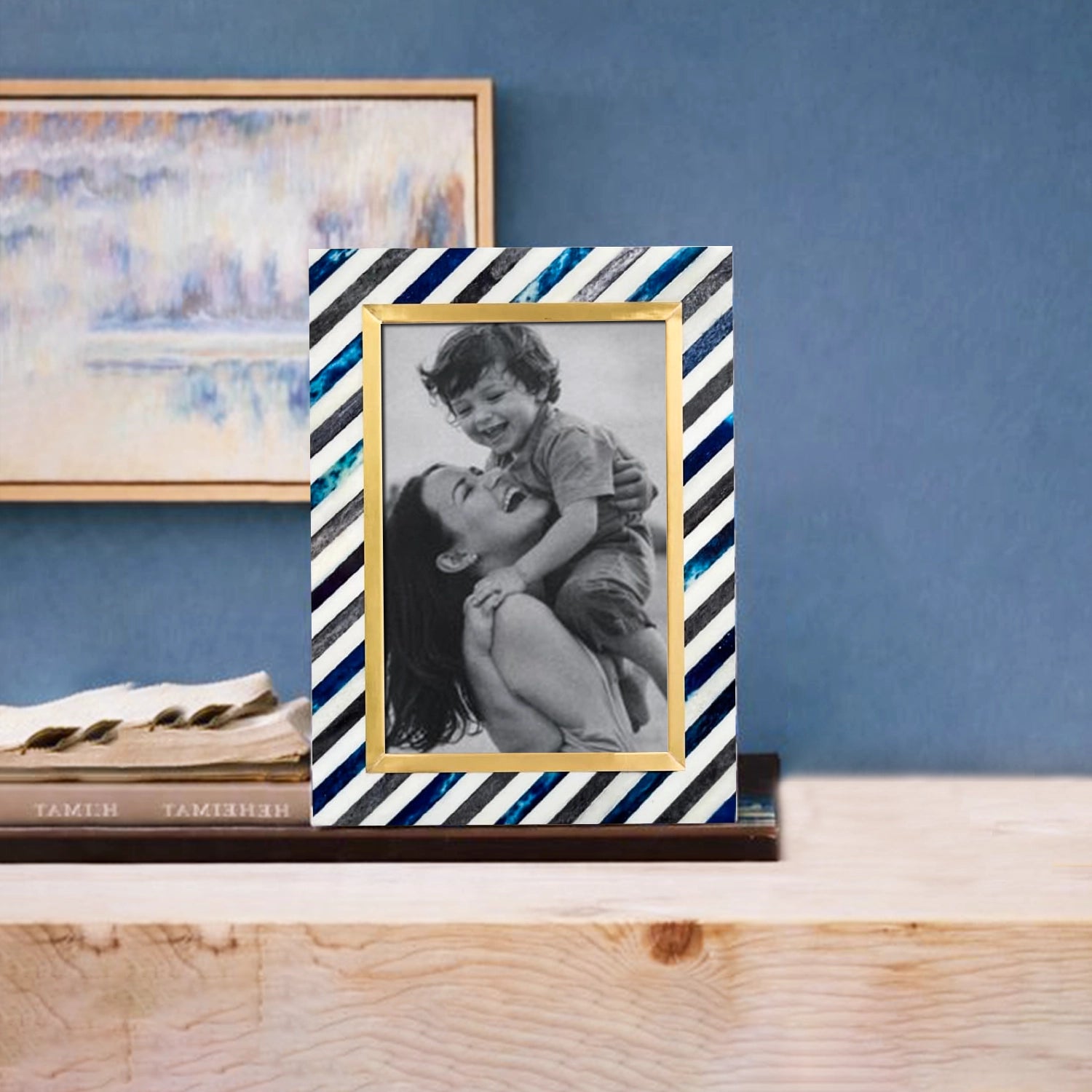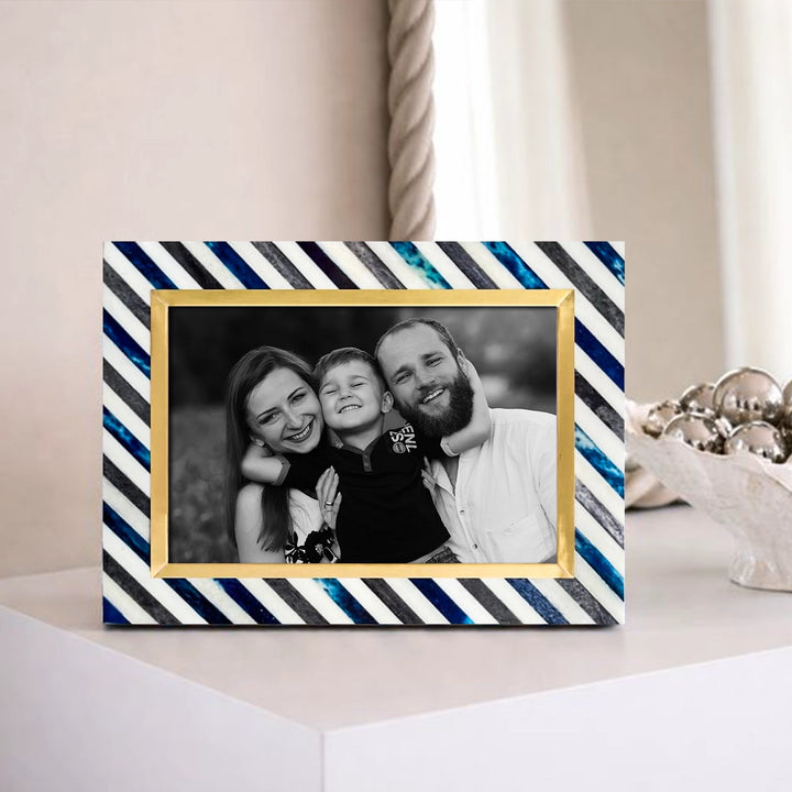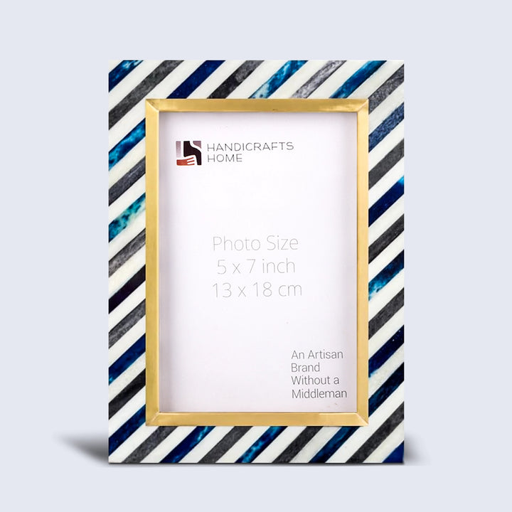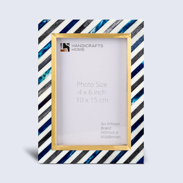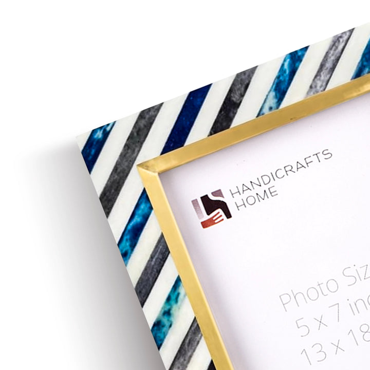 Picture Frame Diagonal Stripe Collection Bone Inlay, Brass & Wood Blue – 4x6 & 5x7"
