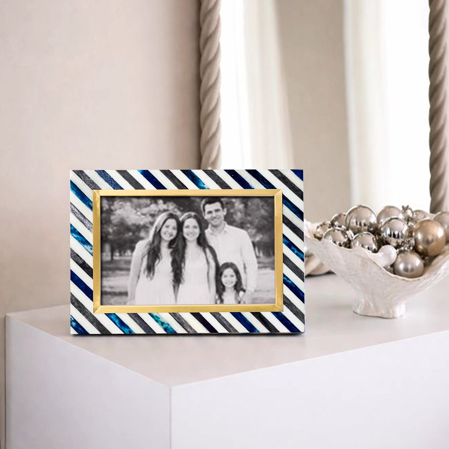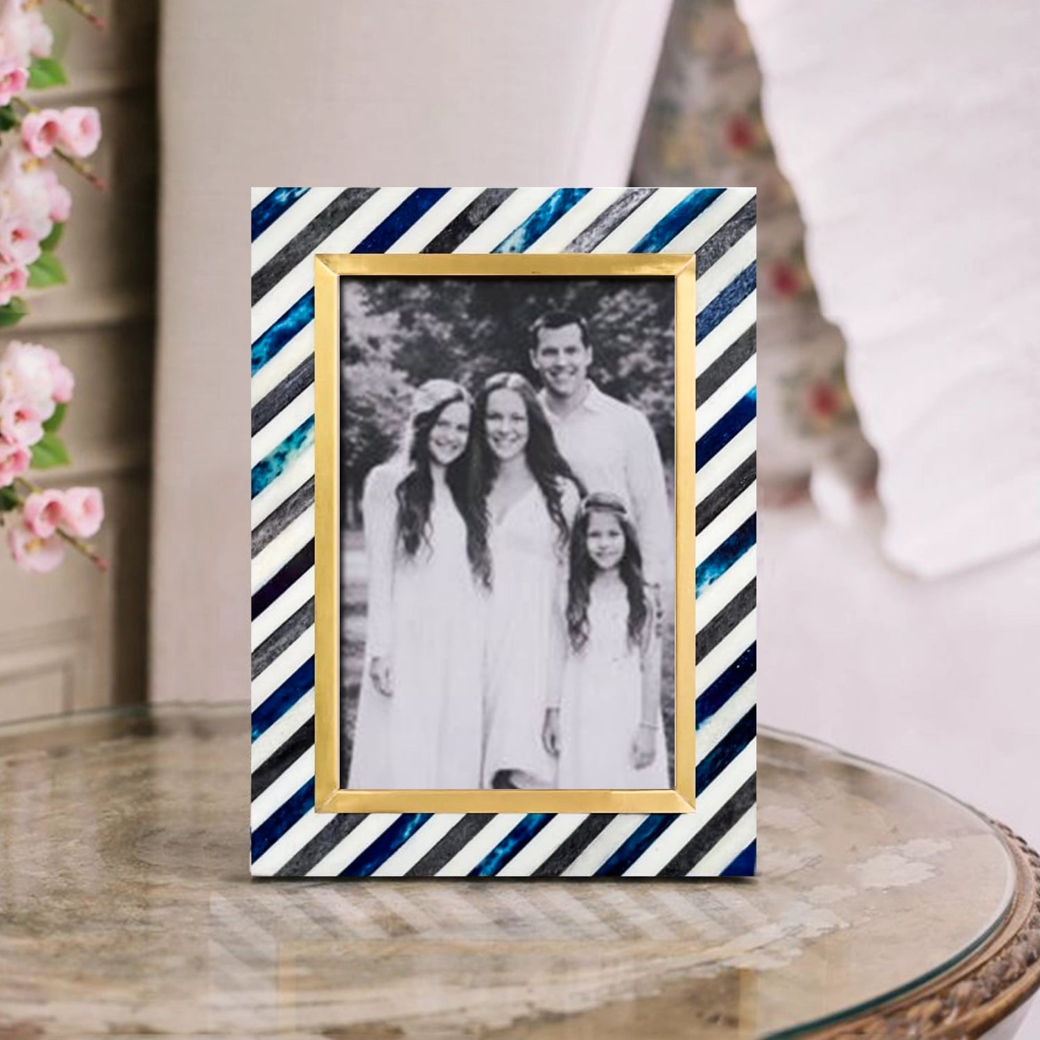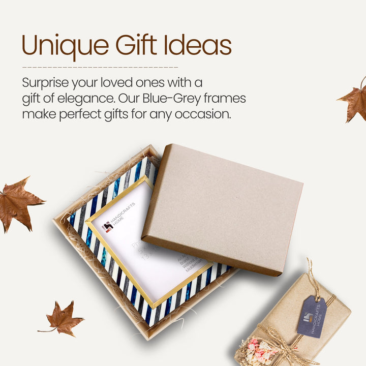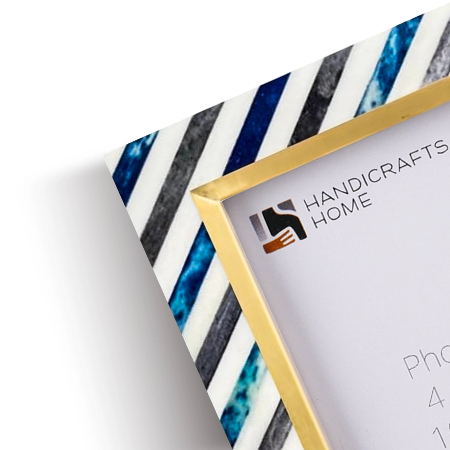 Picture Frame Diagonal Stripe Collection Bone Inlay, Brass & Wood Blue – 4x6 & 5x7"