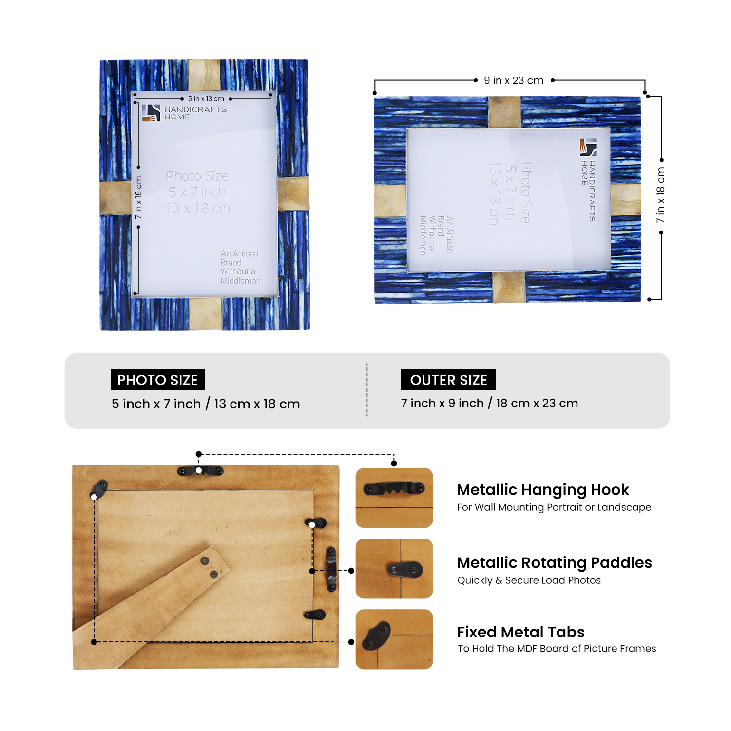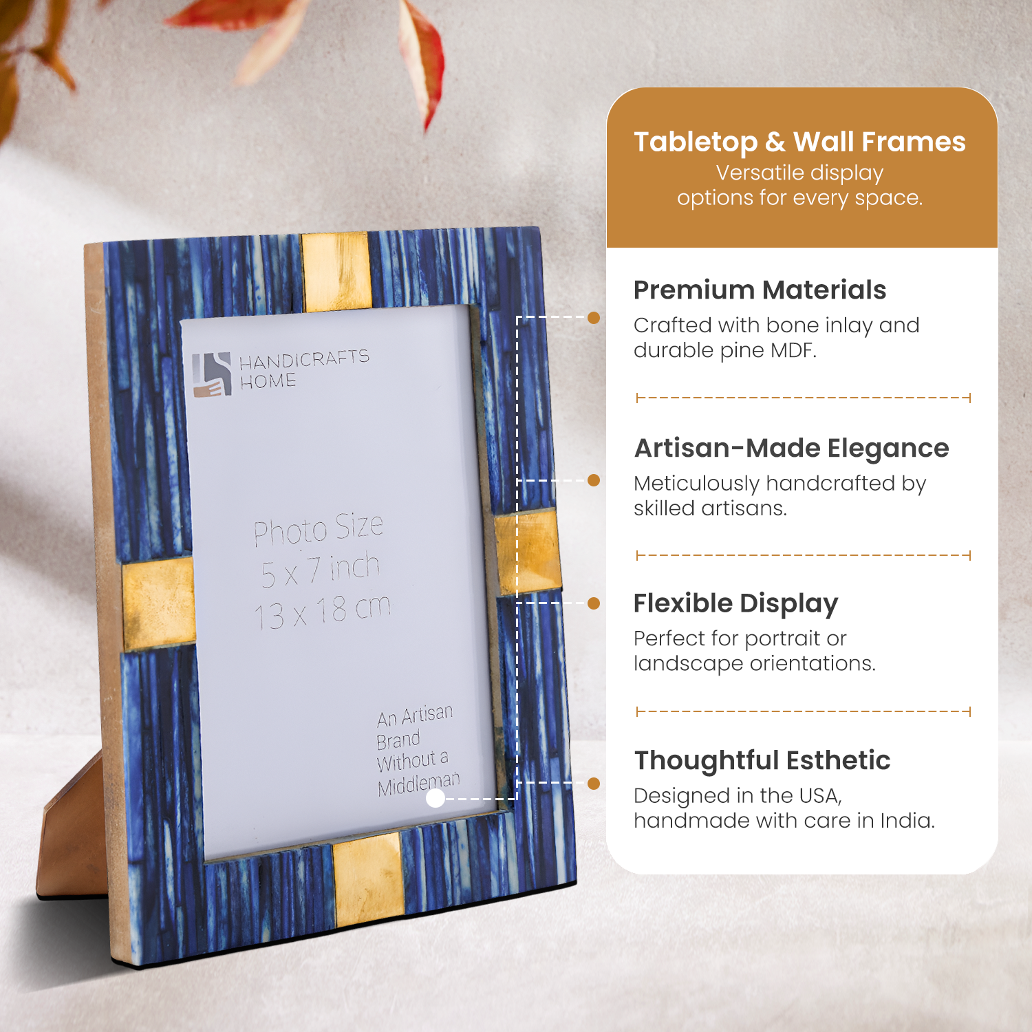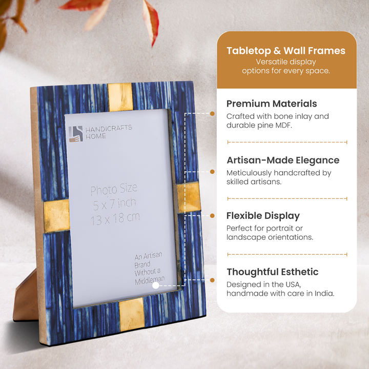 Handmade Coastal Luxe Bone Inlay & Brass Picture Frame- 4x6 & 5x7