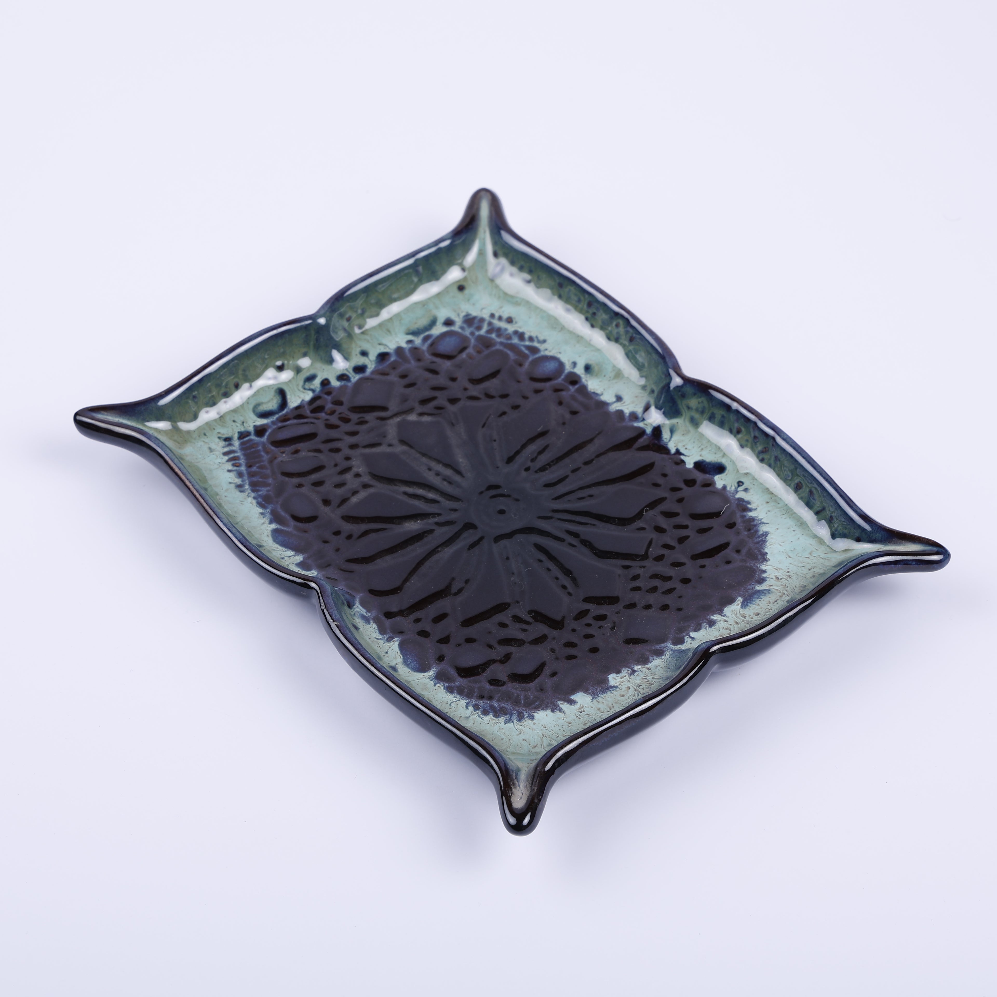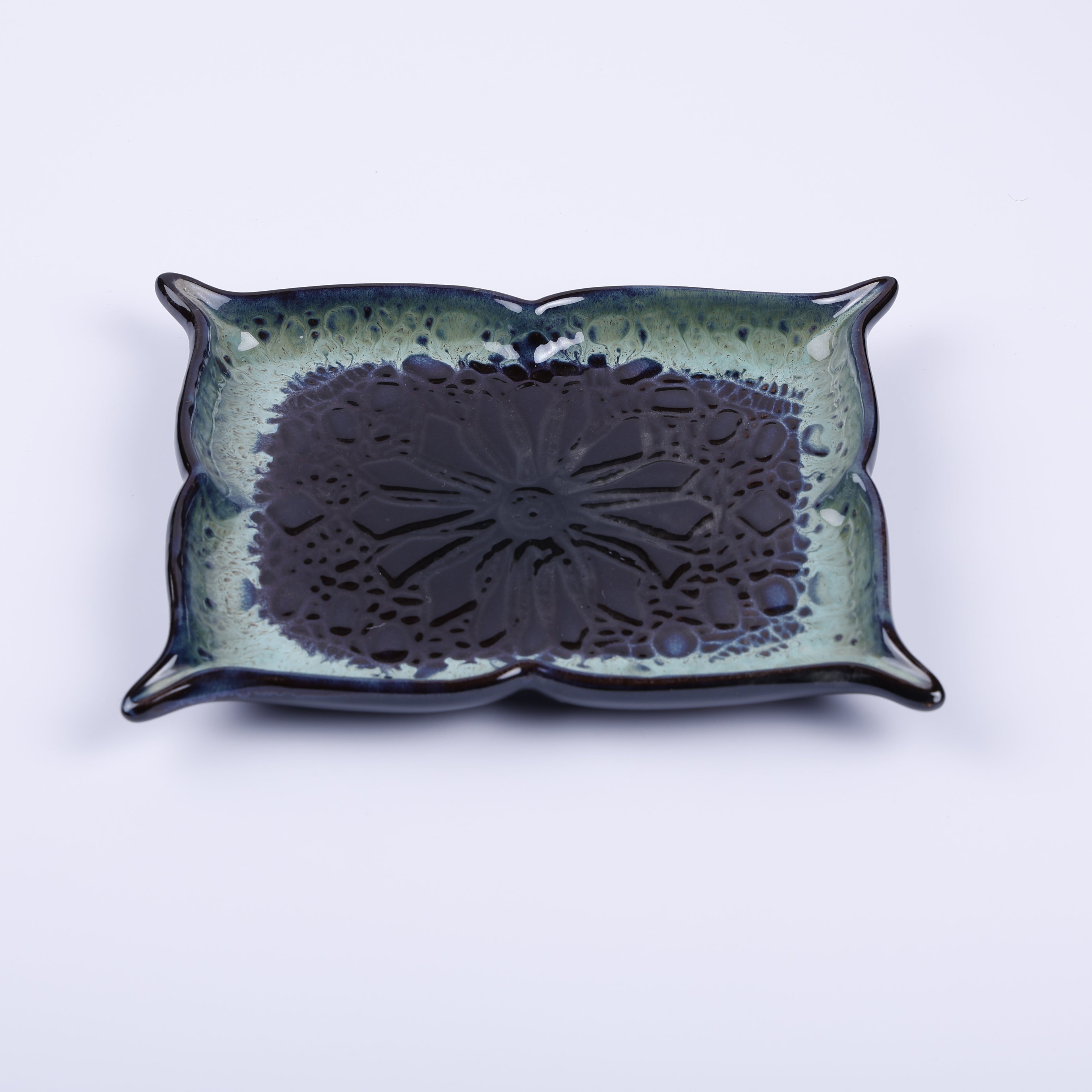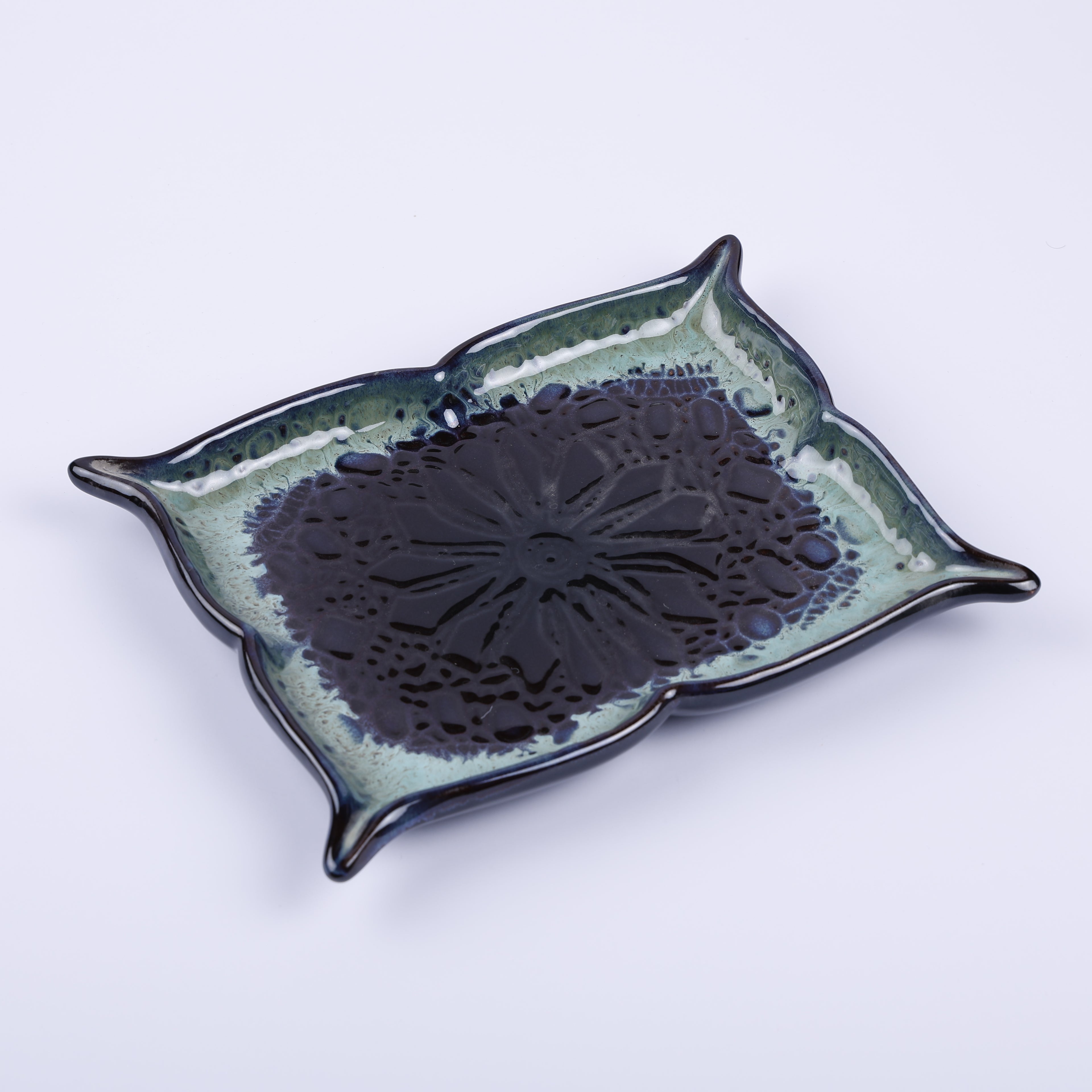Handmade Decorative Ceramic Platter For Serving & Decor -BLUE-SQR