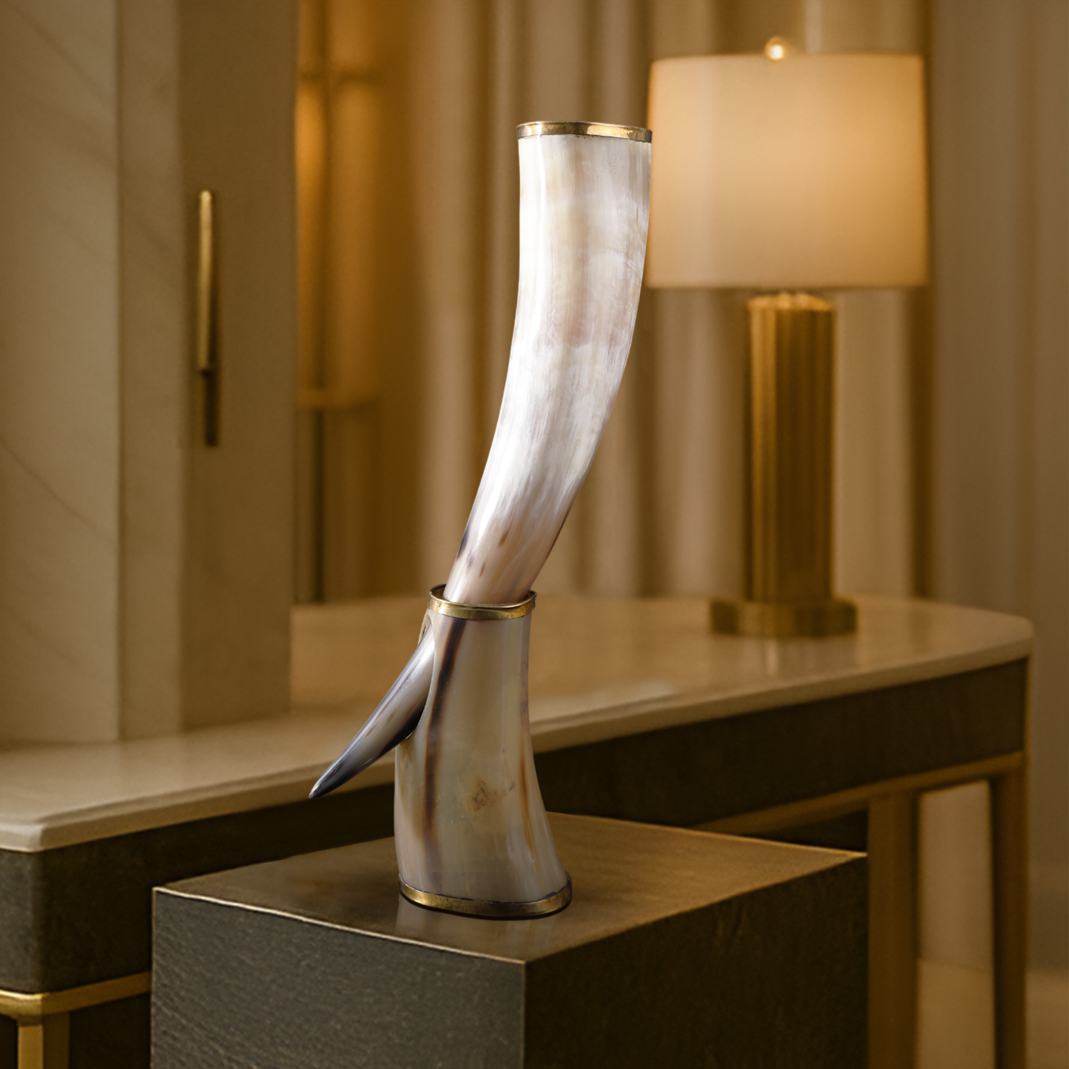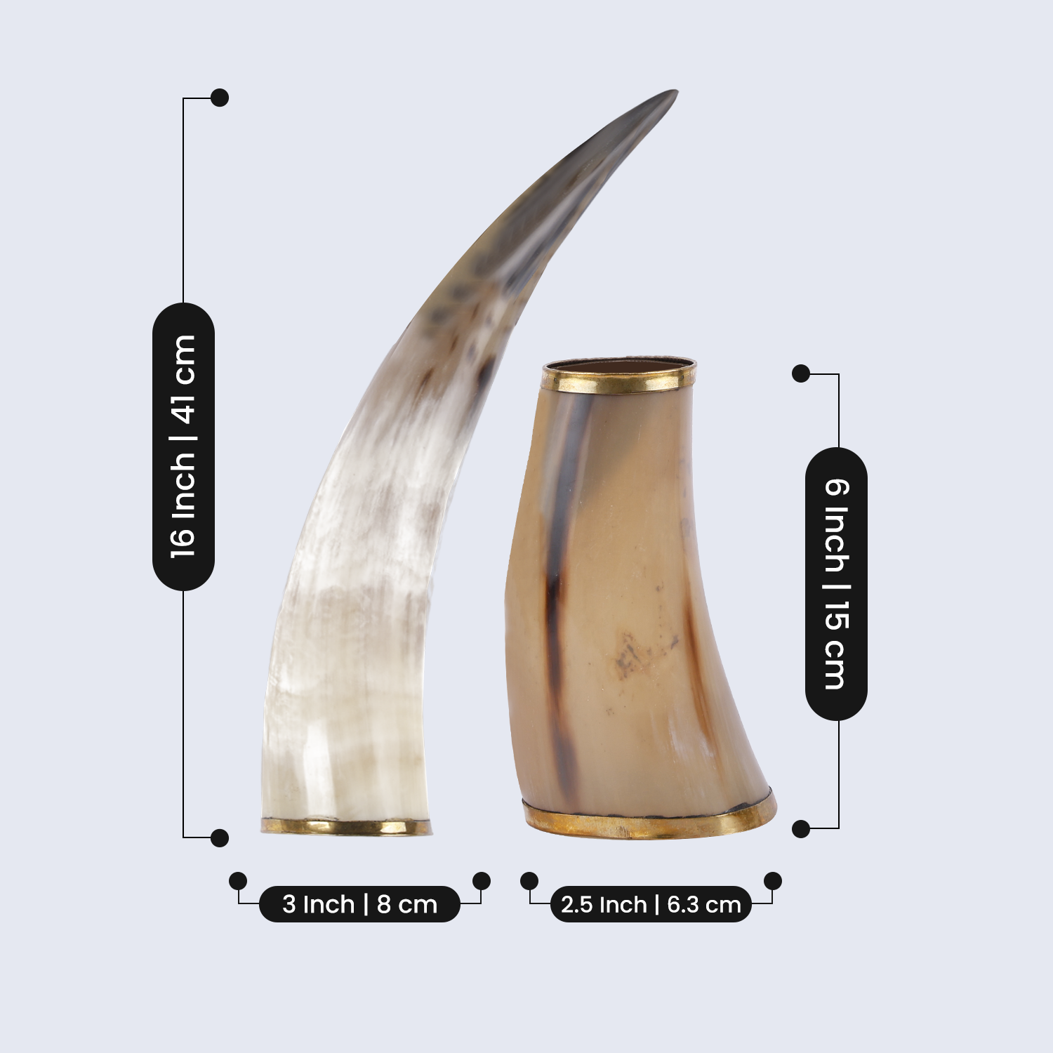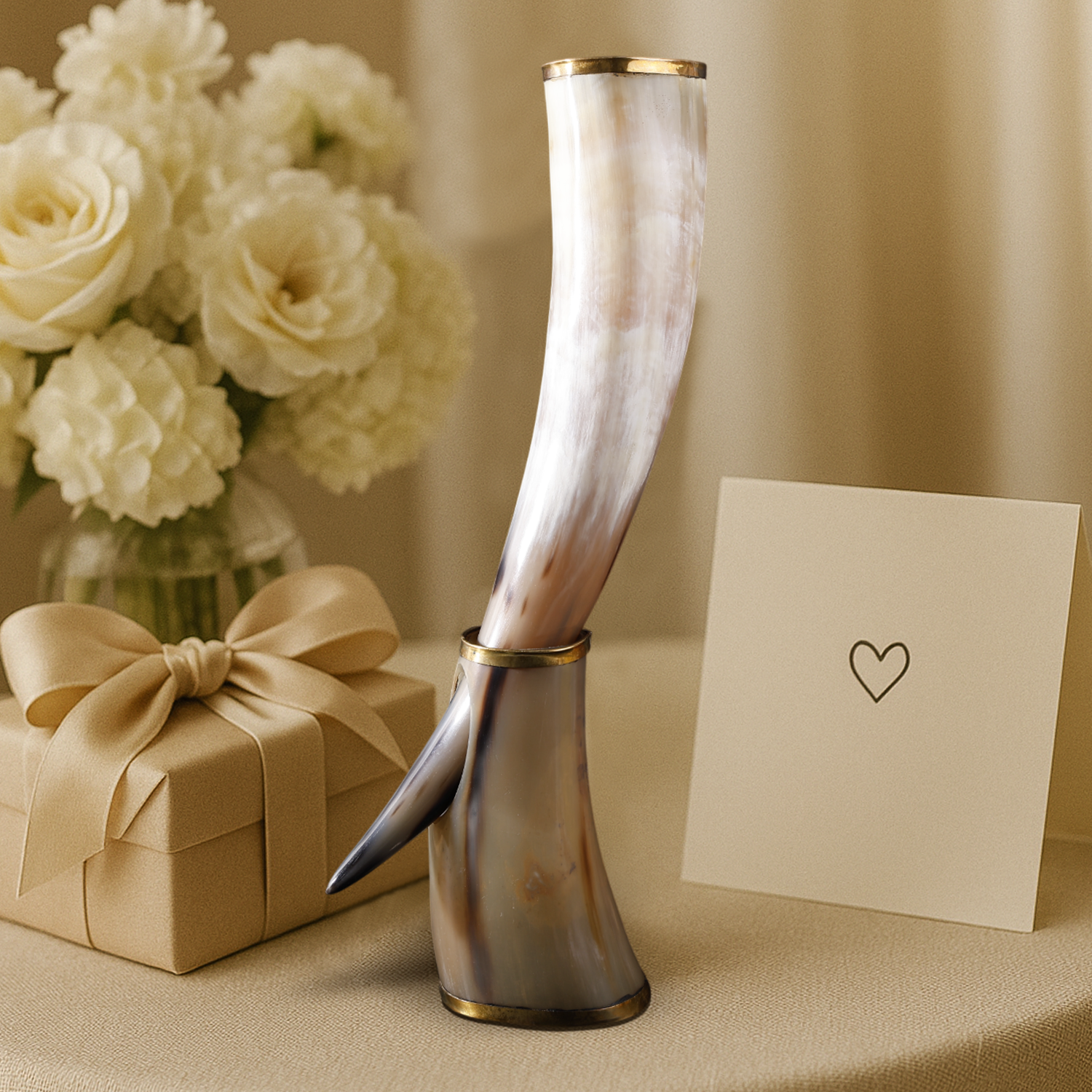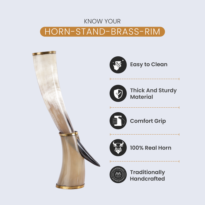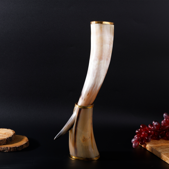 Drinking Horn with Stand - Holds Upto 16 oz, Metallic Finish