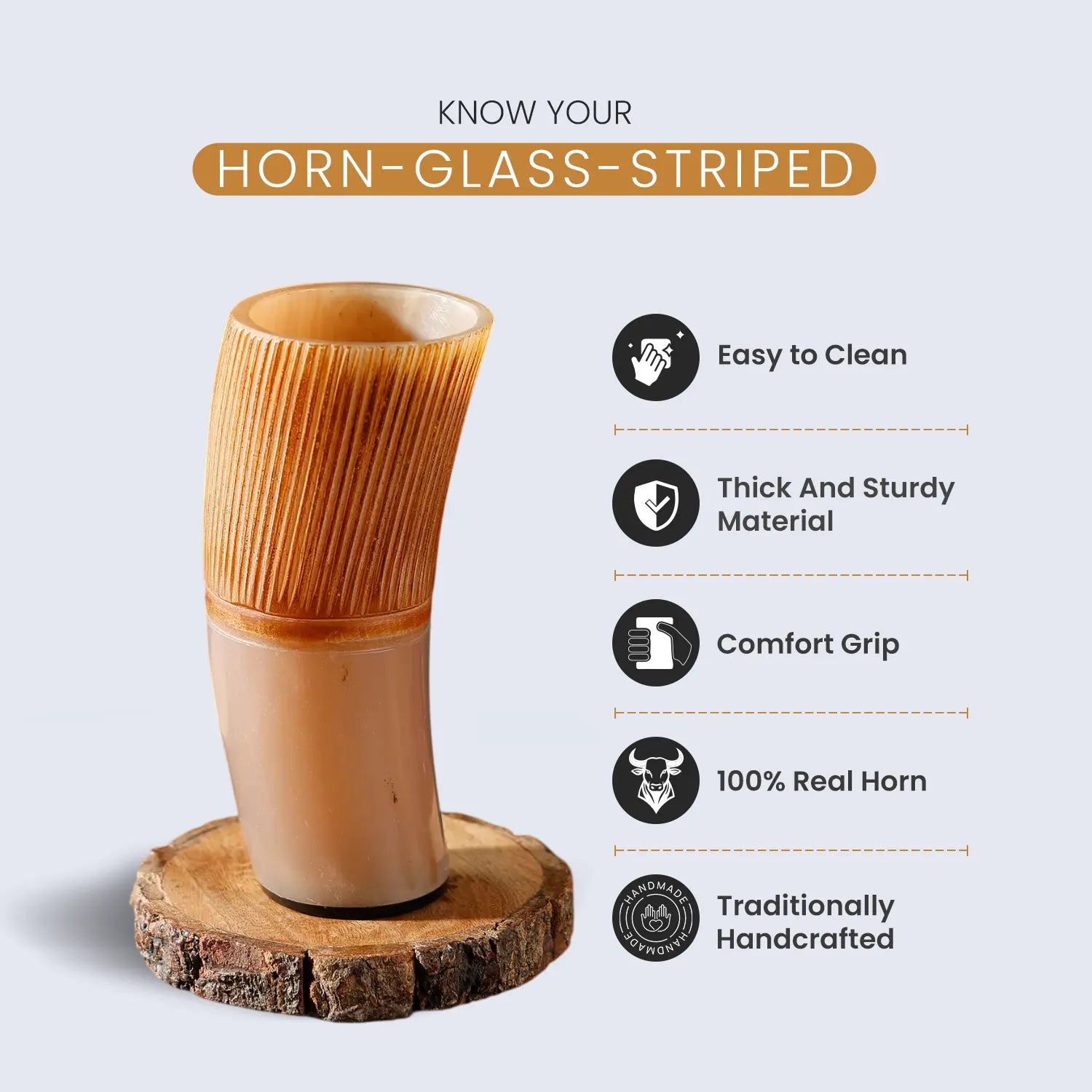 Horn Drinking Glasses - Holds Upto 10 oz, Striped