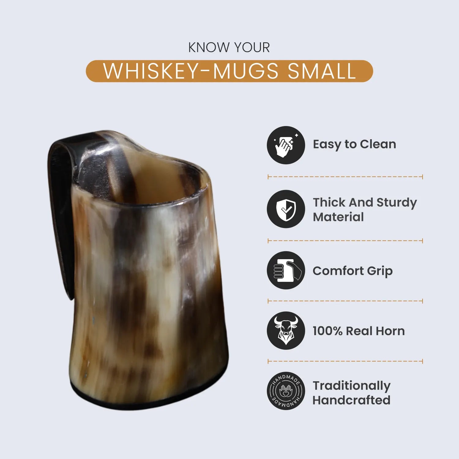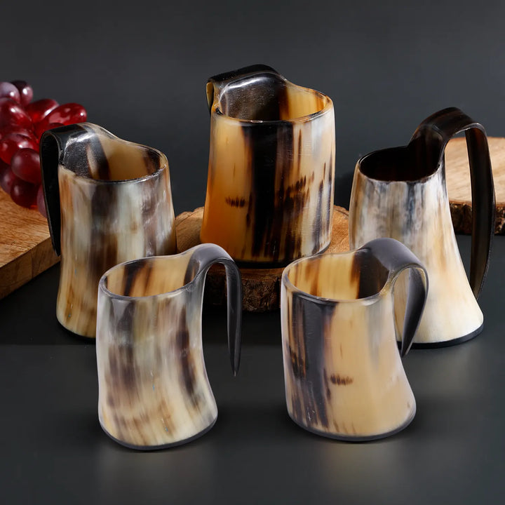 Horn Whiskey Mugs Pack 5 - Holds Upto 6.5 oz, Natural