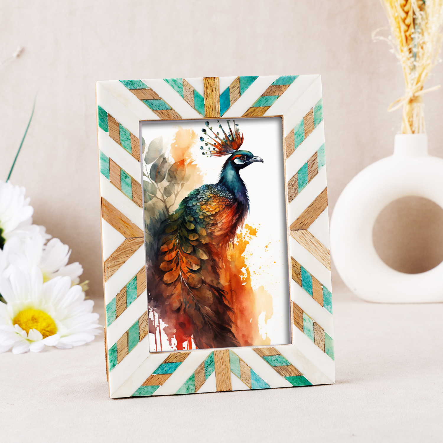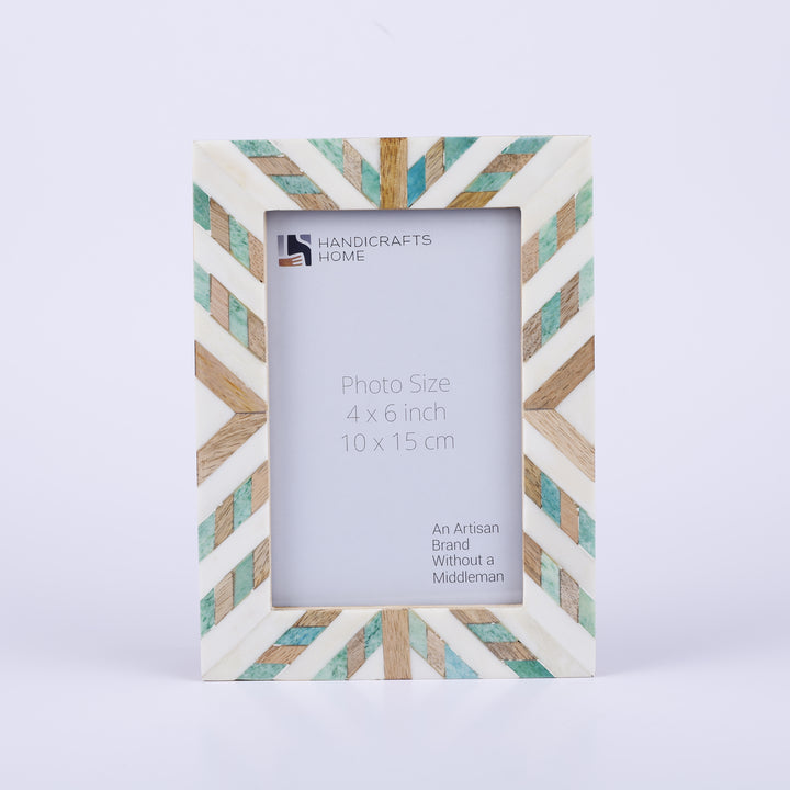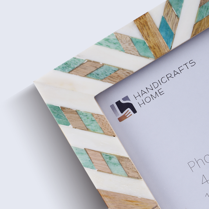 Handcrafted Artisan Quality – Each frame is meticulously handmade by skilled artisans, blending traditional craftsmanship with a fresh green and white design. The intricate bone inlay, natural wood accents, and elegant three-tone finish create a sophisticated decorative piece that elevates any space.