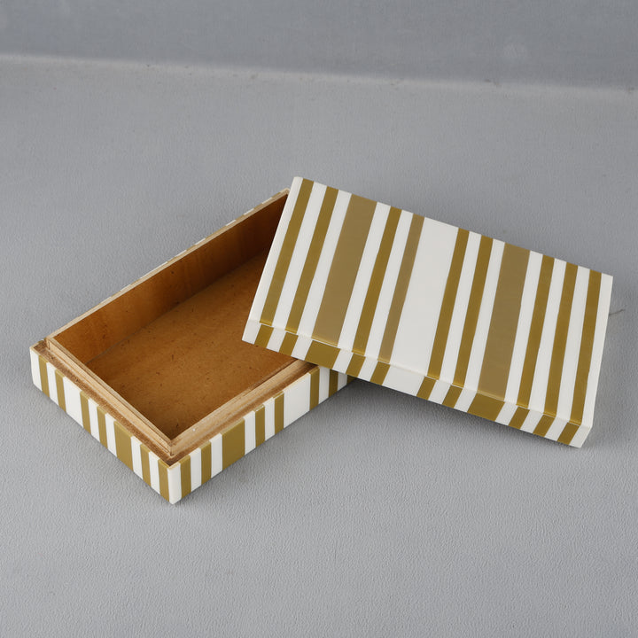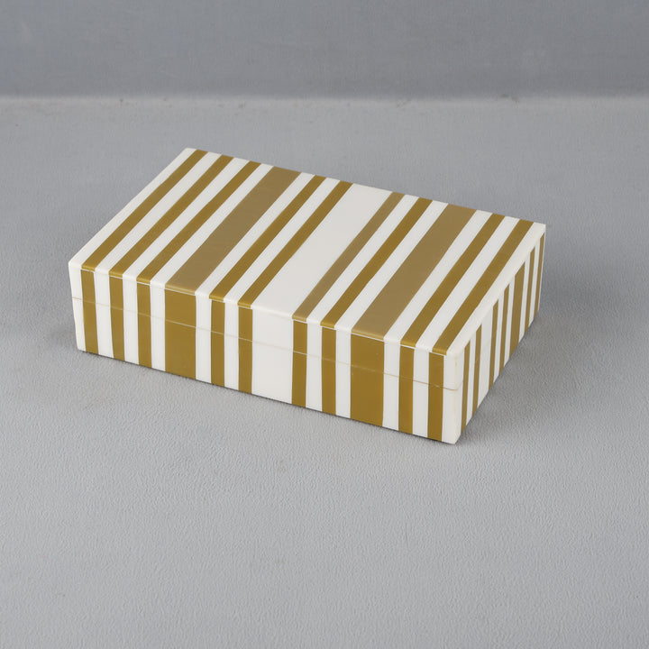 Bring timeless elegance into your home with this beautifully handcrafted decorative storage box from Handicrafts Home. Showcasing a sophisticated Ivory Stripped pattern in chic gold and white, this artisan-made box blends modern, boho, and farmhouse styles effortlessly. Whether you use it for storing jewelry, keepsakes, or small treasures, it offers a perfect balance of functionality and style. Ideal as a thoughtful gift or a stylish accent to elevate any room.