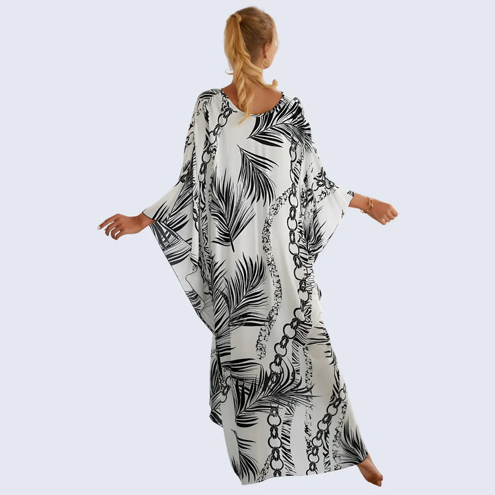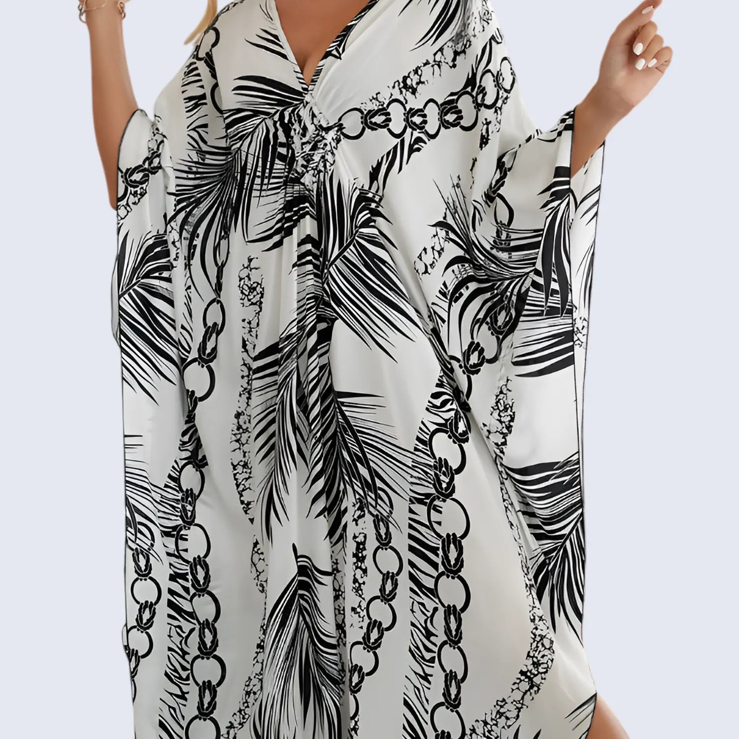 Kaftan Summer Dresses, Braided V-Neck - White Palm, S-3XL
