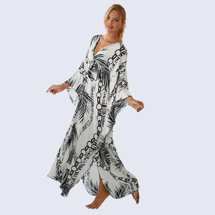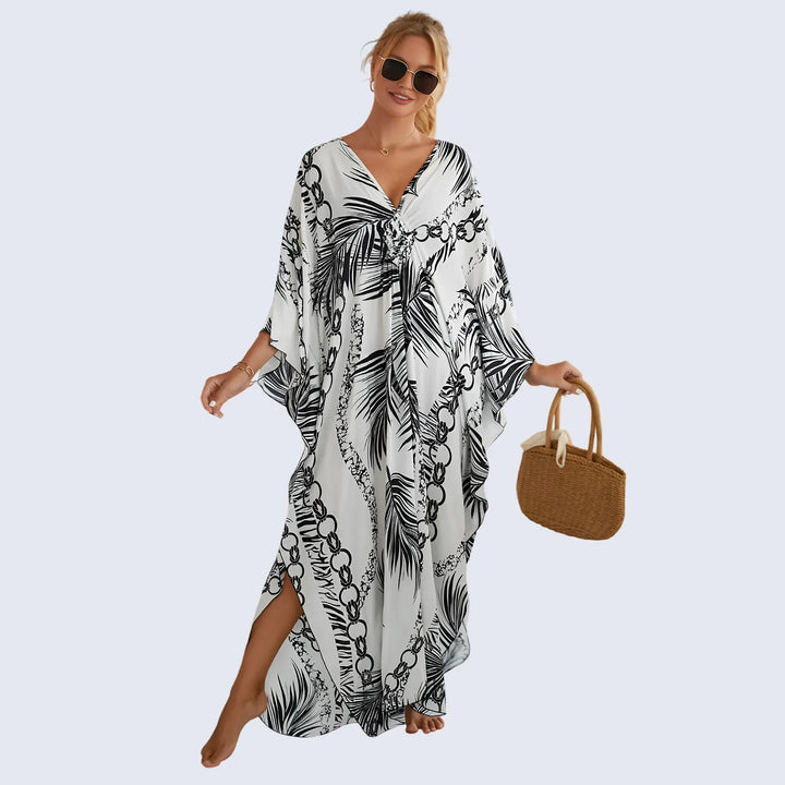 Kaftan Summer Dresses, Tassel Strings Waist,Abstract, One Size