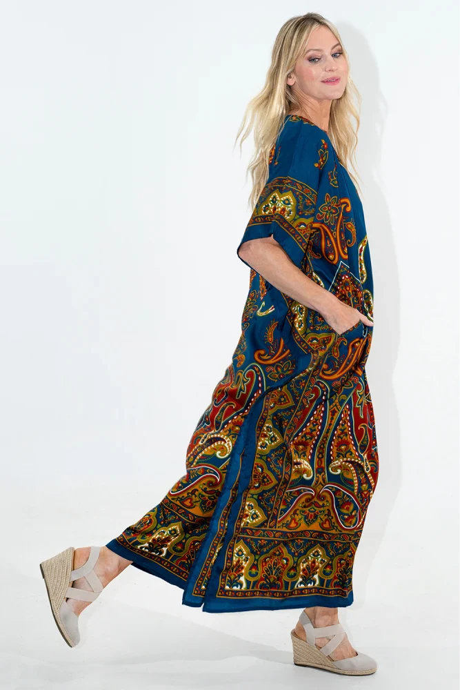 Hawaiian Coverups for Women in Vibrant Colors – Choose from a variety of bright and bold hues to complement your style. From a variety of colors including classic Black, Navy Blue, Purple and Teal, Making our Kaftans the perfect statement piece of an occasion. These sundresses for women double as long beach coverups, perfect for sunny escapes.