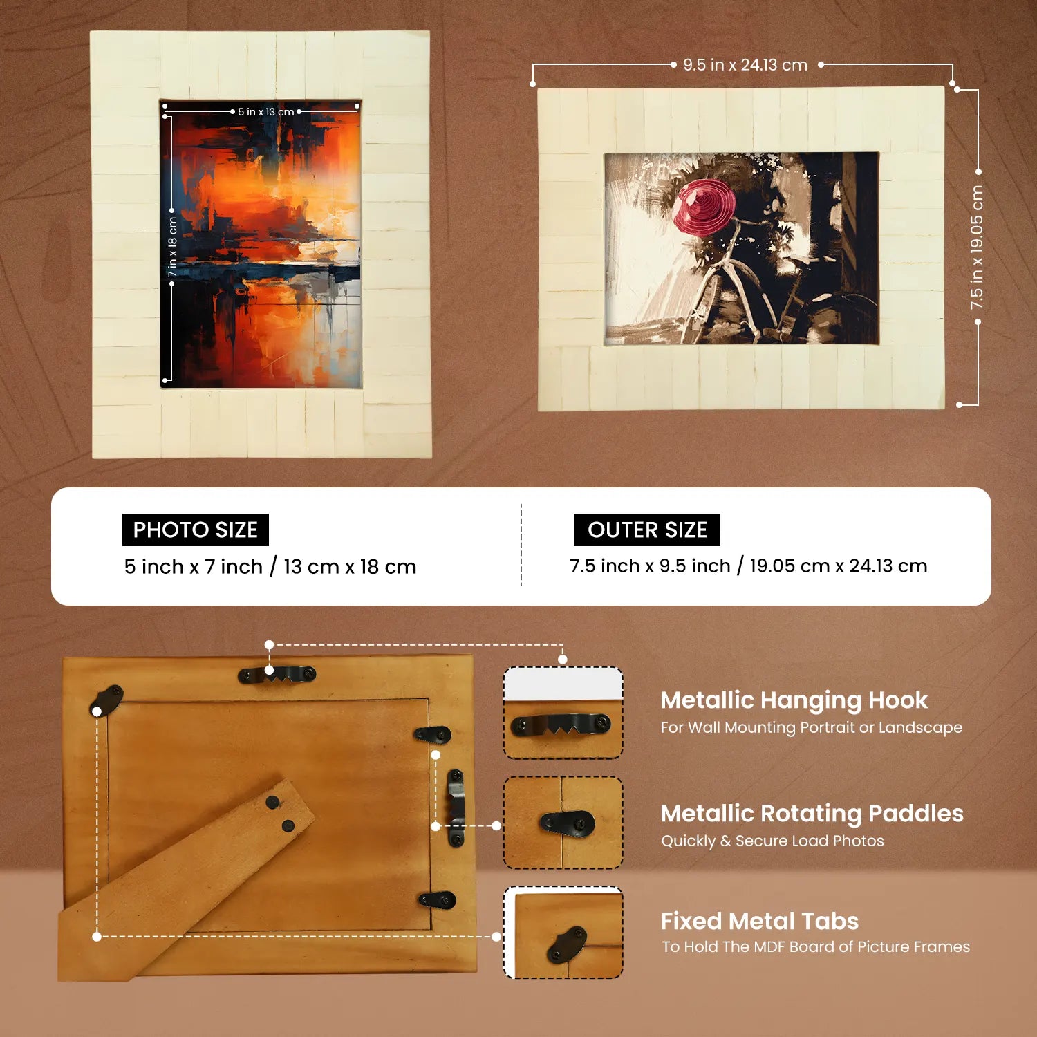 Picture Frames Classic Pattern Bone Inlay Collection in 2 Sizes, Make to Order, White