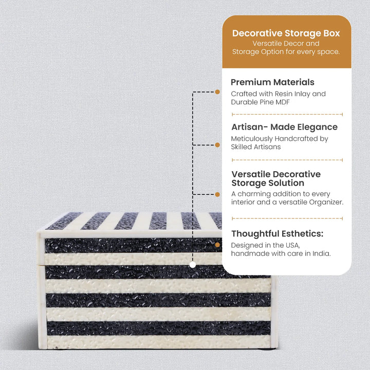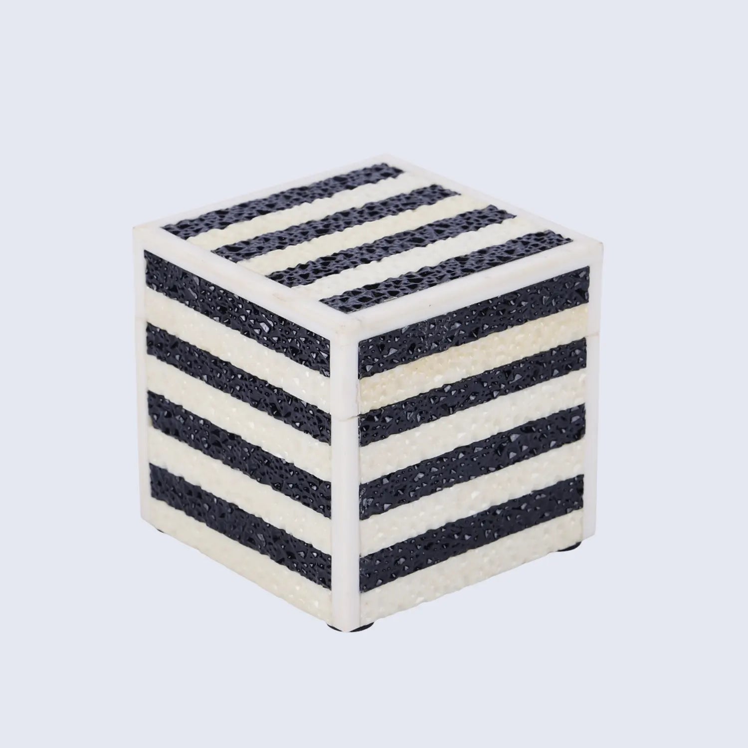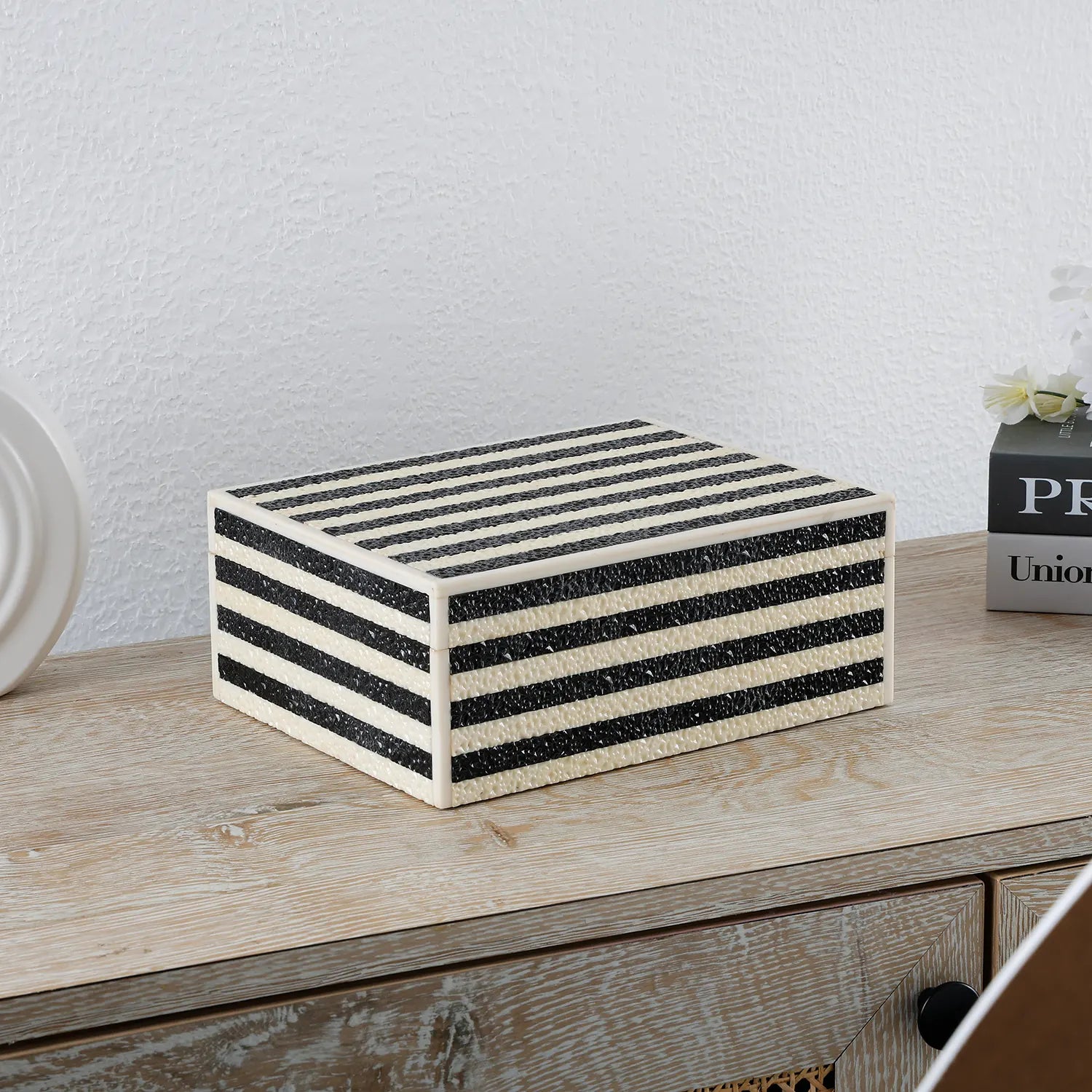 Monochrome Striped Decorative Box – Keepsake Organizer, 4 Sizes