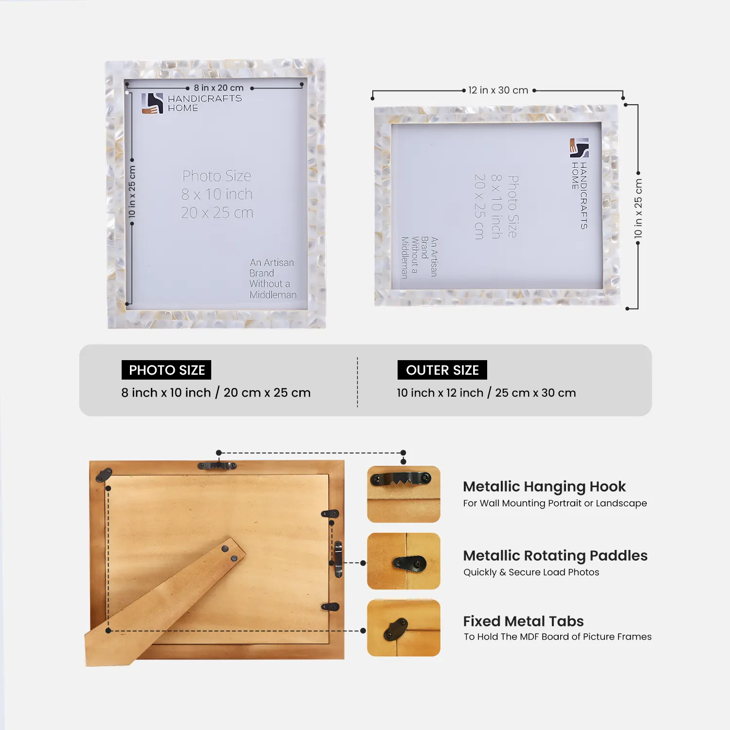 Picture Frames Mother of Pearl Collection in 27 Sizes, White