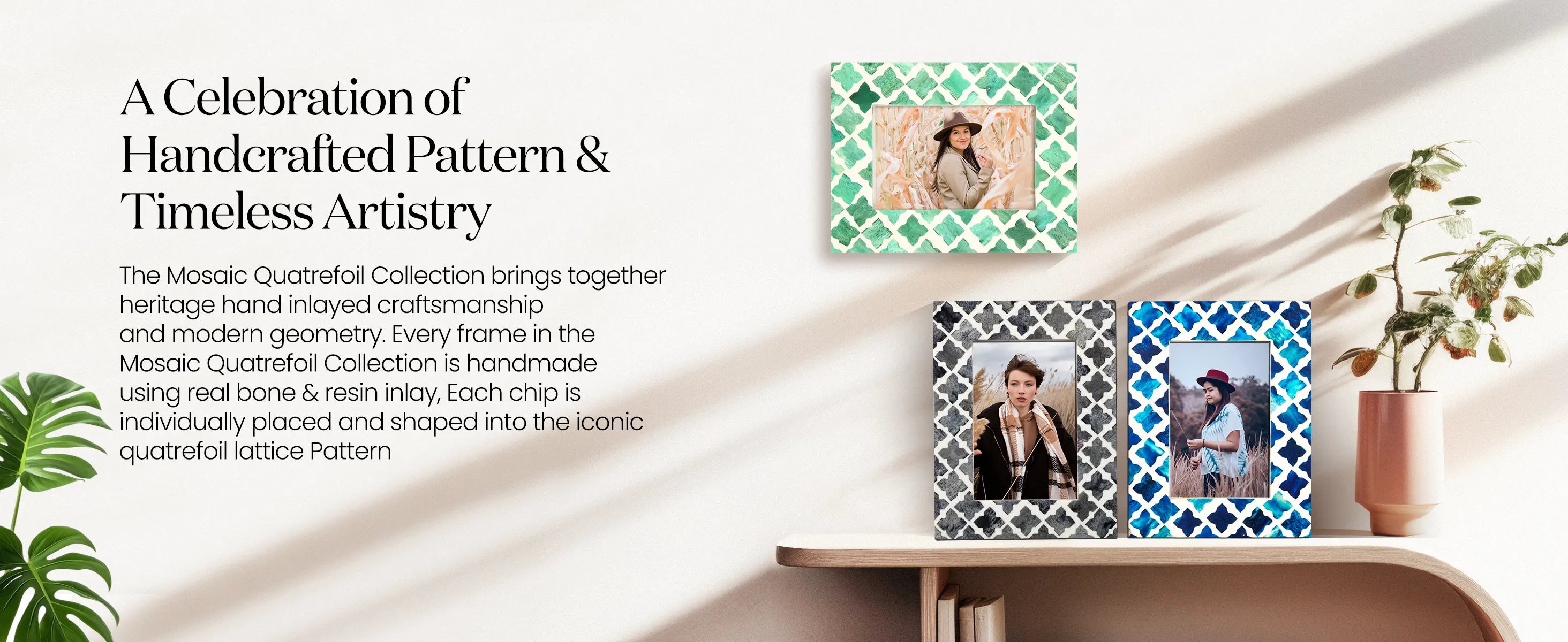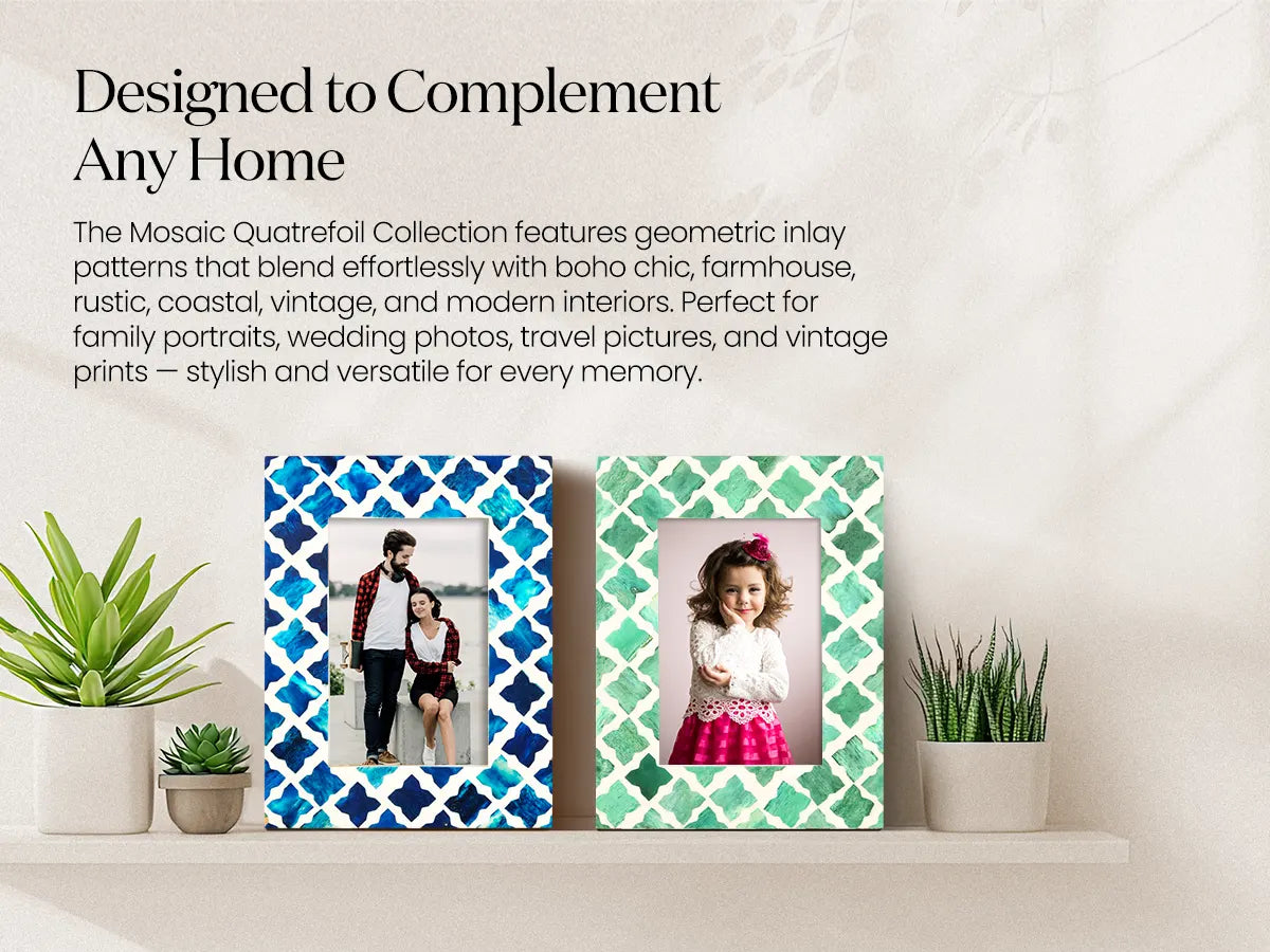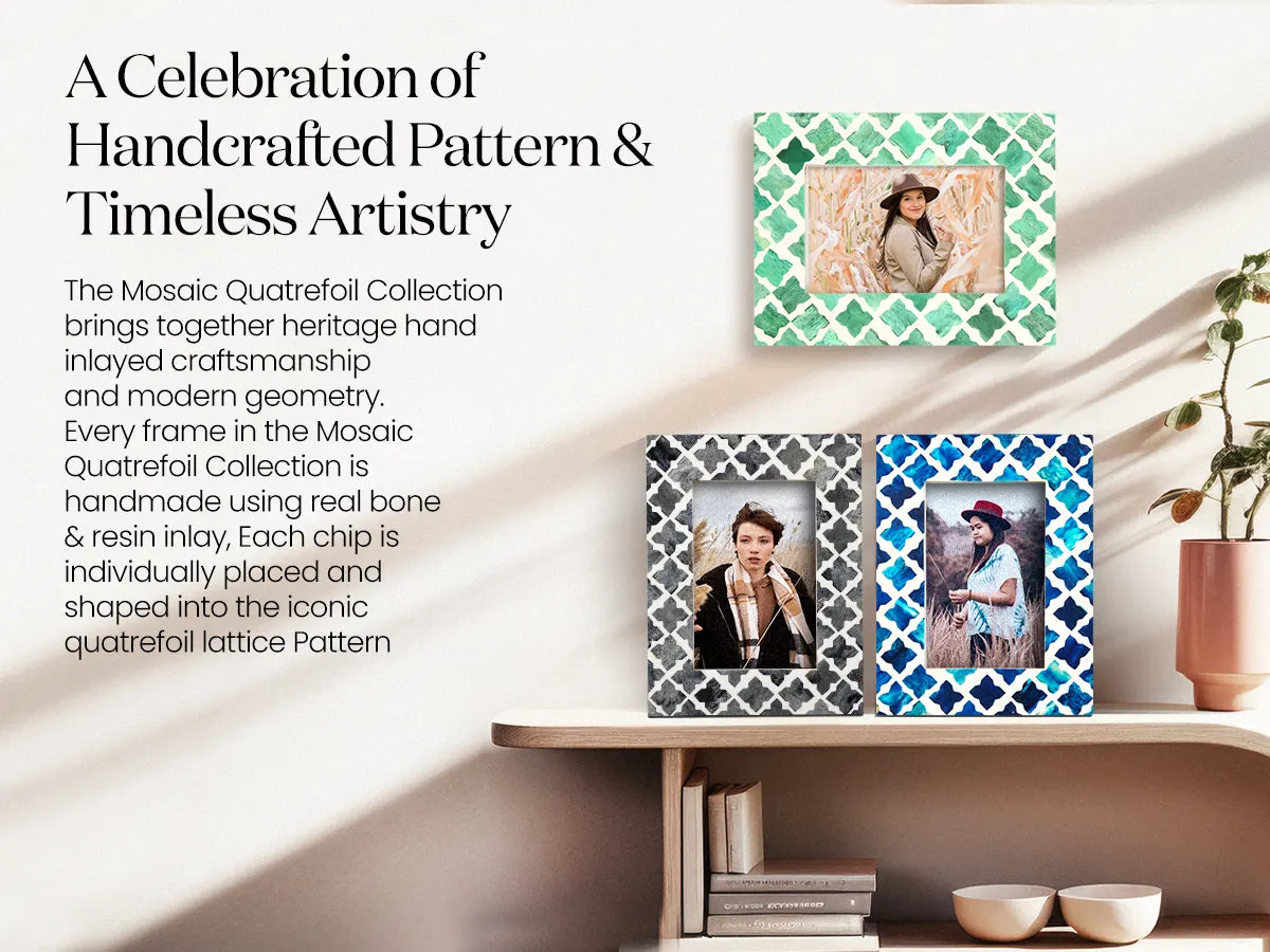 Picture Frame Mosaic Quatrefoil Collection Bone & Resin Inlay in 3 Colors