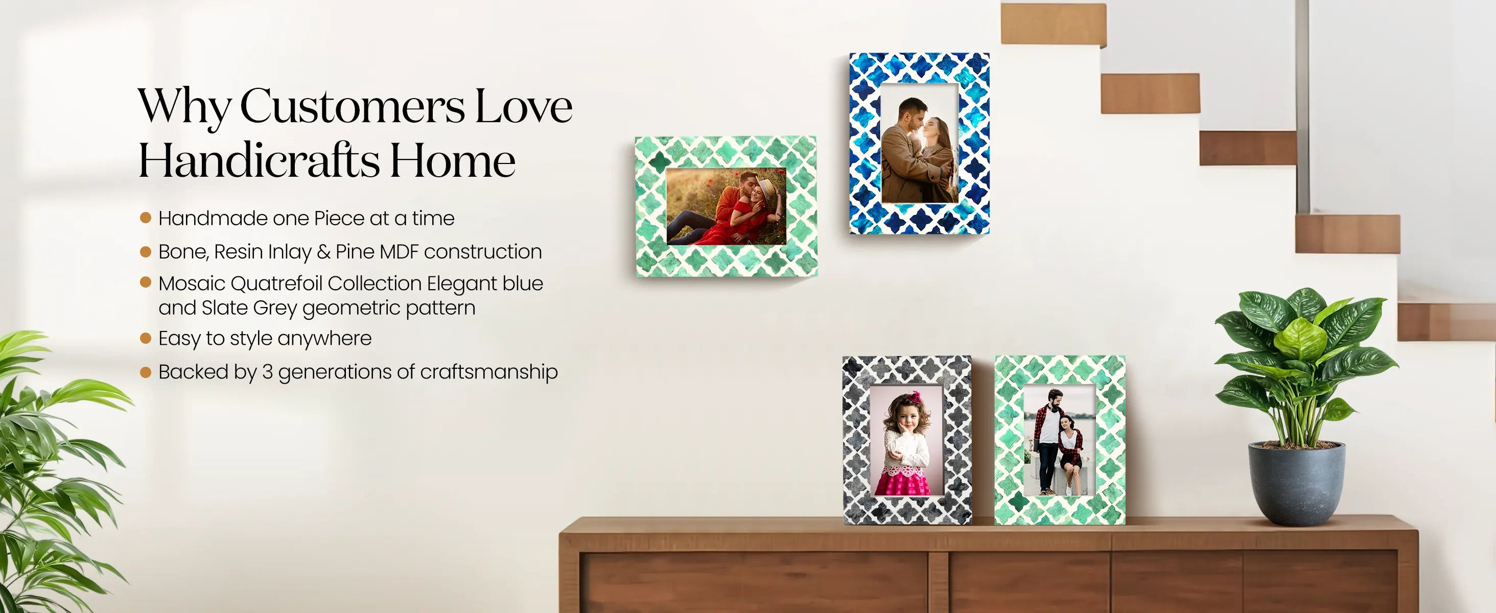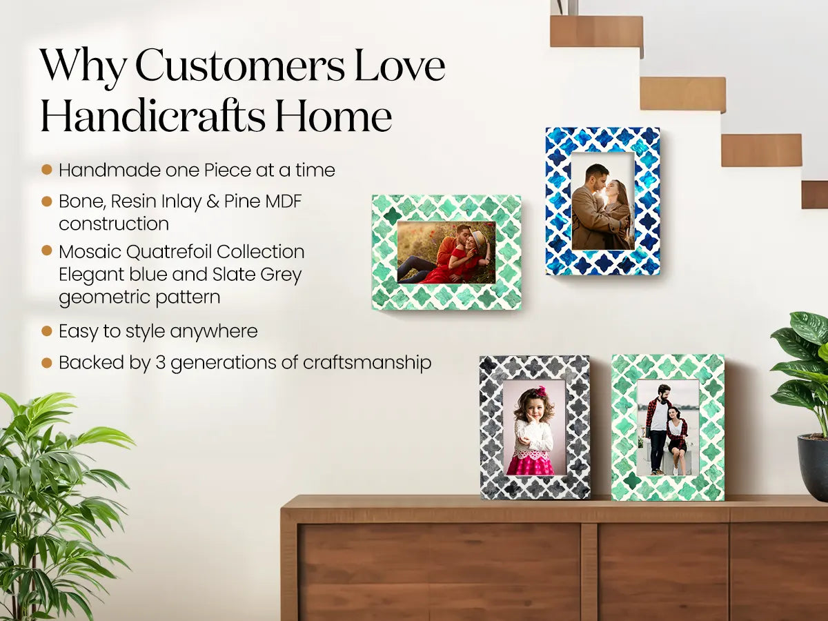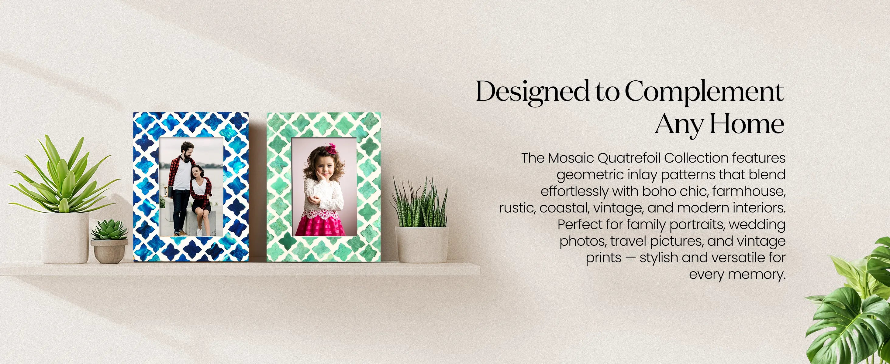 Picture Frame Mosaic Quatrefoil Collection Bone & Resin Inlay in 3 Colors