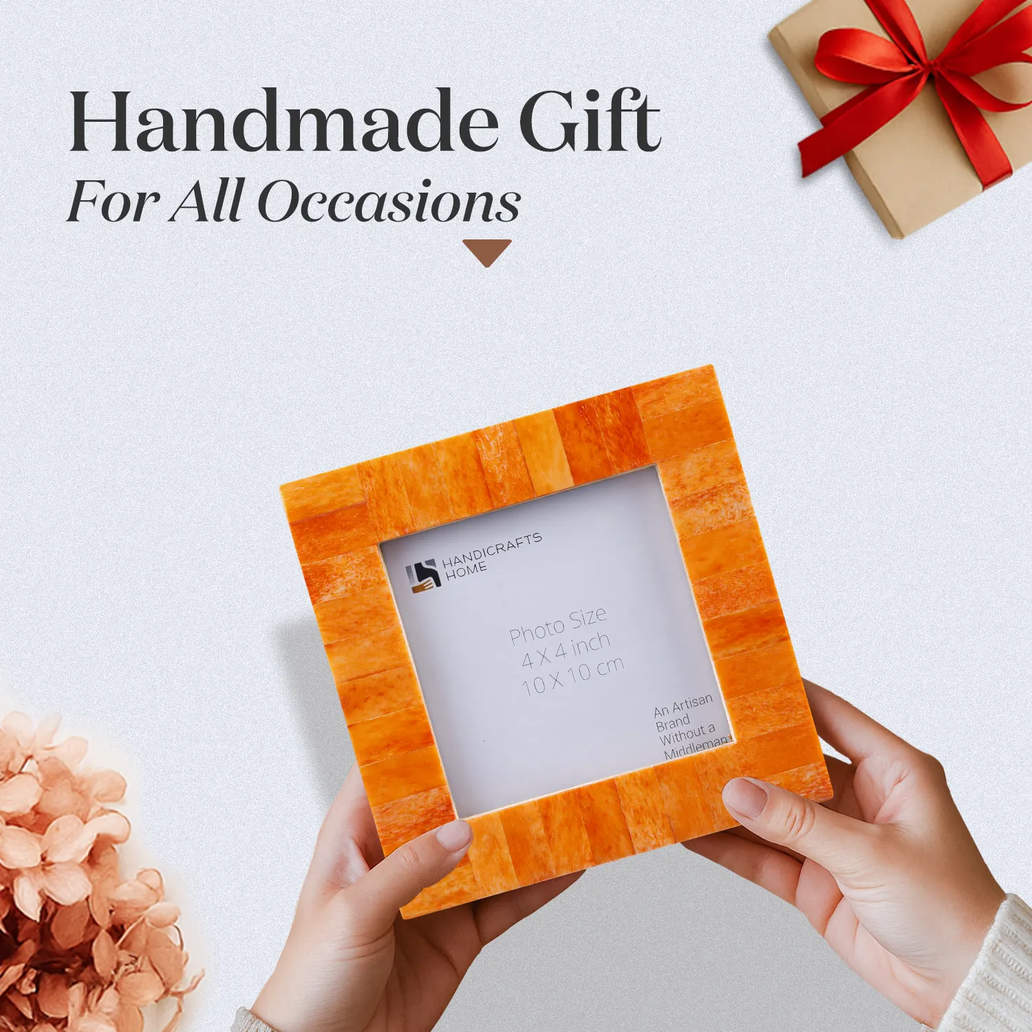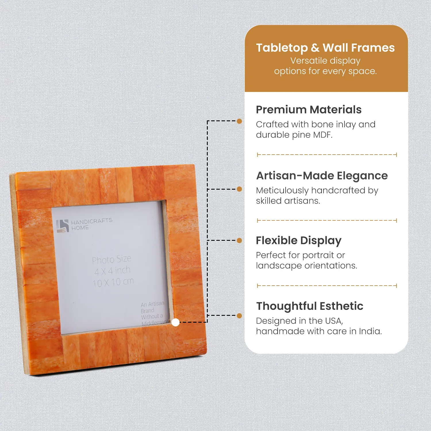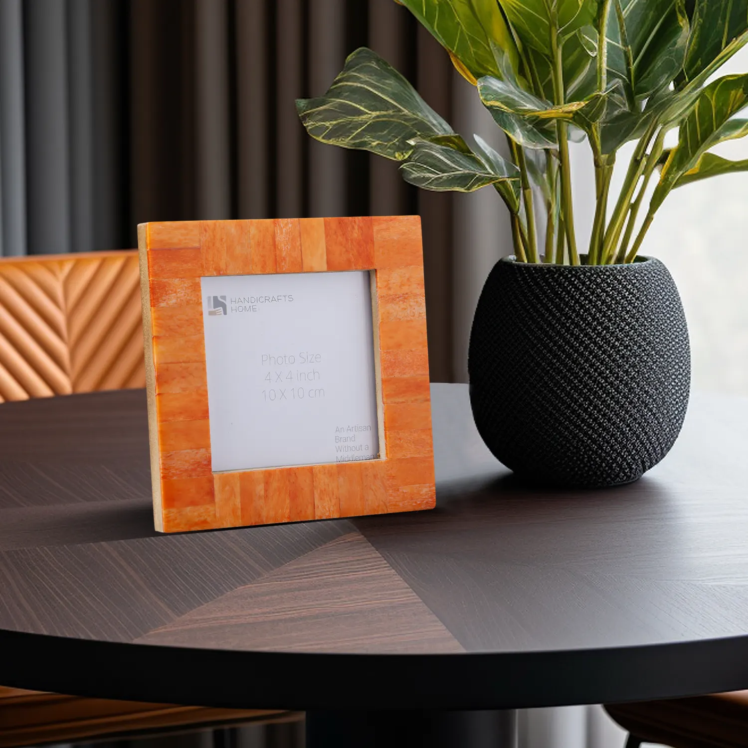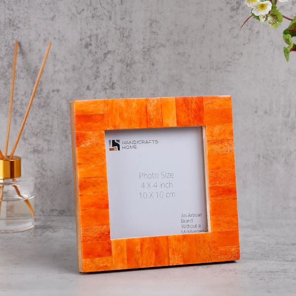 Square Baby Picture Frames Classic Pattern Bone Inlay 4x4 Inch Display Size, Orange