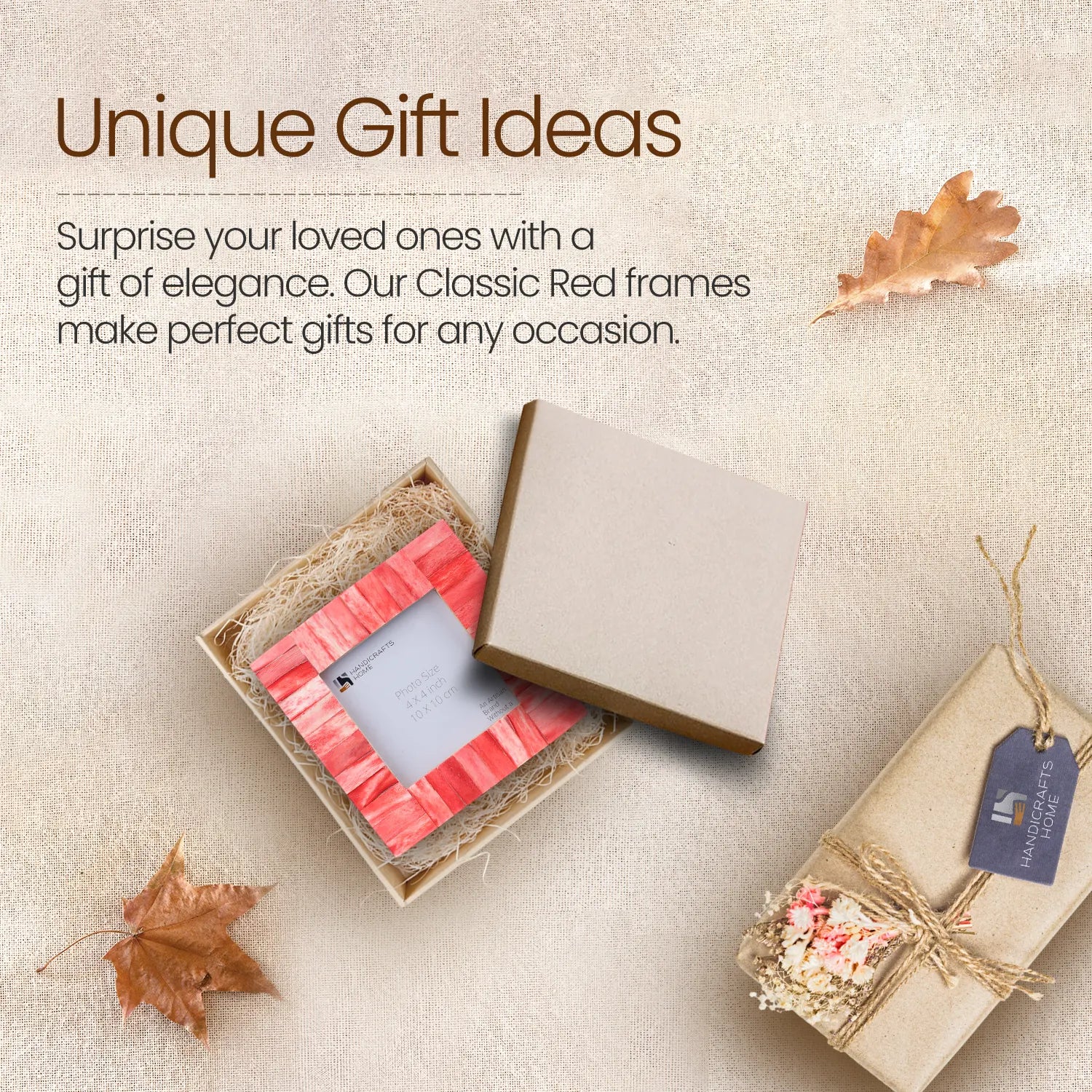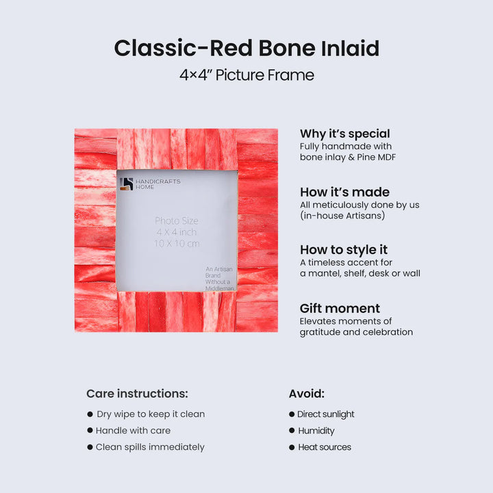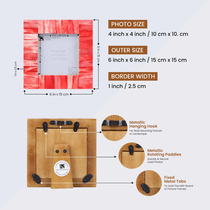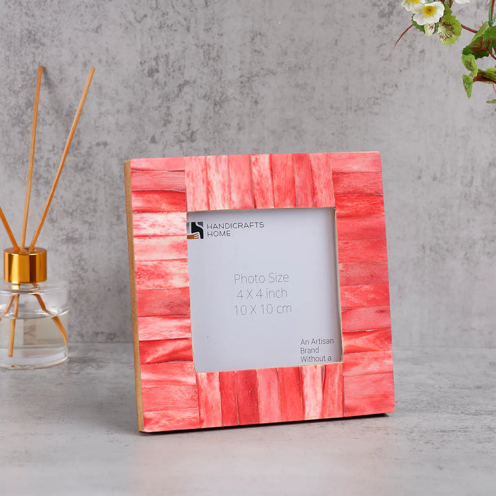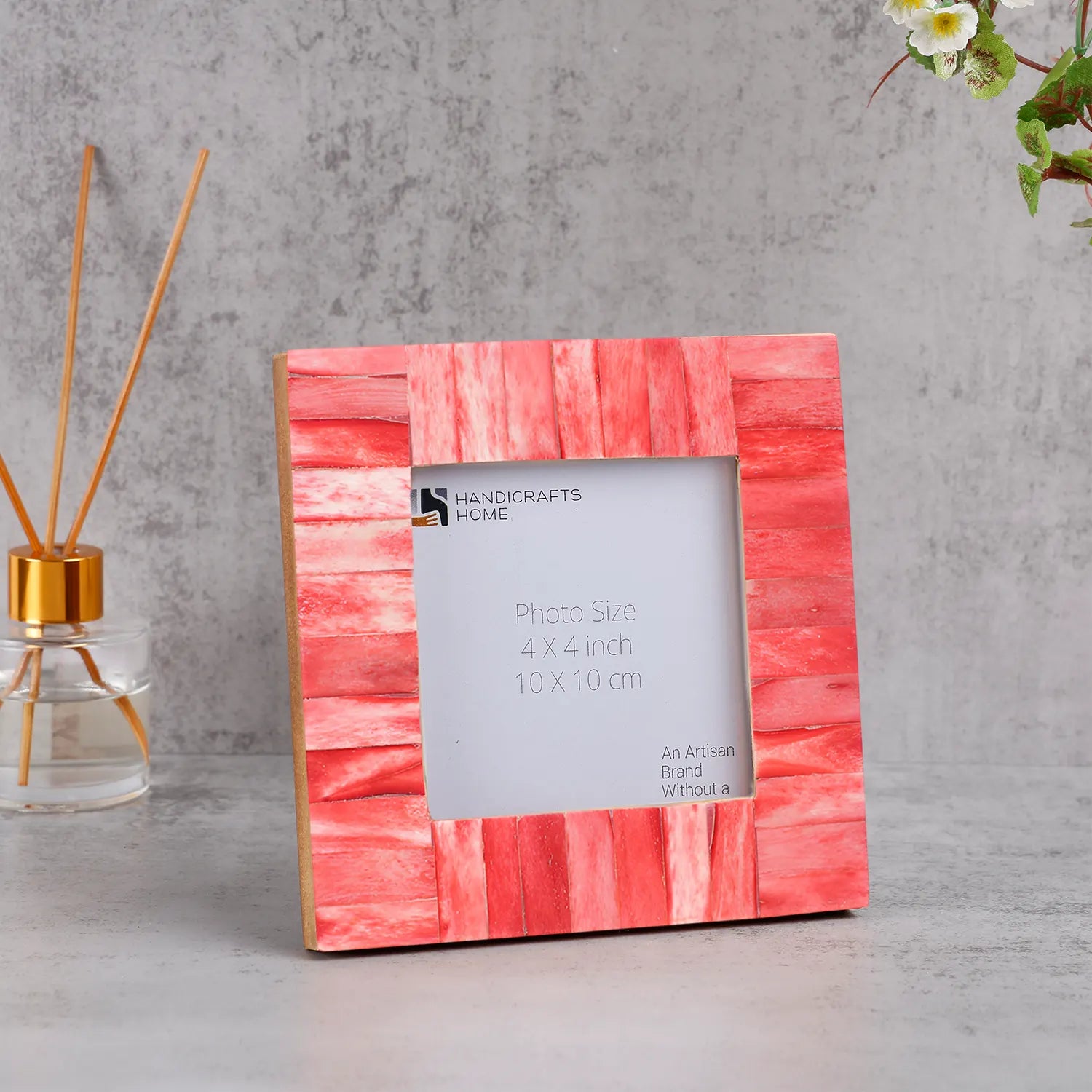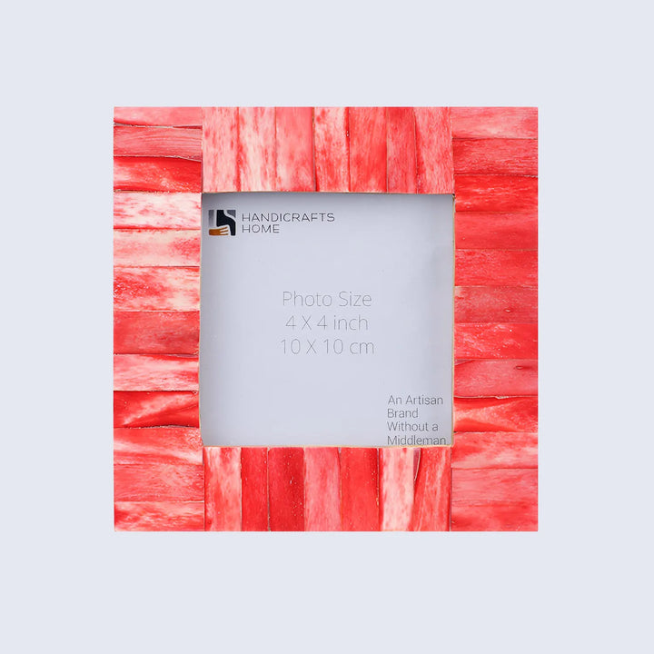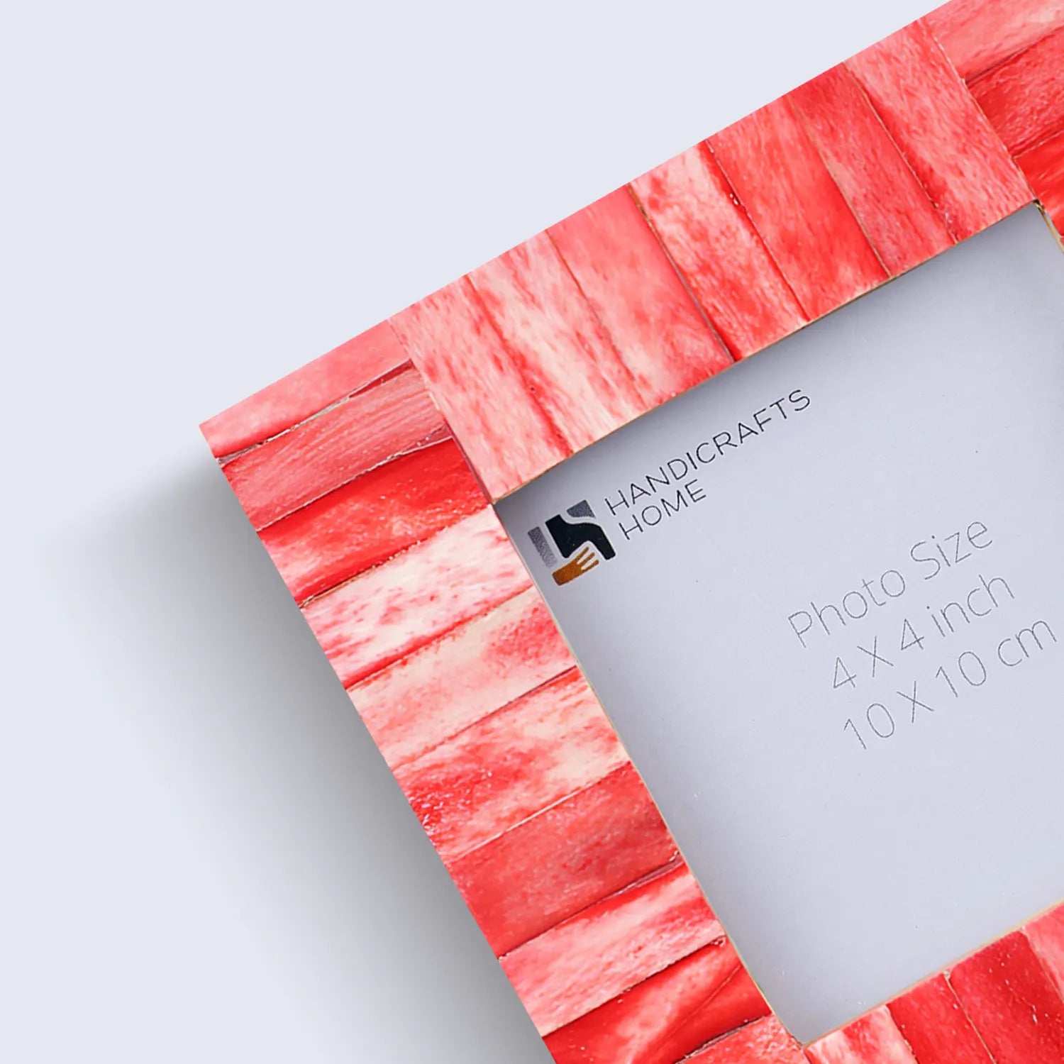 Square Baby Picture Frames Classic Pattern Bone Inlay 4x4 inch, Red