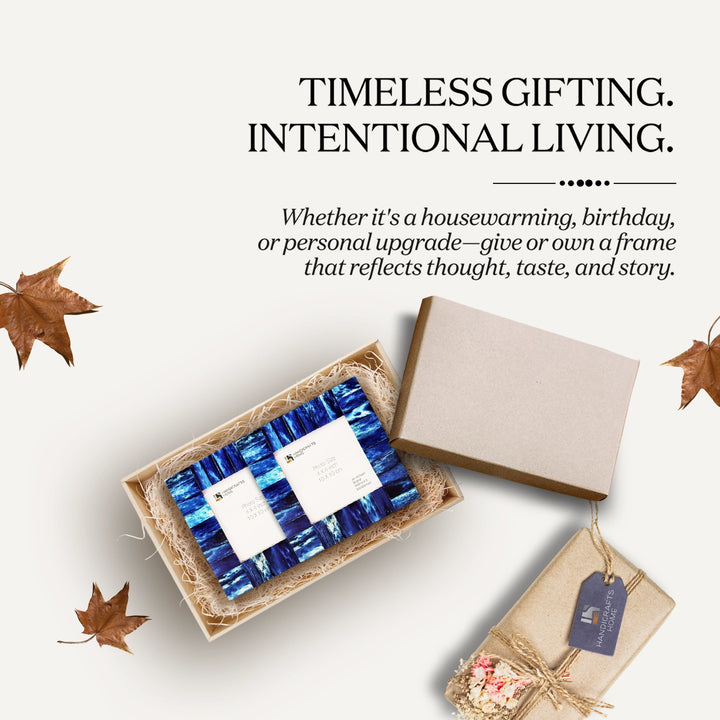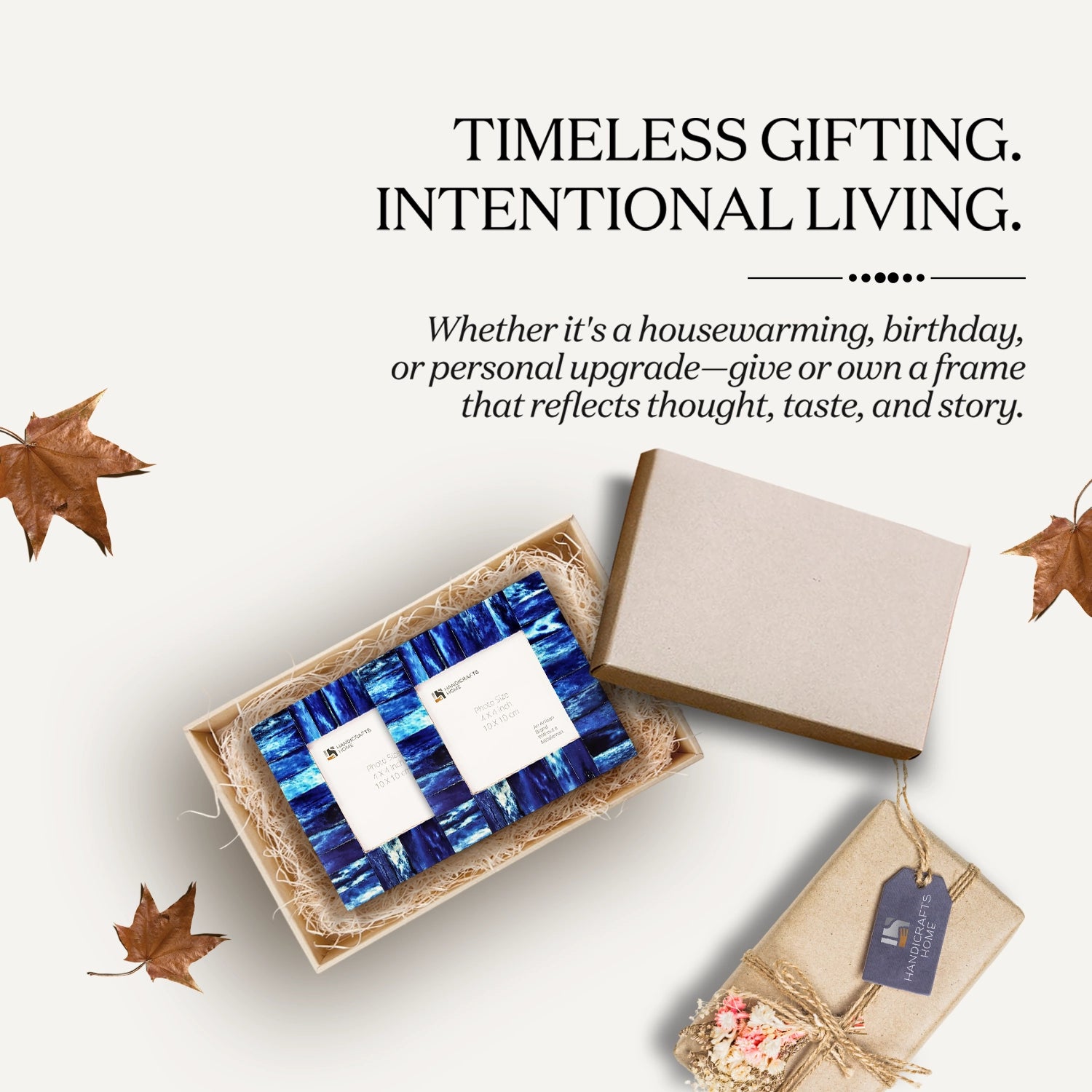 Picture Frames Classic Pattern Bone Inlay Combo 4"x4", Blue