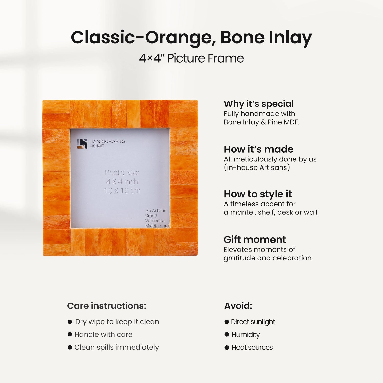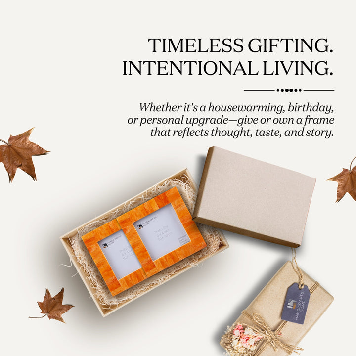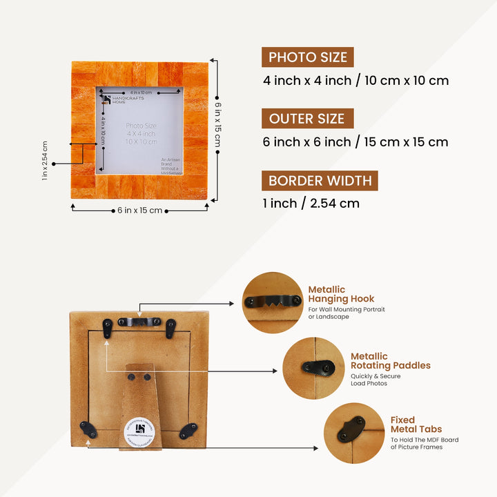 Picture Frames Classic Pattern Bone Inlay Combo 4"x4", Orange