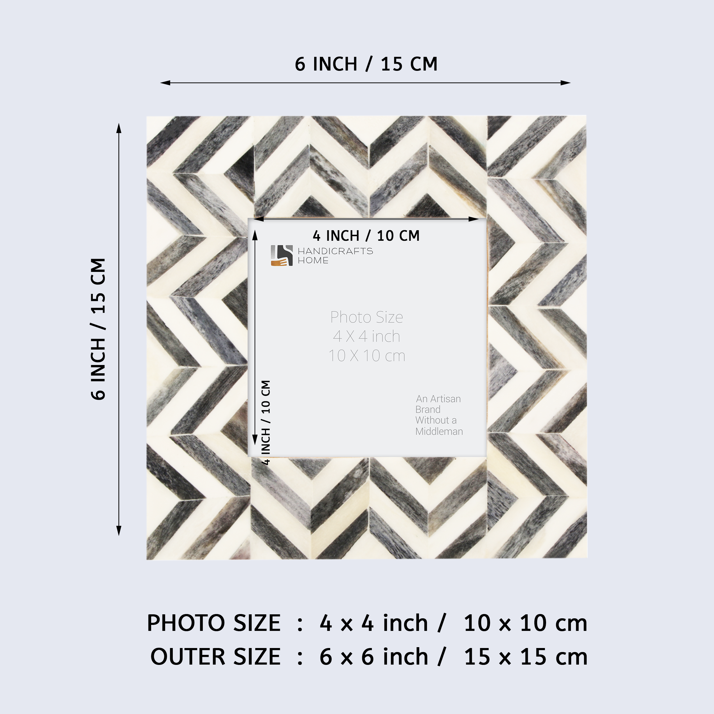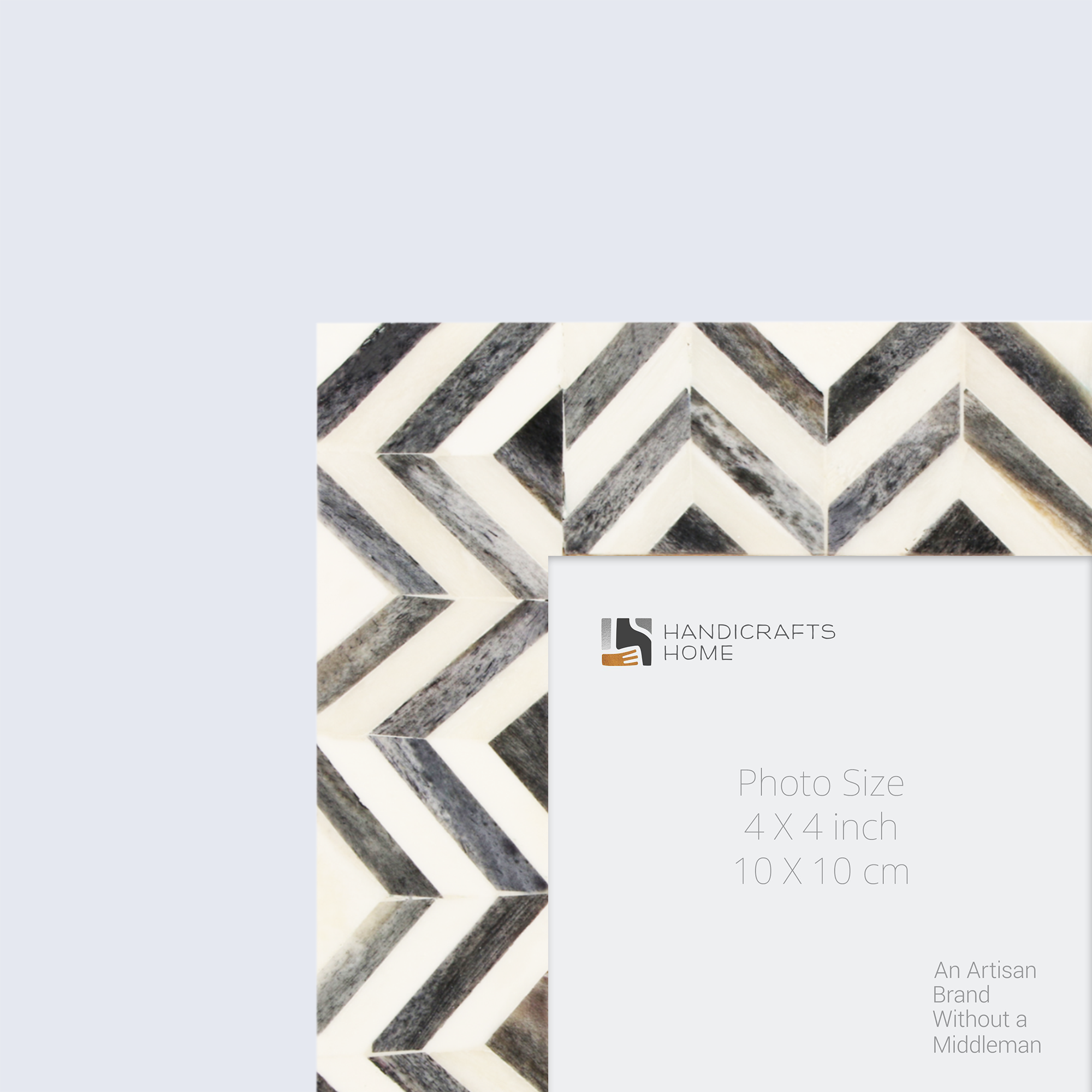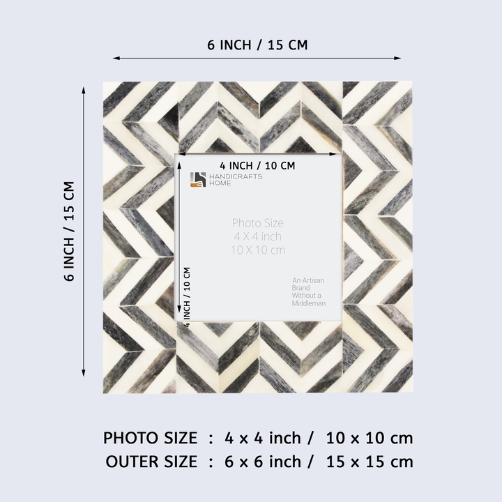 Baby Picture Frames Herringbone Pattern Collection Bone Inlay - Grey, 4" x 4"