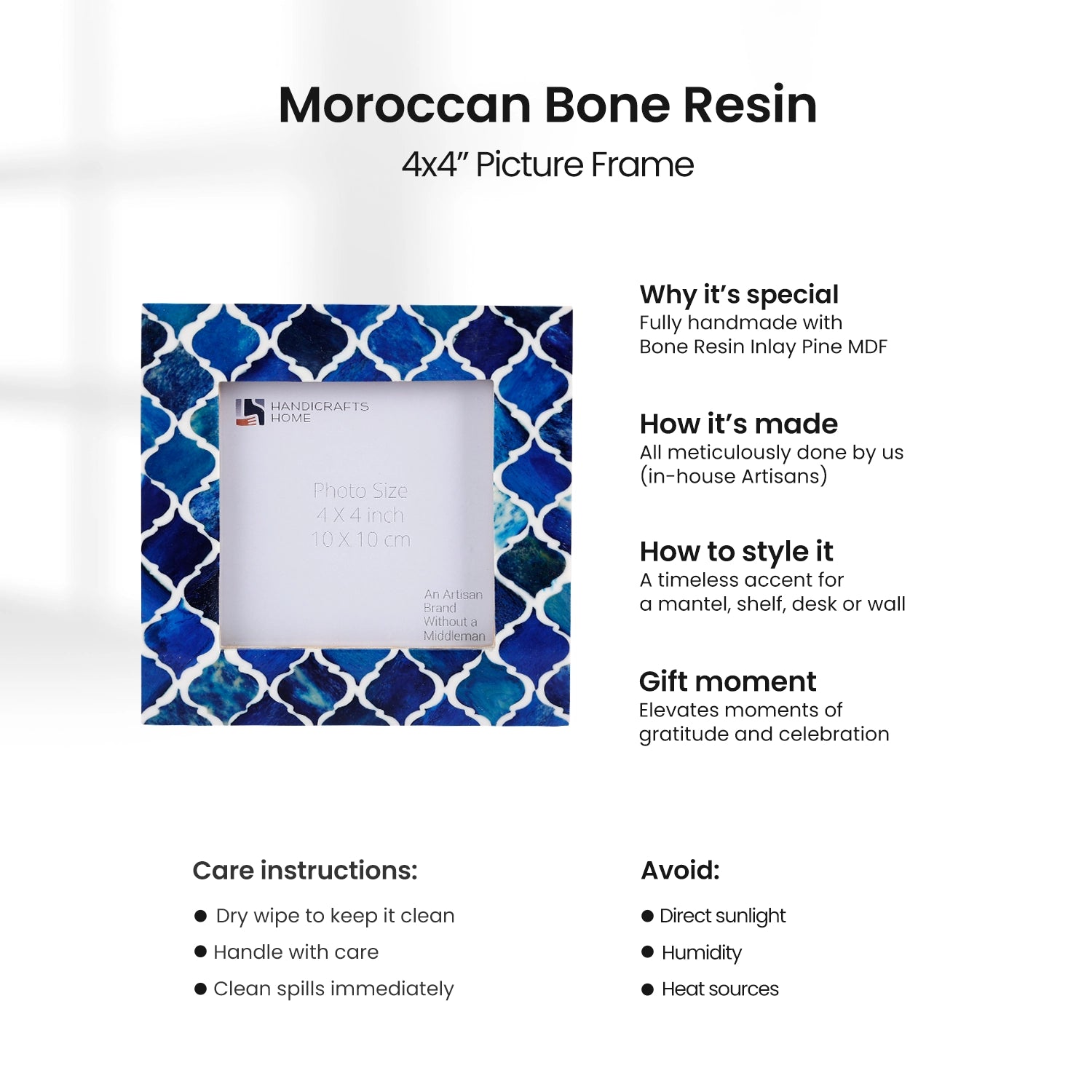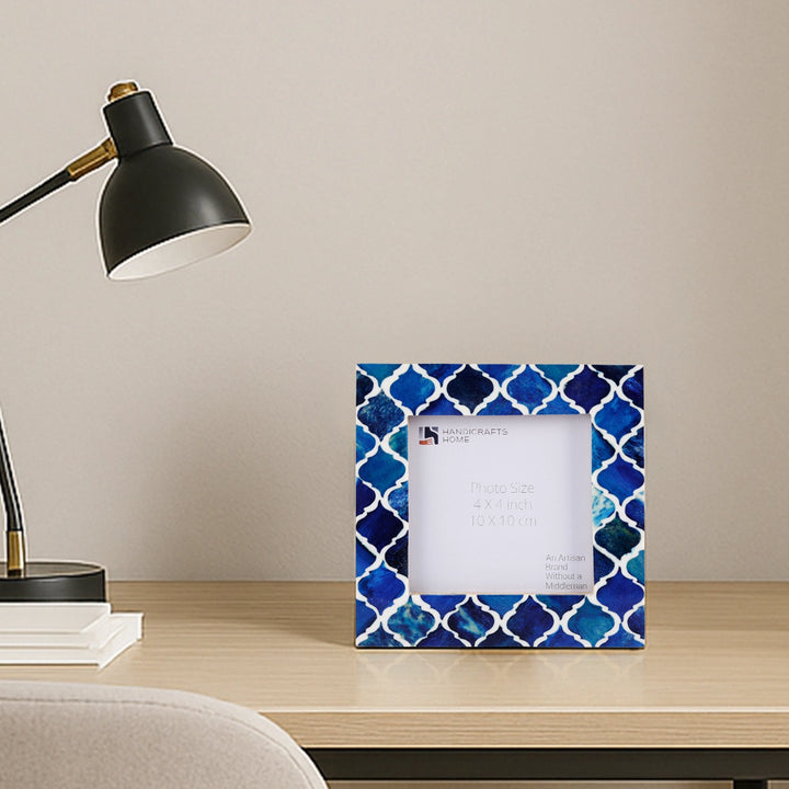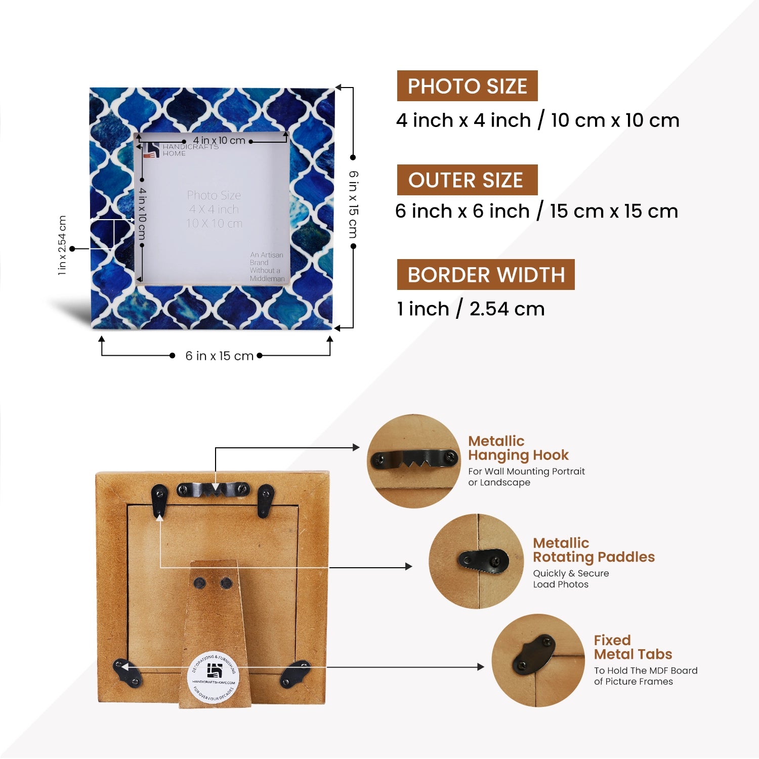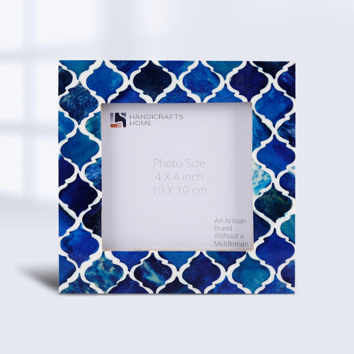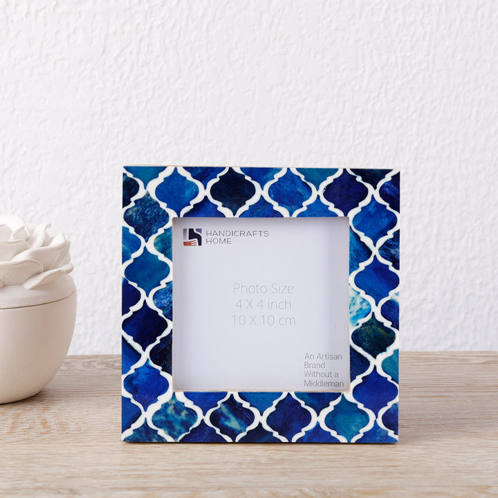 Square Baby Picture Frames Moroccan Pattern Bone & Resin Inlay4x4 Inch, Blue