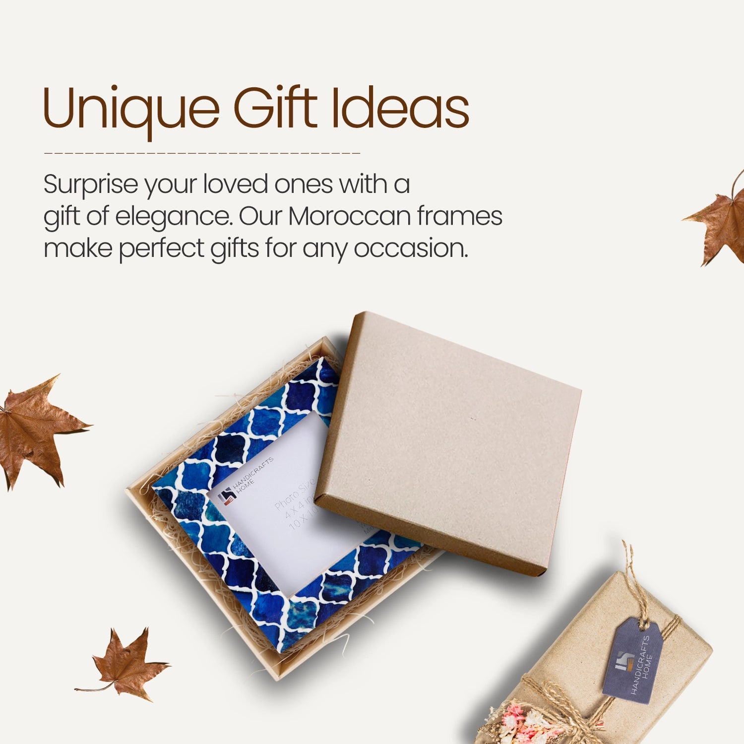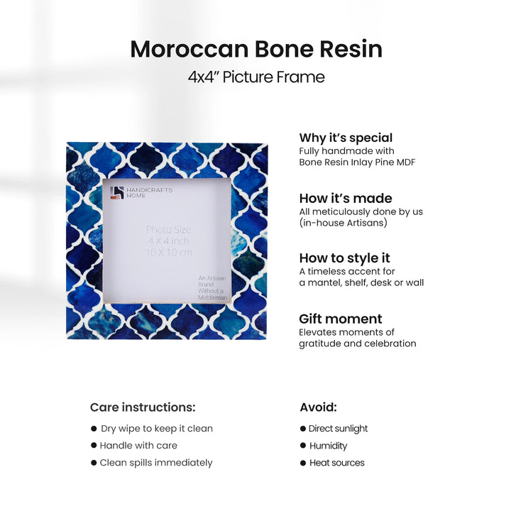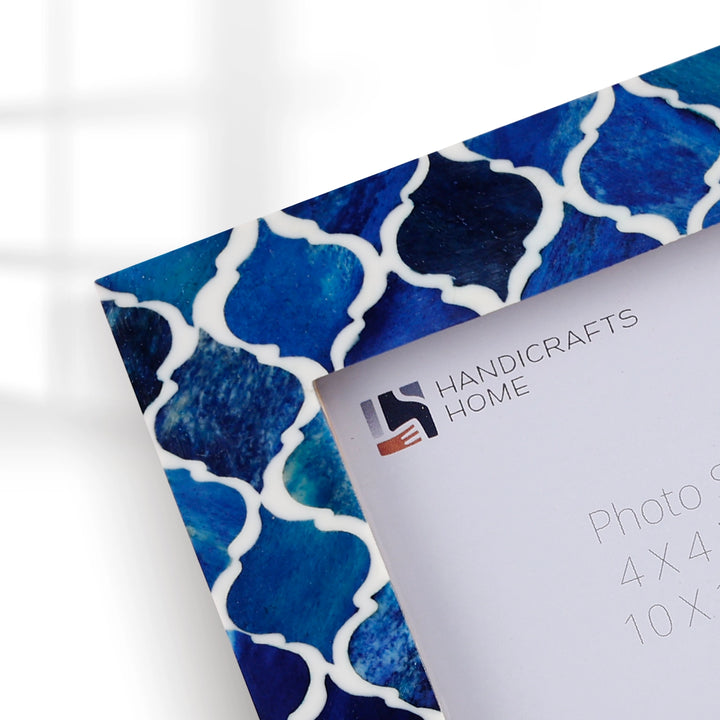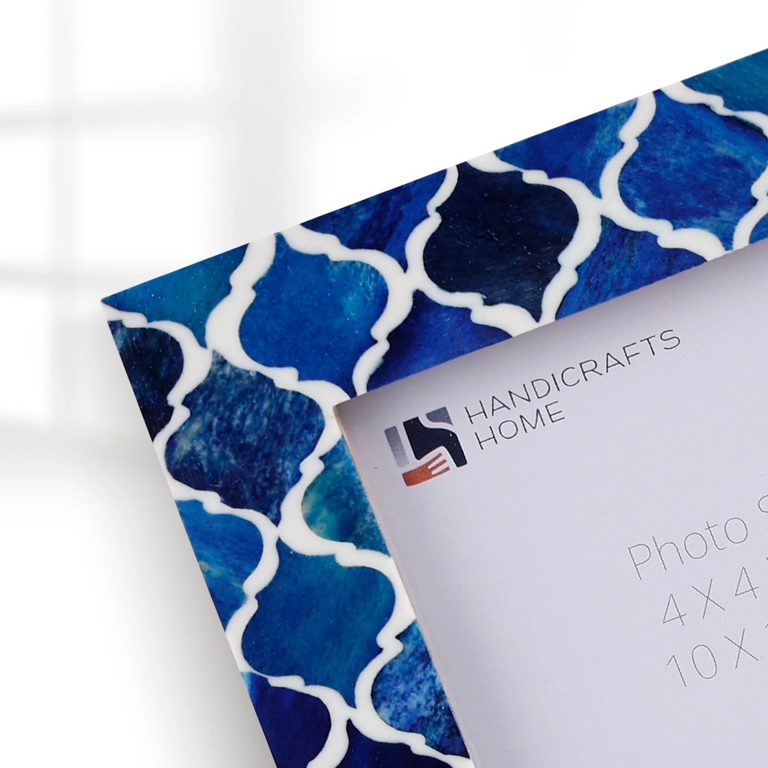 Square Baby Picture Frames Moroccan Pattern Bone & Resin Inlay4x4 Inch, Blue