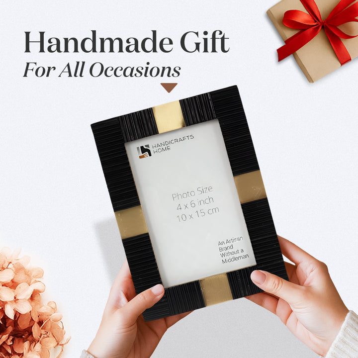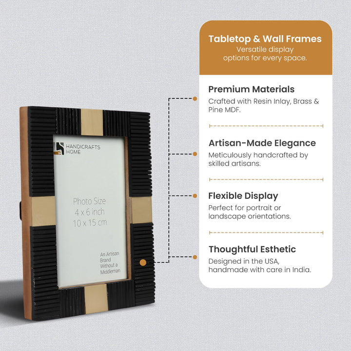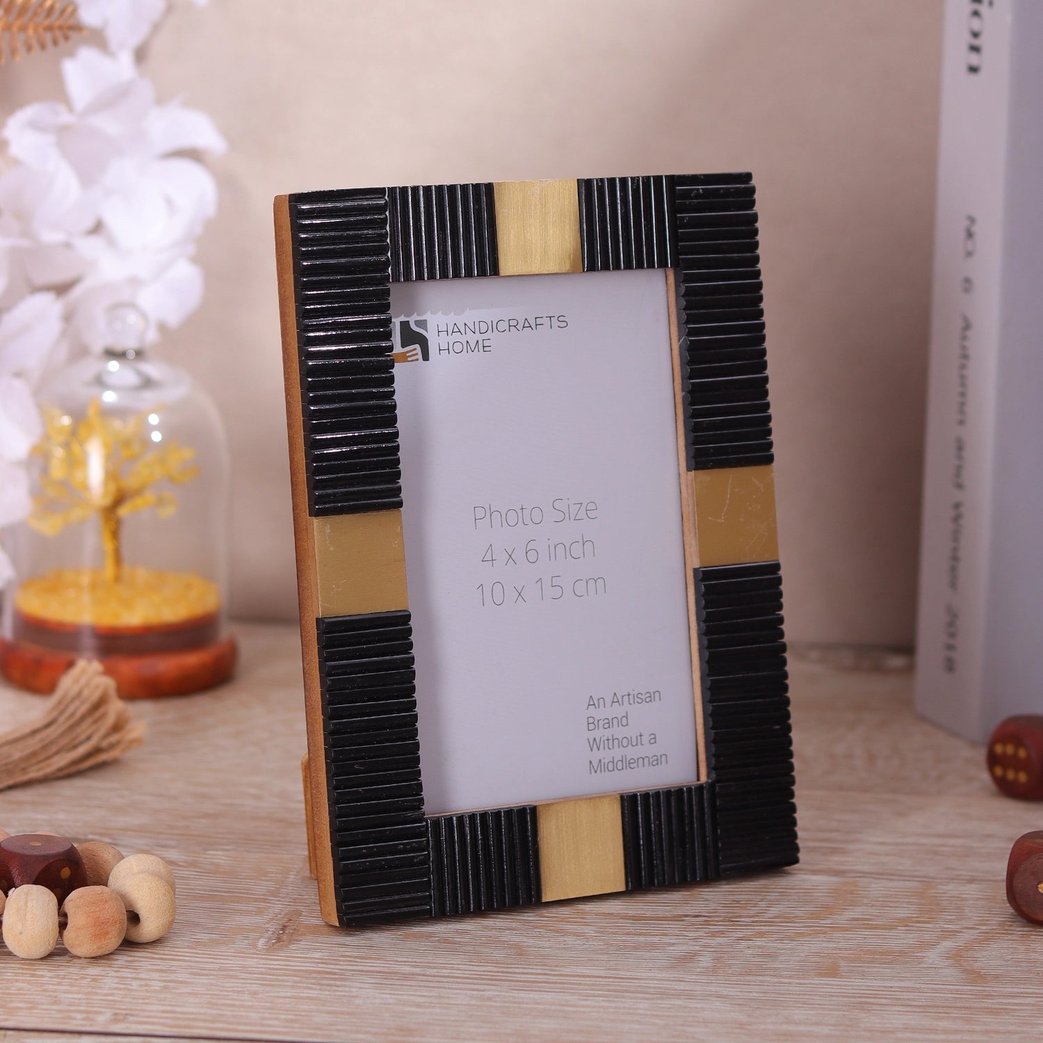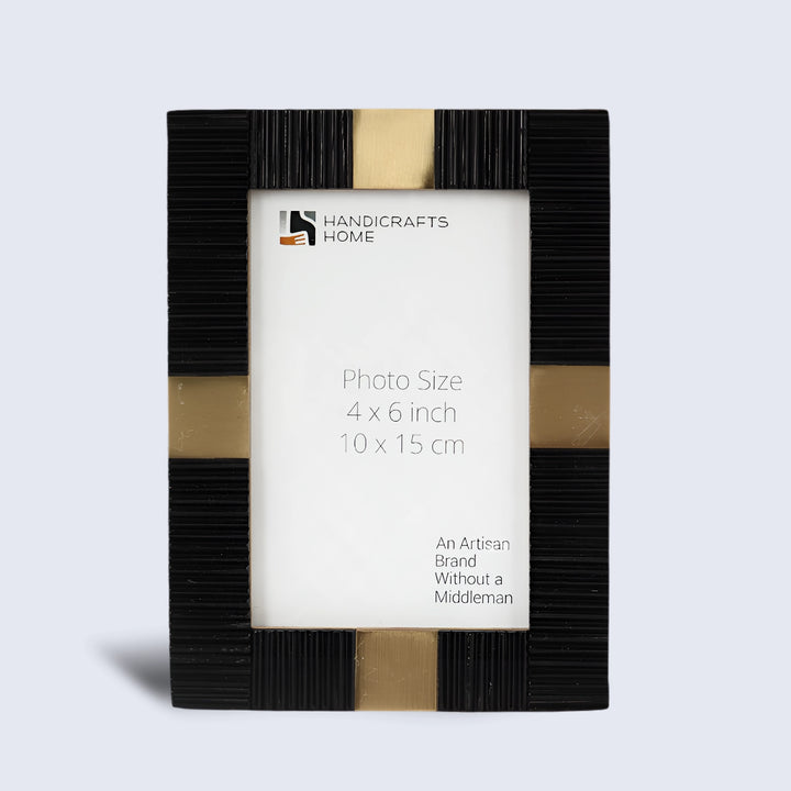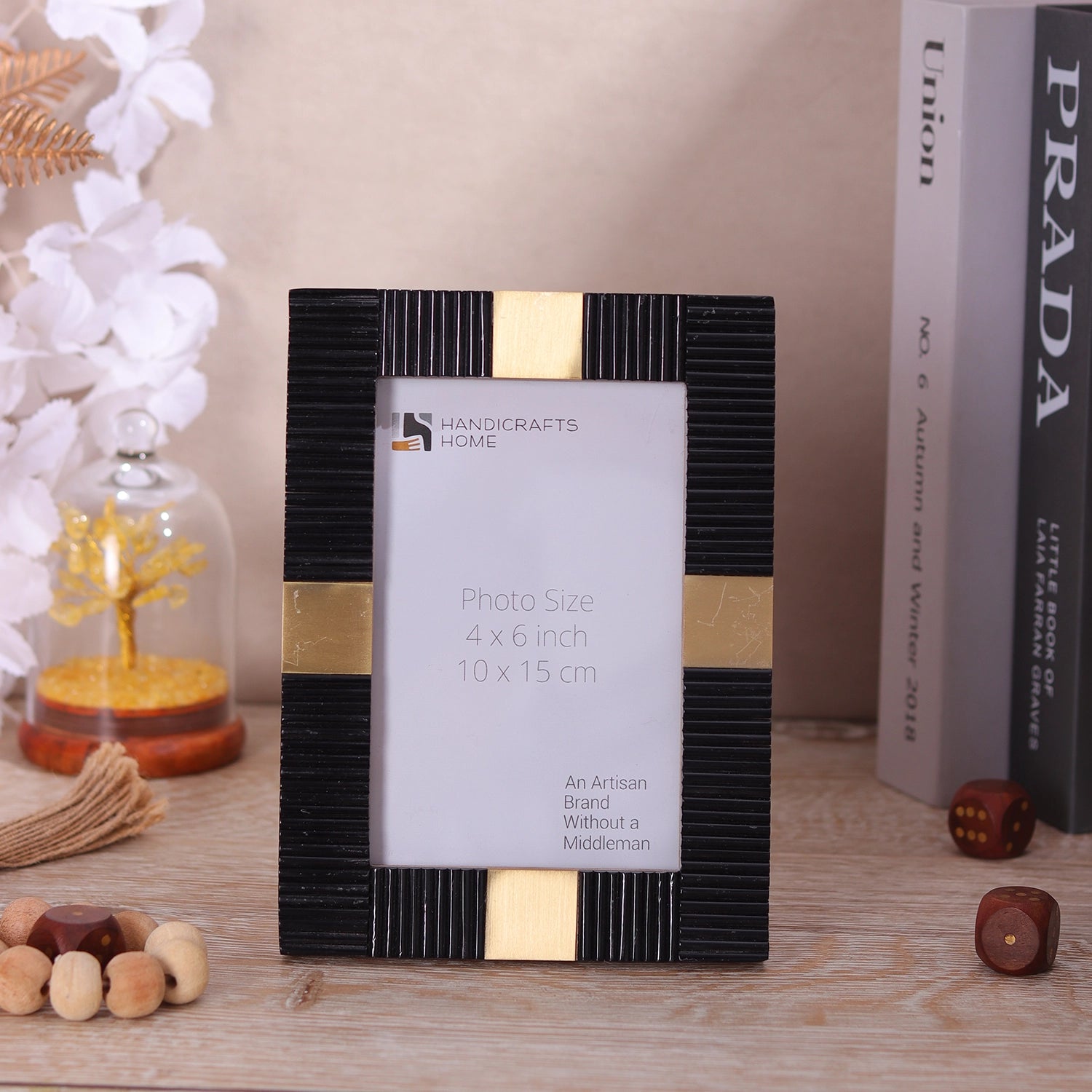 Resin Inlay Deco Black & Gold Picture Frame For Desk & Wall-3 Sizes