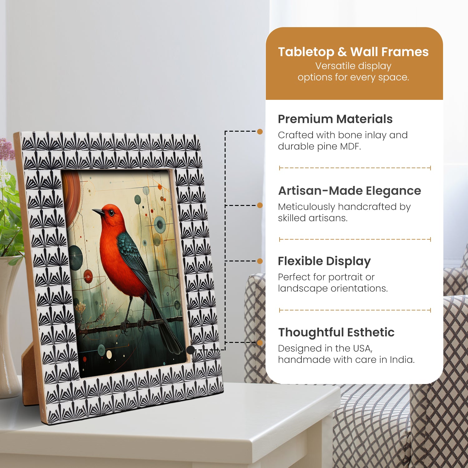 Resin Inlay Handmade Palm Crest Pattern Black & White - 4x6, 5x7