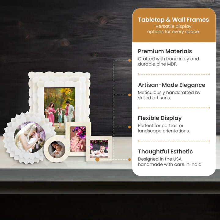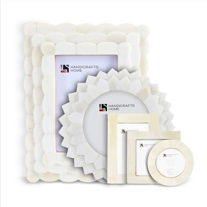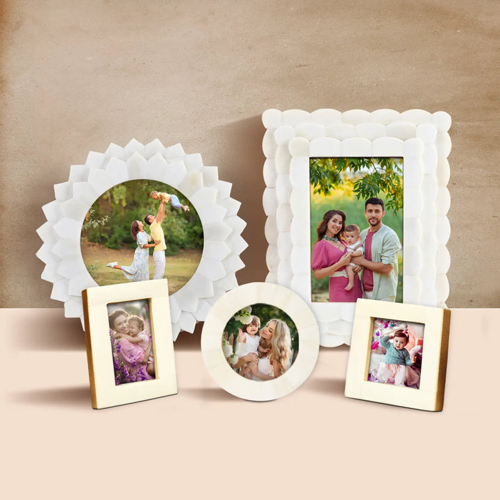 Royal White Bone Inlay Picture Frames Combo Pack of 5
