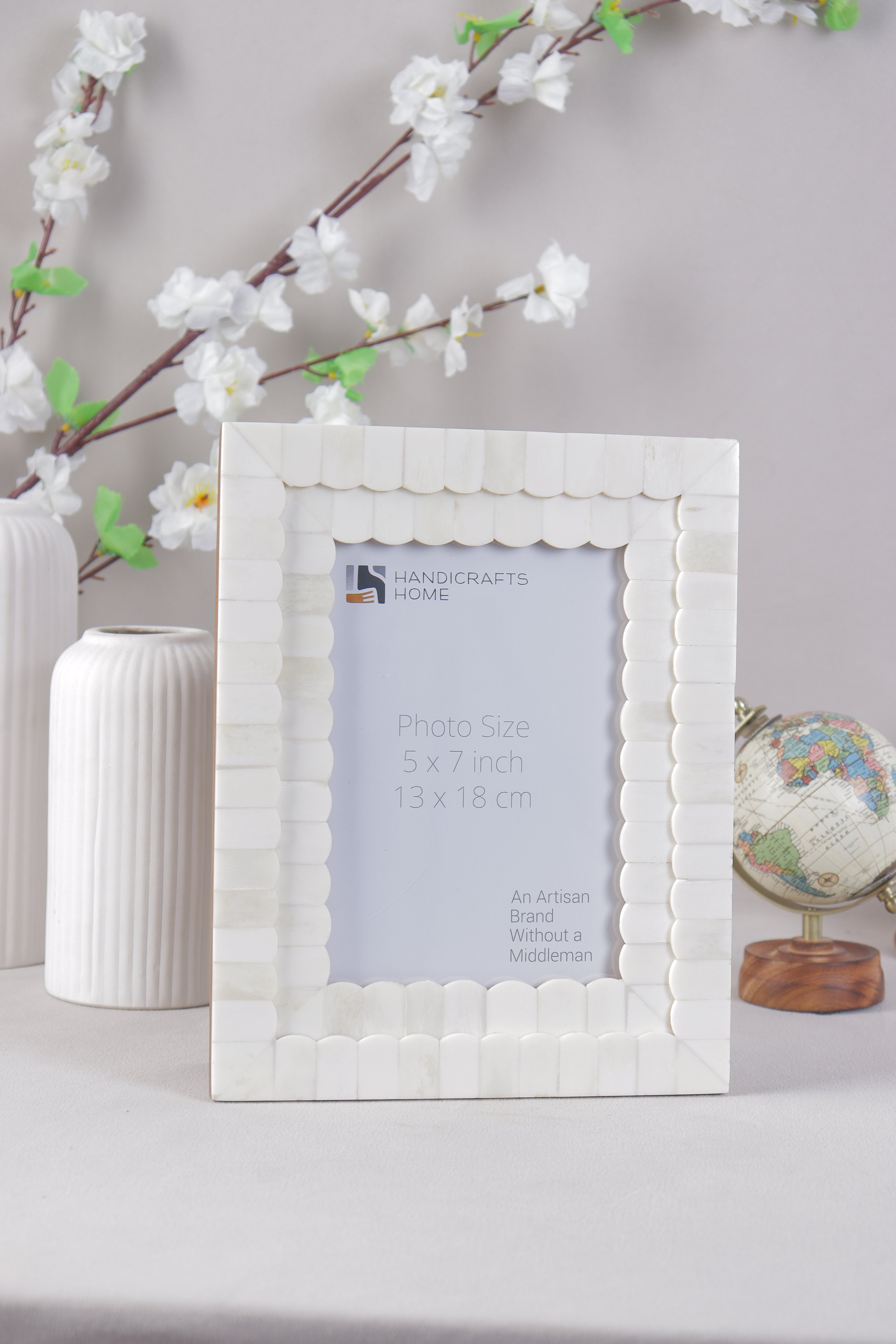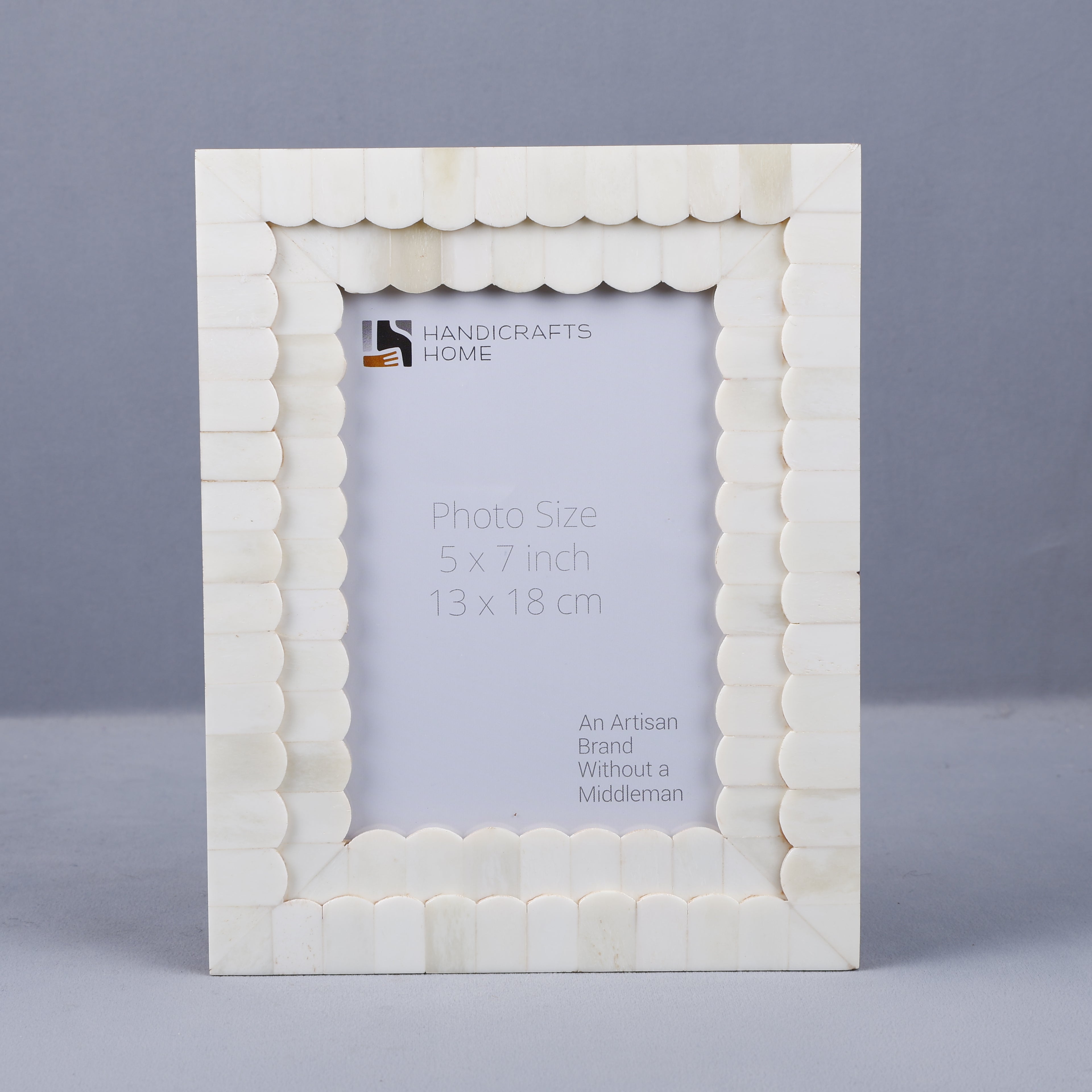 Scalloped Bone Inlay Picture Frame White - 4x6 & 5x7 Sizes
